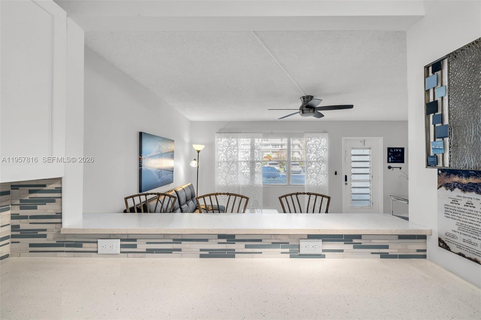 The home features a gorgeous brand new quartz kitchen with modern white cabinetry, stainless steel appliances, and an open counter perfect for casual dining and a new Electrical Panel. Contemporary tile flooring and warm modern window treatments enhance the clean, stylish interior.
