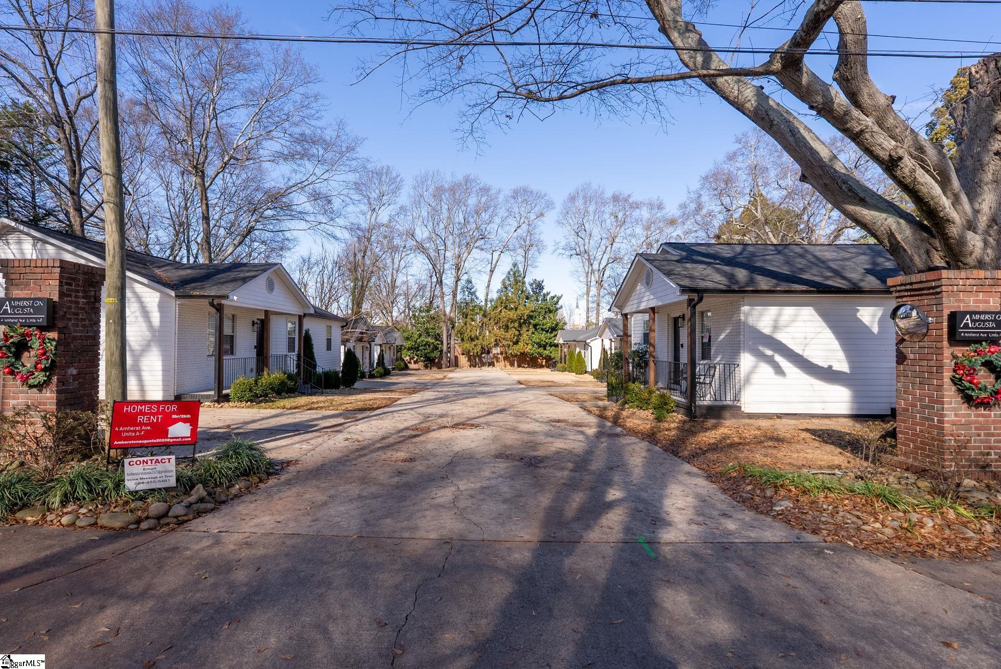 AMAZING OPPORTUNITY -- SIX (6) fully renovated single family homes, each with their own tax id in the Augusta Road area; walking distance to dining and schools. Amherst @ Augusta is a phenomenal, turn-key, investment opportunity. Each 3 bedroom home has a vaulted living room ceiling, stainless steel appliances in kitchen, and durable, wide plank, LVP flooring through out. Each unit has 2 full baths; tubs in hallway bathroom, tiled shower with glass doors in the primary bathrooms. Each home has major systems professionally maintained, and 2 of the 6 homes come furnished. Contact listing agent for showings/inquiries