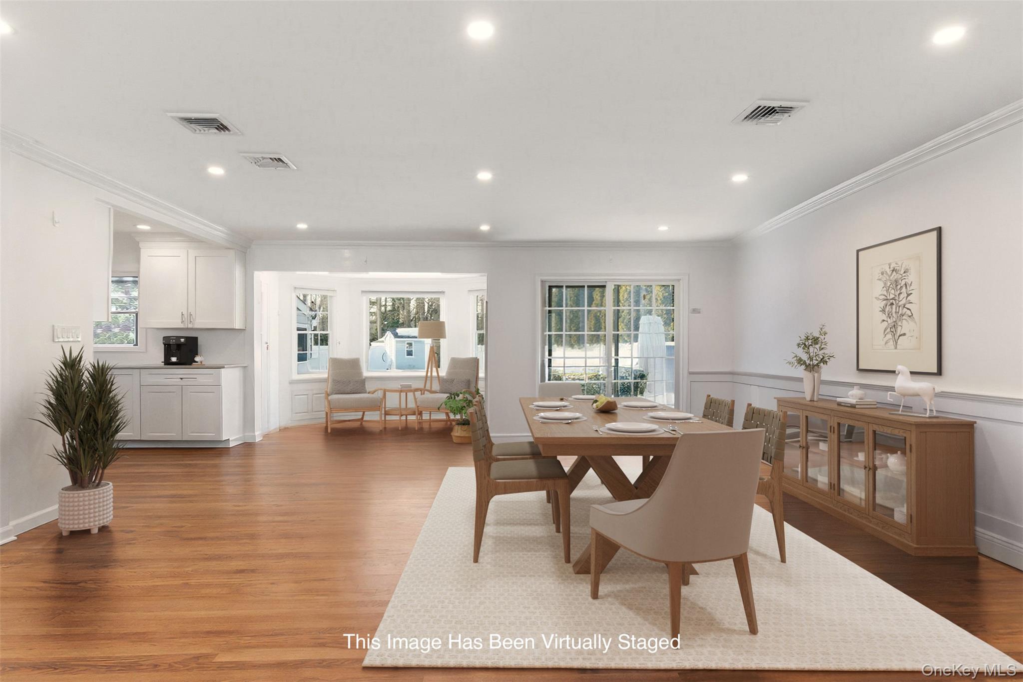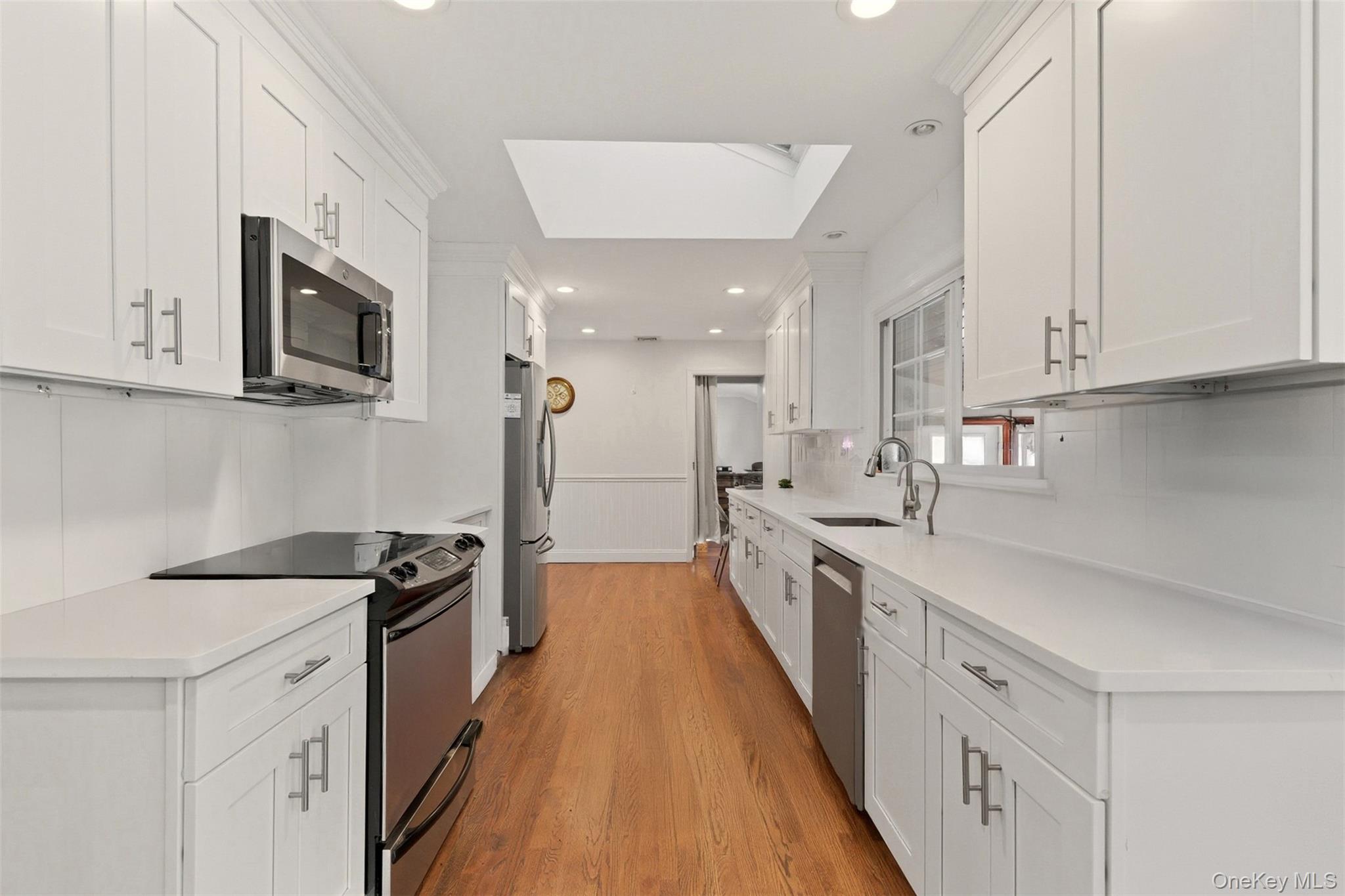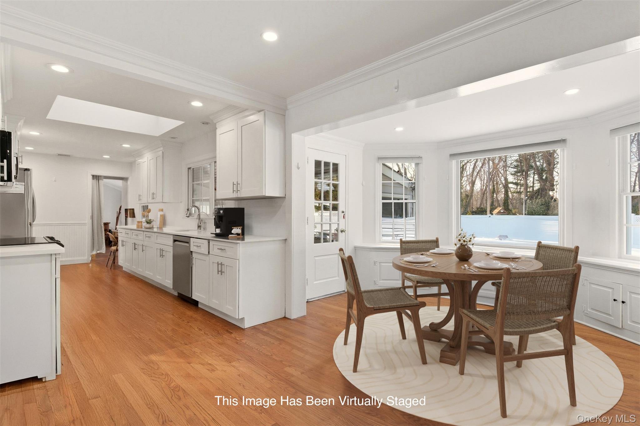 Opportunity knocks! Move-in-ready ranch tucked away on a desirable no-outlet street, abutting scenic country club and golf course. The open-concept layout is ideal for modern living, showcasing sunlit living and dining spaces with cozy fireplace—perfect for relaxed evenings or effortless entertaining. The recently renovated kitchen features sleek quartz countertops, crisp white cabinetry, and a skylight that pours in natural light. Charming breakfast nook overlooks yard and is the perfect place to begin or end your day. The home offers well-proportioned bedrooms including two with walk-in closets and tastefully updated bathrooms, providing comfort and flexibility for today’s lifestyle. Additional highlights include a bright sunroom with direct access to the backyard. Outside, enjoy your own retreat complete with a vinyl lined in-ground pool, patio and front porch overlooking sprawling lawn, perfect for warm-weather gatherings and quiet relaxation. Refinished hardwood floors and recessed lighting throughout are a bonus. All this, just moments from vibrant Huntington Village with its outstanding dining, shopping, and entertainment options.