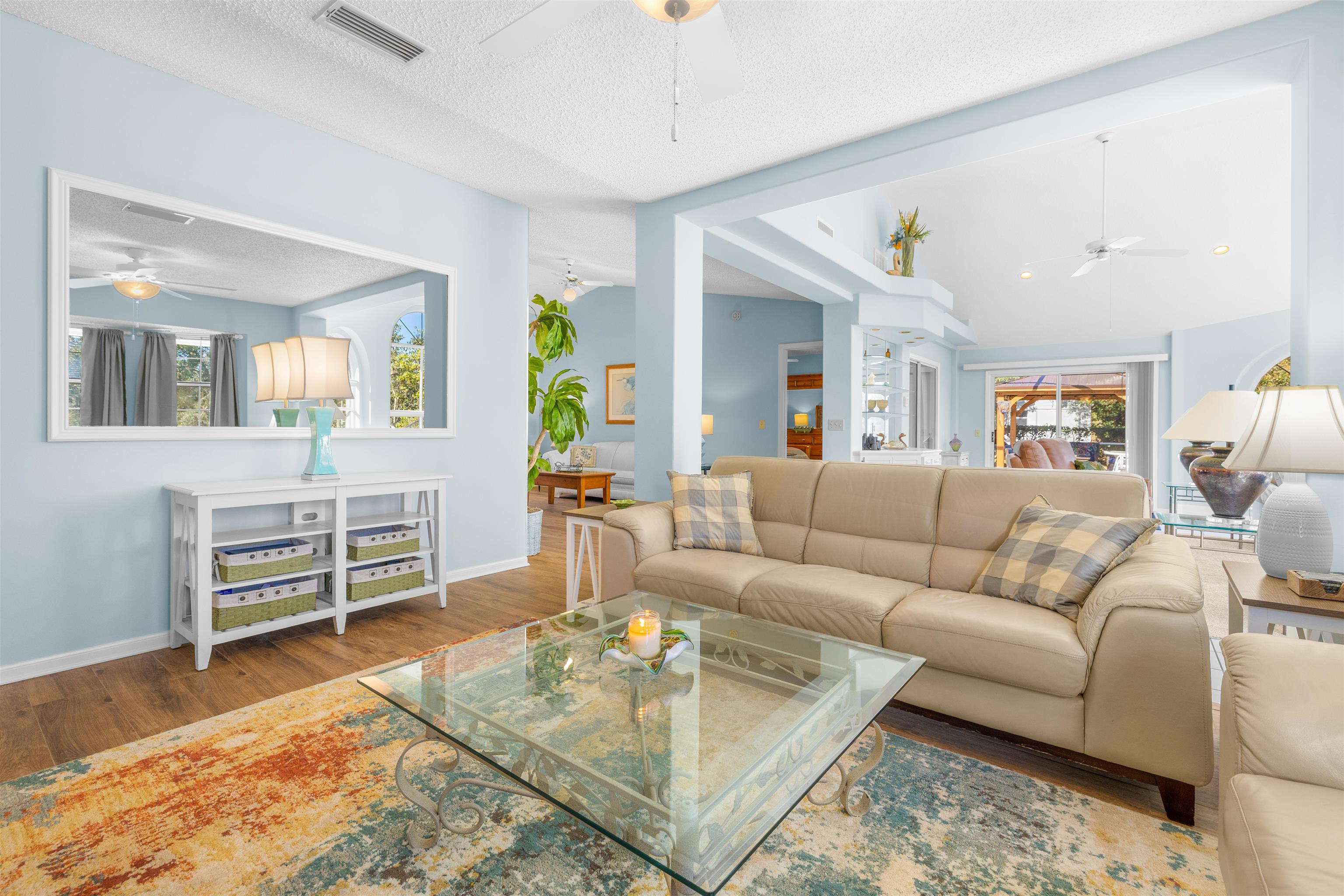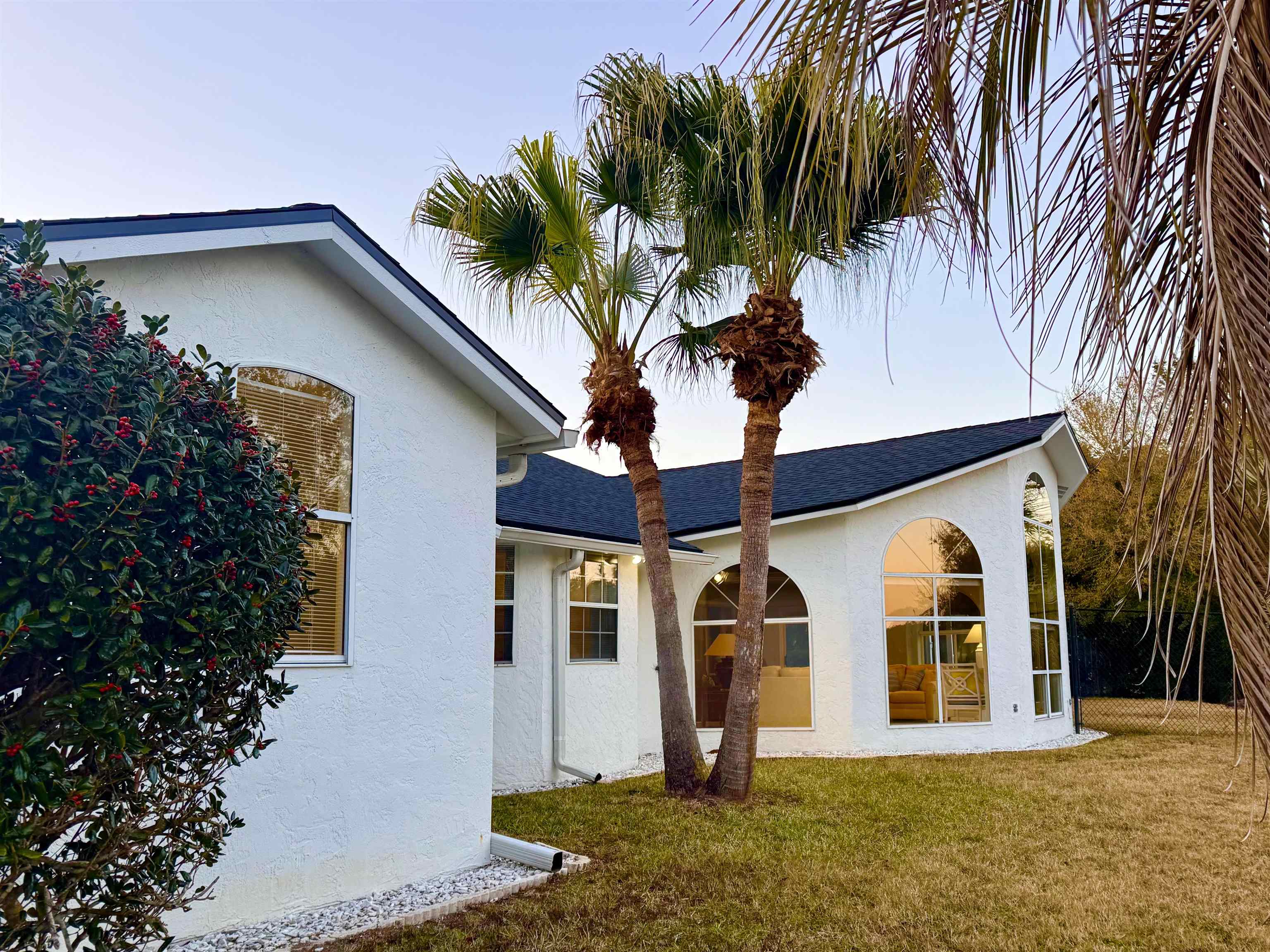 ** PRIVATE spacious, screened HEATED SALTWATER pool, overlooking the Marsh and Intracoastal Waterway capturing one of the most stunning vistas in St. Augustine Shores! ** Sitting on a double lot, this modern ranch offers multiple living and recreation spaces for living flexibility. Brand NEW ROOF in 2025. NEW A/C installed 2025. Plumbing recently redone. Ample granite countertops & storage in kitchen. A wood-burning fireplace adds warmth and ambiance on cooler evenings. Wood plank tile flooring flows throughout the living & bedrooms. Soaring ceilings and oversized arched windows create the perfect wildlife, sunrise or sunset viewing space. Watch sunrises expose a natural wonder -Egrets, herons, birds of prey, water birds and nesting doves paint the backdrop to frequent deer sightings. Almost 1/2 acre lot allows ample fenced fun for your furry family. A private well feeds the irrigations system - New well pump in in 2025. Flood zone X. Schedule your private showing soon! The POOL area was FULLY RENOVATED in 2025 and converted to a heated saltwater system. This included new surfacing, and all-new equipment during the addition of a sun shelf. In addition, a new self-leveling system guarantees consistent water levels in the pool. The new gazebo provides seasonal shade or creates a magical setting for nights under the stars. Generous deck space invites both quiet relaxation and lively gatherings in this year round Florida oasis! The Shores Riverview Club and Canopy State Park are both steps away. Free parking at beautiful Crescent Beach is a 10 minute drive.