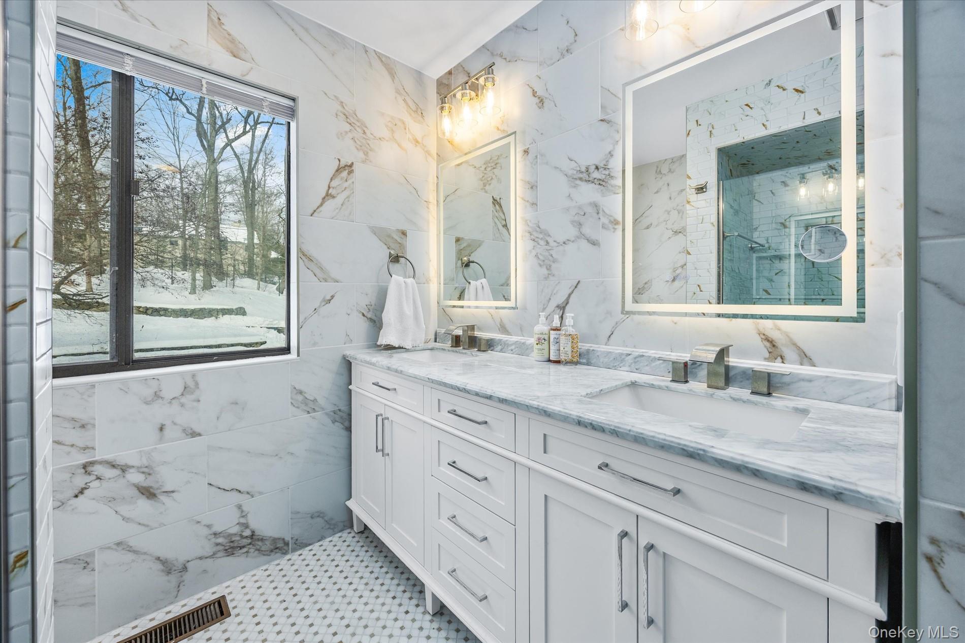 This magnificent residence embodies quintessential Bedford living, gracefully set on a quiet, picturesque cul-de-sac. Ideally located just minutes from Bedford Village and Pound Ridge, the home offers effortless access to the Mianus River Gorge and miles of pristine scenic hiking trails. A gracious entrance foyer introduces the main level, where a dramatic living room showcases soaring ceilings, an open-concept design, and walls of windows framing tranquil woodland views. A stunning stone fireplace serves as a focal point, creating an atmosphere that is both refined and inviting. The impeccably designed chef’s kitchen features custom cabinetry, premium stainless-steel appliances, and seamless flow into the formal dining room—perfect for elegant gatherings. A sun-drenched breakfast nook provides an intimate setting for morning coffee. Rich wood floors extend throughout the home, enhancing its timeless sophistication. Thoughtfully designed for both elevated entertaining and comfortable everyday living, the home offers exceptional flow and flexibility. A few steps up, three generously proportioned bedrooms are complemented by a newly renovated full bath. The upper level reveals an expansive, light-filled loft overlooking the living room, complete with a fireplace and ideal as a refined lounge or library. This level leads to the serene primary suite, featuring a spacious walk-in closet and a beautifully appointed spa-like bath with a soaking tub. An additional large room off the loft offers endless possibilities as a private office, guest suite, or creative retreat. The lower level offers a private rear entrance with direct access to both the main living area and the basement. This level includes a dedicated laundry area with a new washer and dryer. A stylishly updated powder room adds convenience, while the newly renovated basement features new windows, refined flooring, a versatile bonus room, and an updated full bath. Completing this exceptional property is a spacious two-car garage, offering both functionality and convenience. A true MUST See!