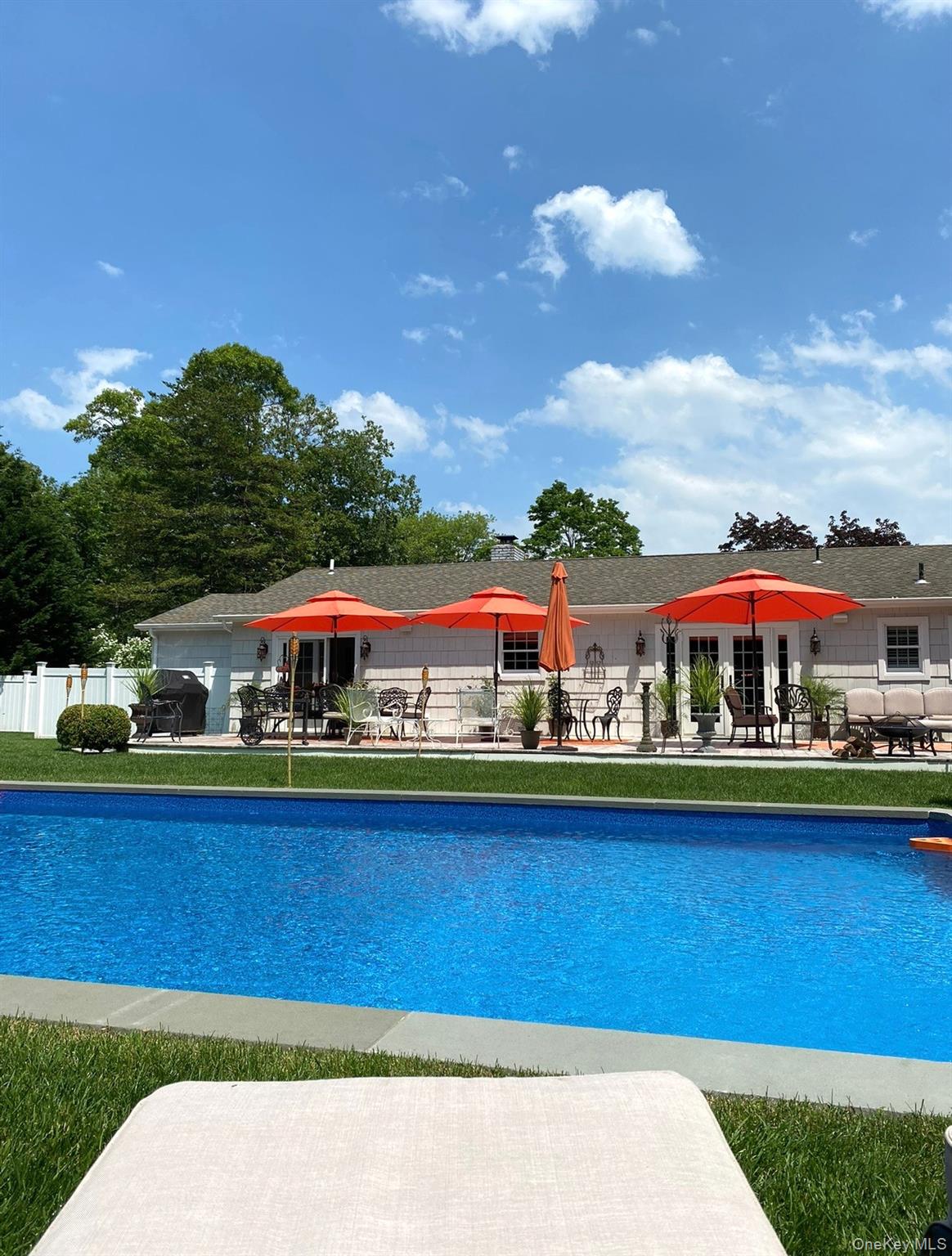 Completely renovated and modernized, this sun-filled, move-in-ready home offers stylish Hamptons living in a prime location. Designed with an open floor plan, the residence features 3 bedrooms, 2 fantastic baths, and an inviting flow perfect for entertaining. The epicurean kitchen opens seamlessly to the vaulted great room, dining, and living areas. The spacious great room and cozy fireplaces create warm, comfortable gathering spaces year-round. Set on a private yard, landscaped grounds with a beautiful in-ground pool, this property provides the ideal indoor-outdoor lifestyle. Impeccable condition, exceptional location, and attractively priced—an outstanding opportunity that will not last.