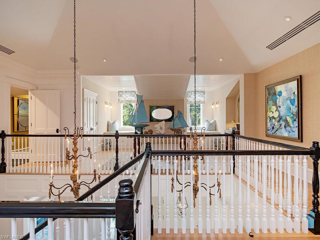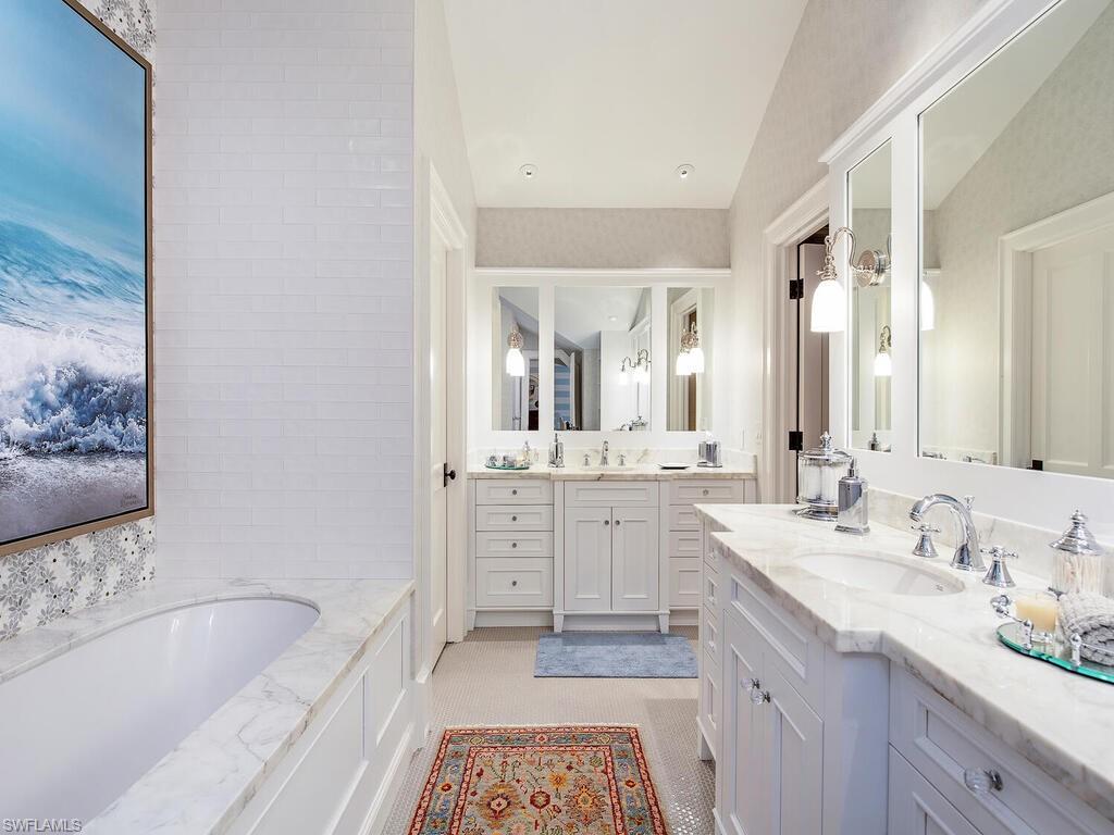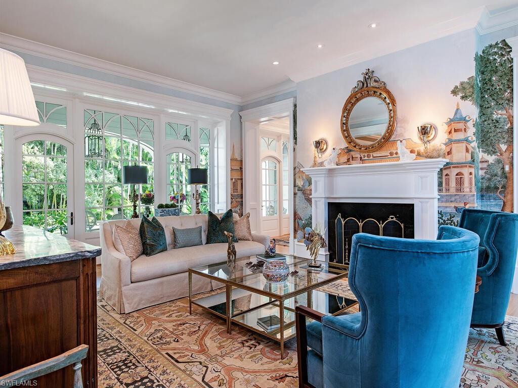 Quietly situated at the southernmost end of Gulf Shore Boulevard South, directly across from beach access, this exceptional Olde Naples estate is a true crown jewel, spanning more than one-half acre. Designed by John Cooney of Stofft Cooney Architects and meticulously refurbished throughout, the residence reflects uncompromising craftsmanship and timeless sophistication and can be acquired turnkey furnished for immediate occupancy. From the moment of arrival, the home makes a lasting impression. Flickering gas lanterns, a gracious front porch, and classic symmetrical architecture accented by exquisite millwork create an inviting sense of elegance. Inside, refined finishes abound, including mahogany front doors, rift-sawn white oak flooring, and a striking vaulted ceiling detail upon entry. The living room’s balanced symmetry and detailed millwork flow seamlessly into the gourmet kitchen and dining area, anchored by a 60" Wolf dual-fuel range featuring six burners, an infrared charbroiler, and an infrared griddle. Additional highlights include a Sub-Zero side-by-side refrigerator and freezer, integrated refrigerator drawer systems, and two Miele dishwashers—perfectly suited for both everyday living and entertaining. Thoughtfully curated spaces throughout the home include a bespoke media room with soundproofed walls and a Savant sound system, a handsome study with custom built-in display cabinetry overlooking the pool, a fully reimagined bar and library, and a dedicated fitness studio complete with a steam shower—each space designed for both function and refined living. The estate is comprised of five well-appointed bedrooms, four of which feature en-suite baths, offering refined accommodations for both residents and guests alike. The Master Suite and Bath offer a true private retreat, enveloping you in comfort from head to toe. A tranquil sitting area overlooks the spa and pool, providing a serene backdrop for rest and reflection. Crown moldings and elegant casings throughout enhance the sense of refined craftsmanship, creating a space that feels like a peaceful escape—while remaining unmistakably at home. Following a complete renovation inside and out, the outdoor living spaces are equally compelling. An expansive, oversized porch is designed for rest and relaxation, offering an exceptional poolside setting framed by a preserved Wild Oak tree—an enchanting natural centerpiece that enhances the estate’s sense of serenity and timeless charm. Additional elevated improvements include two side-mounted car lifts, whole-house generator, dual dehumidification systems, a steam shower within the fitness studio underscoring the home’s exceptional level of care, resilience, and thoughtful investment.