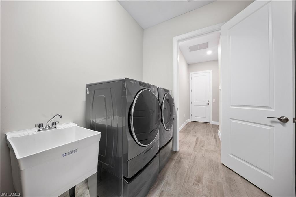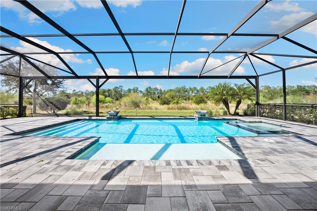 Perfectly positioned on a premium pie shaped preserve homesite with direct sunset exposure, this highly sought after Nobility floor plan delivers one of the most stunning, private views in the community, overlooking a protected nature preserve through an upgraded picture window screen enclosure that frames unforgettable nightly sunsets. This nearly 3, 000 square foot single story home is filled with natural light and showcases a dramatic great room with soaring coffered ceilings up to 13 feet and striking zero corner pocketing sliding glass doors that completely open to an expansive covered lanai and resort style outdoor living space. The layout features three bedrooms, a private owner’s retreat or den within the primary suite, a thoughtfully designed Jack and Jill bath with separate vanity areas, a conveniently located powder bath, and a dedicated pool bath. The chef’s kitchen anchors the home with a large center island, quartz countertops, soft close cabinetry with stacked uppers, premium stainless steel appliances, generous storage and a walk in pantry, making it ideal for both everyday living and entertaining. The primary suite is a true retreat with tranquil preserve views, a spa style bath with split vanities and a large walk in shower, plus a flexible bonus space perfect for an owner’s lounge, home office, dressing room or nursery. Outdoor living is exceptional, featuring a custom pool with a zero edge built in seating area, sun shelf and two water bowl features, all designed to maximize the breathtaking sunset backdrop. The oversized homesite also allows for a fenced yard beyond the pool cage, creating a safe and private play area for children or pets. Additional highlights include high ceilings throughout, custom lighting, abundant storage, a large laundry room, and a three car garage with an upgraded four foot extension. Located within The Place at Corkscrew, residents enjoy a true resort lifestyle with a lagoon pool and waterfall grottos, a 100 foot waterslide, full service restaurant and café, bourbon bar with live music, fitness and movement studios, tennis, pickleball, bocce, basketball, spa services, dog park and an active social calendar, all just minutes to shopping, dining, RSW International Airport and the Gulf beaches, and directly across from Old Corkscrew Golf Club. Simply put, this home delivers one of the best views, most desirable layouts and most impressive outdoor living experiences you will find in the area.