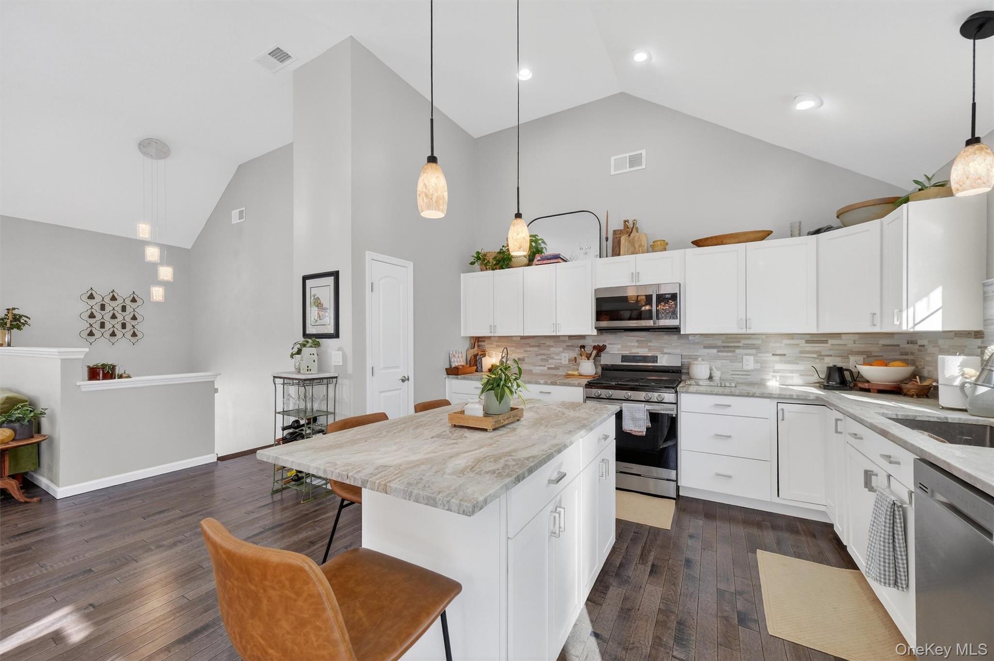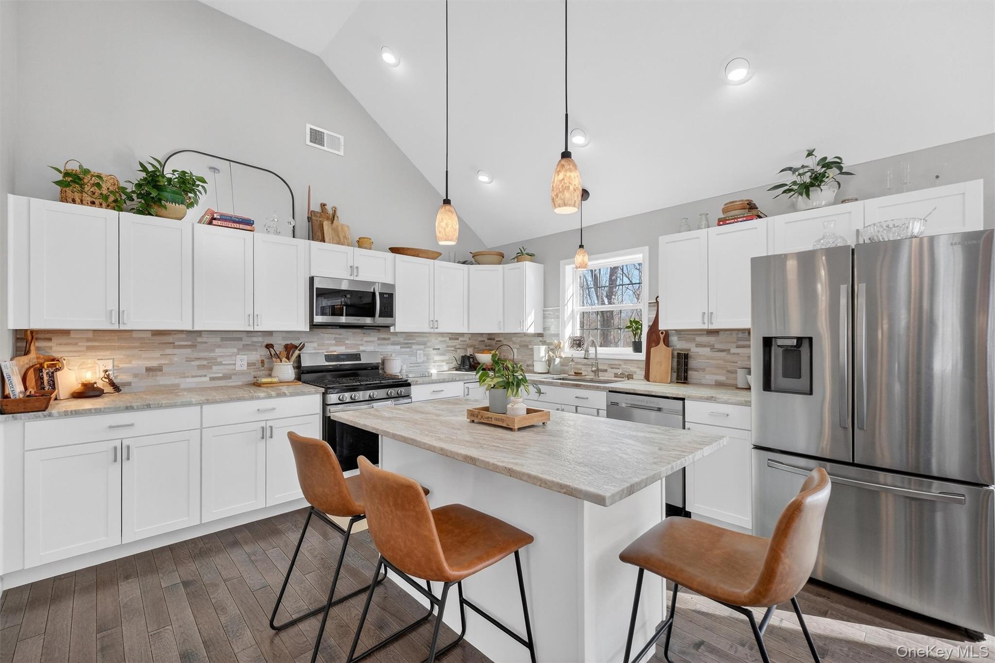 Town of Newburgh. Wallkill School District. Better than new… move-in ready! Tucked away on 3. 6 peaceful acres privately situated on a tranquil, no-through road, this 4-year-young contemporary bi-lonial style home offers the kind of space, privacy, and comfort today’s buyers dream about. Spanning 2, 397 sqft of thoughtfully designed living space, this home blends refined finishes with an easy, welcoming feel that instantly makes you want to stay awhile. The main level is filled with natural light and showcases soaring vaulted ceilings, recessed lighting and an effortless open-concept layout designed for both everyday living and memorable gatherings. The heart of the home flows seamlessly from the living area to the dining space with a beautifully designed kitchen—complete with a center island and pantry—offering both style and functionality for modern entertaining—all with solid hickory hardwood flooring. Enjoy direct access to the elevated deck overlooking your private natural surroundings — perfect for morning coffee, sunset unwinding, or hosting. The primary suite offers a peaceful retreat with the warmth of solid hickory hardwood flooring, walk-in closet, and a private ensuite bath with double sink vanity, while two additional bedrooms and a beautifully appointed hall bath provide comfort and flexibility. The walk-out lower level is a versatile powerhouse. This level creates its own private living experience, complete with a spacious family room with luxury vinyl plank flooring, fourth bedroom, full bath, and a dedicated laundry room for added convenience and functionality. With direct access to the patio and backyard, this level is ideal for overnight guests, multi-generational living, or creating the ultimate recreation, premium home office, or relaxation space. The property also features a partially fenced yard and patio, offering the perfect balance of open natural landscape and contained outdoor space for pets, play, or gardening. The home is complemented by an oversized, fully insulated attached two-car garage featuring interior and exterior access and a utility sink, adding practicality for projects, clean-up, or hobby space. Surrounded by nature yet designed with modern living in mind, this home delivers the rare combination of privacy, style, and everyday functionality — a place where you can truly settle in, spread out, and feel at home. Conveniently located just minutes from Orange Lake, Chadwick Lake Park, the Newburgh Hudson River Waterfront — a mix of trendy restaurants, cafes, breweries — retail shopping, various Hudson Valley attractions, Metro-North Beacon train station to NYC Grand Central, I-84, I-87, and Stewart International Airport.