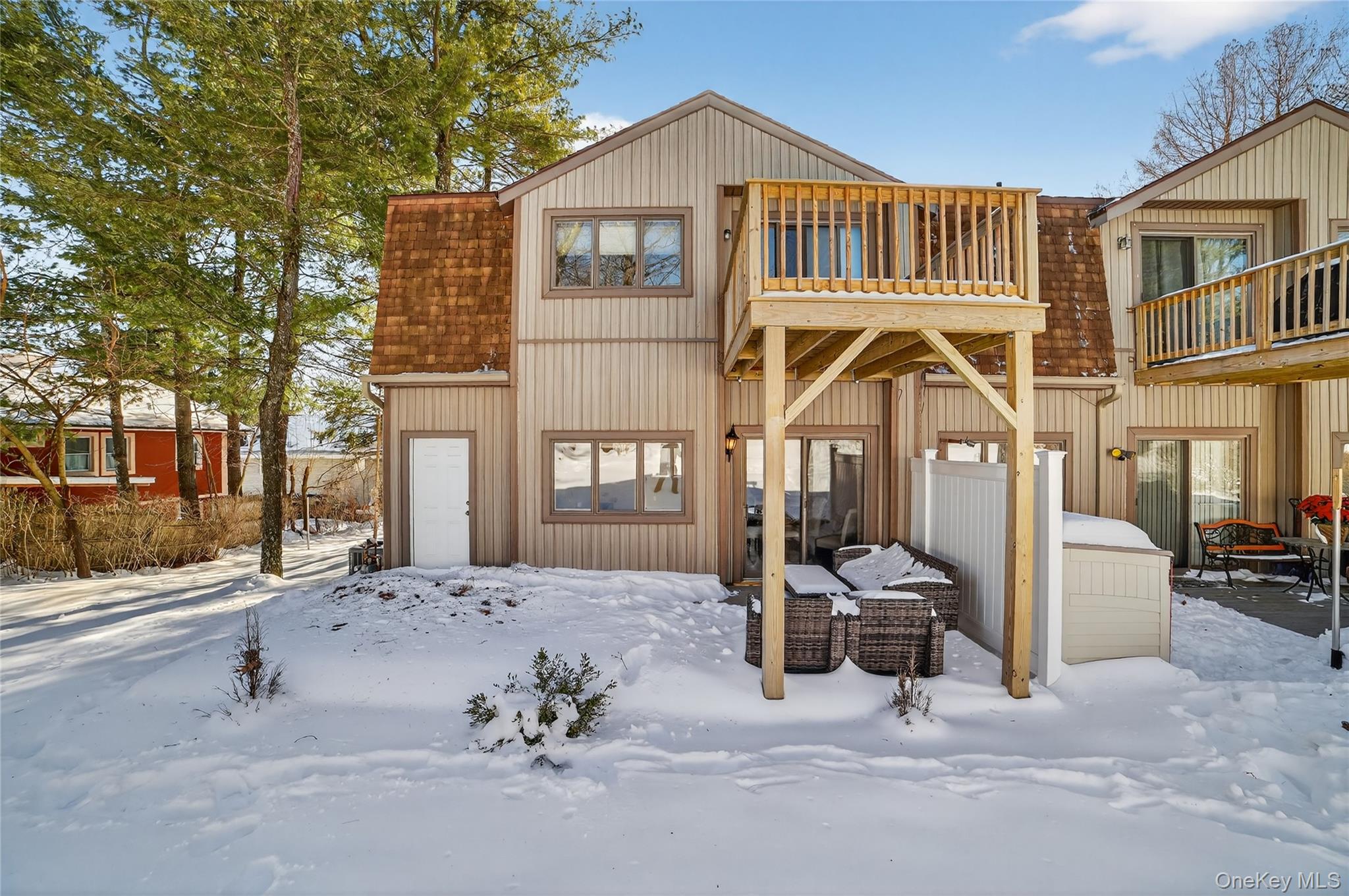 A Must See in the conveniently located Meadows Condominium complex. This two bedroom end unit with updated designer kitchen with newer stainless appliances, granite counters, rich darker wood custom cabinetry. The bathrooms also updated with the finest features and finishings. This condo is ready for you to move right in. So much privacy and two parking spots right in front of the unit for your convenience. The first floor contemporary wood like floors throughout. The first floor living space is an open floor plan with a newer custom designer kitchen with a rich luxurious feel. This end unit offers you so much natural light and a patio and deck for all your outside entertaining and enjoyment. Additionally a full back and side yard, private shed, two parking spots directly in front of this condo in a private lot, and located at the end of a cul-de-sac shared by only 1 other unit. This unit has an expended floor plan with laundry room, powder room, huge closet, full kitchen, dining area, and living room. The 2nd floor offers you 2 bedrooms, full bath, and a bonus room can live as an office, guest room, den area and leads to an upper deck. Also included is a newer Mitsubishi cooling system in addition to the traditional forced air system. A suburban setting within minutes to Shopping at the Beach shopping center and the Cortlandt Towne center, So many fast food, to fine dining Restaurants in this area. Minutes to Metro North, and major highways. Complex has pool and clubhouse for an extra fee.