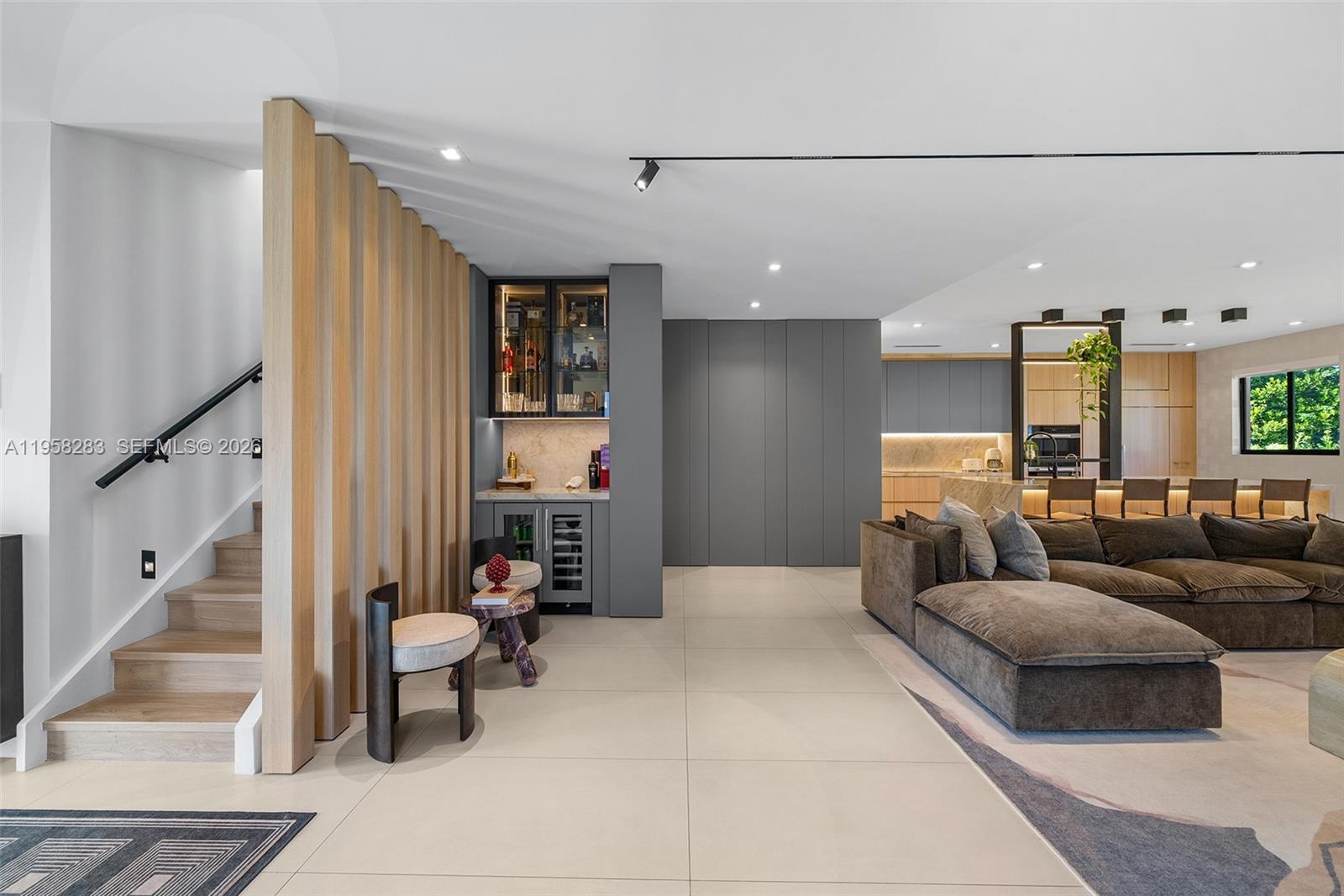 Welcome to Casa Luxe, a fully renovated, turnkey residence showcasing high-end modern finishes throughout. The open layout features an Italian-inspired kitchen with premium Miele appliances, custom modern millwork, and Taj Mahal quartzite countertops with a waterfall-edge chef’s island. A built-in bar and separate coffee station add both style and functionality, while a hidden panel door integrated into the kitchen millwork provides discreet access to the laundry room. The primary suite offers custom built-in closets, a spa-style bathroom with integrated sinks and glass-enclosed shower, and a private sitting area. Three additional bedrooms, all located on the second floor, and two fully remodeled bathrooms provide comfort and functionality. Architectural details include linear AC ceiling diffusers, recessed lighting with modern track fixtures, and a custom wood-slat staircase feature wall. Recent improvements include a 2024 flat tile roof, whole-house water filtration system, Lutron lighting control, impact windows, upgraded plumbing fixtures, and enhanced electrical features throughout. Oversized 24x48 tile flooring enhances the main living areas, and modern window treatments are installed throughout. The upgraded garage features epoxy floors, custom cabinetry, and a built-in refrigerator. Enjoy modern curb appeal and gated community living in Savanna of Weston with resort-style amenities and A+ schools. Also available for rent.