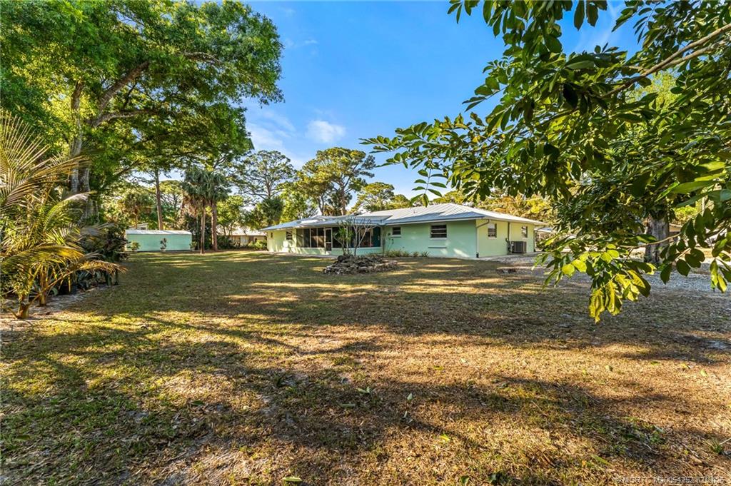 Welcome to The Ranch! Spacious home located on . 7 acres in White City with a circular drive for plenty of parking, oversized garage, separate 24x12 workshop, family room and living room, 23x11 screened lanai with hot tub. Updated kitchen with soft-close cabinets, a chef’s sink and new microwave. Outdoor shower, firepit in the large back yard, CBS concrete block stucco construction with a new metal roof in 2015. Surrounded by shade and fruit trees, on the end of a street for privacy. Enjoy the Florida lifestyle with a little extra breathing room.