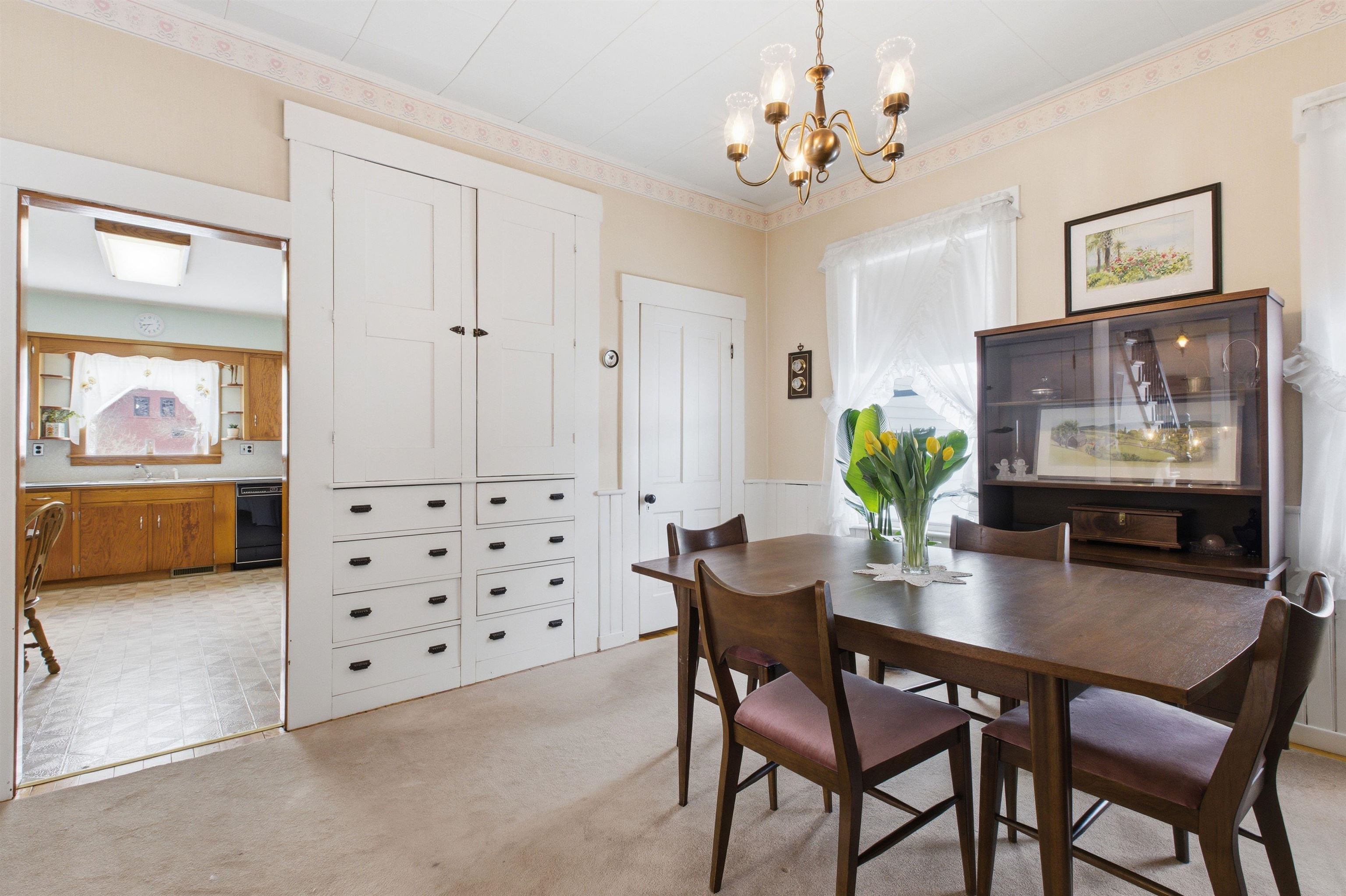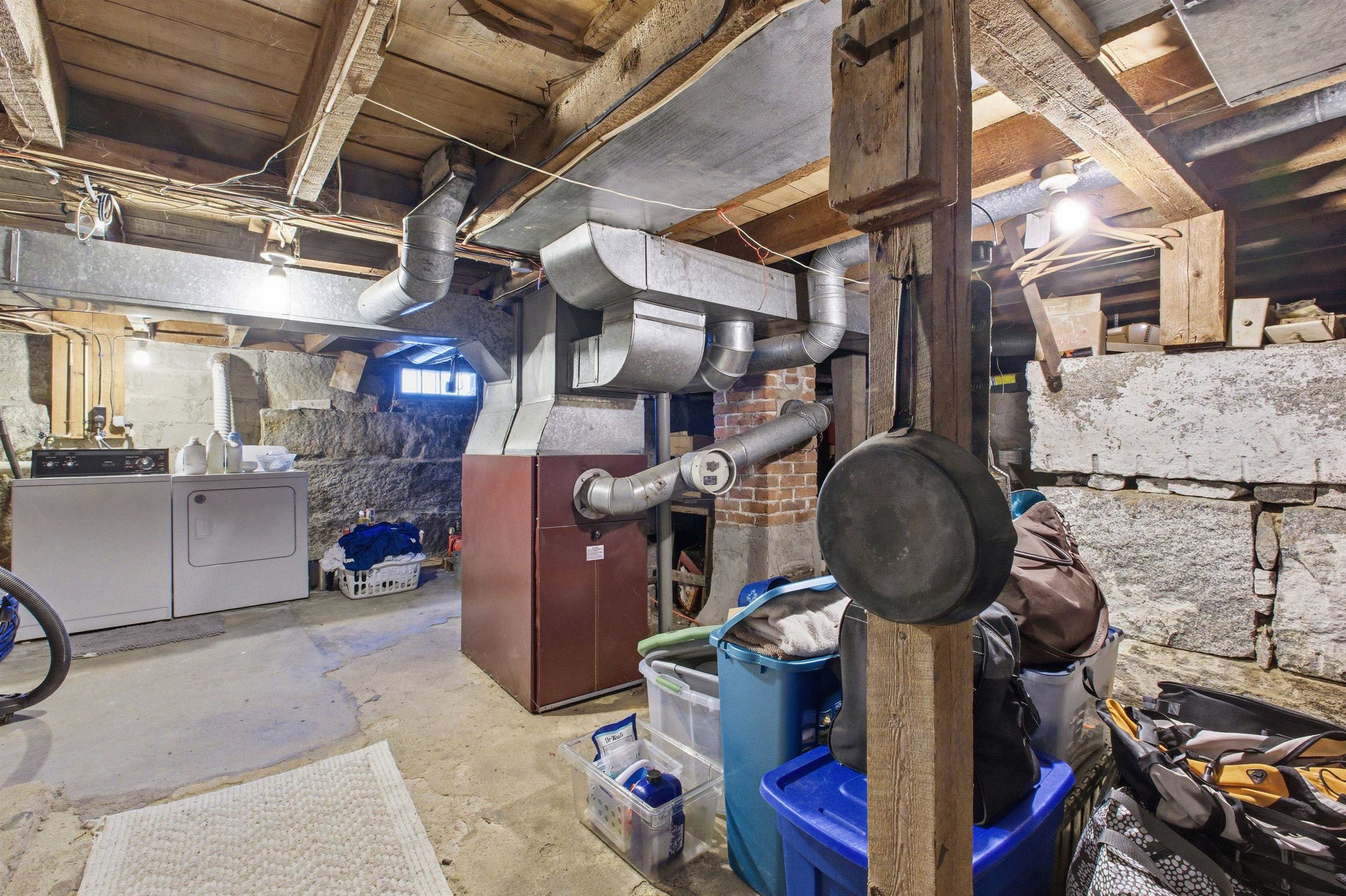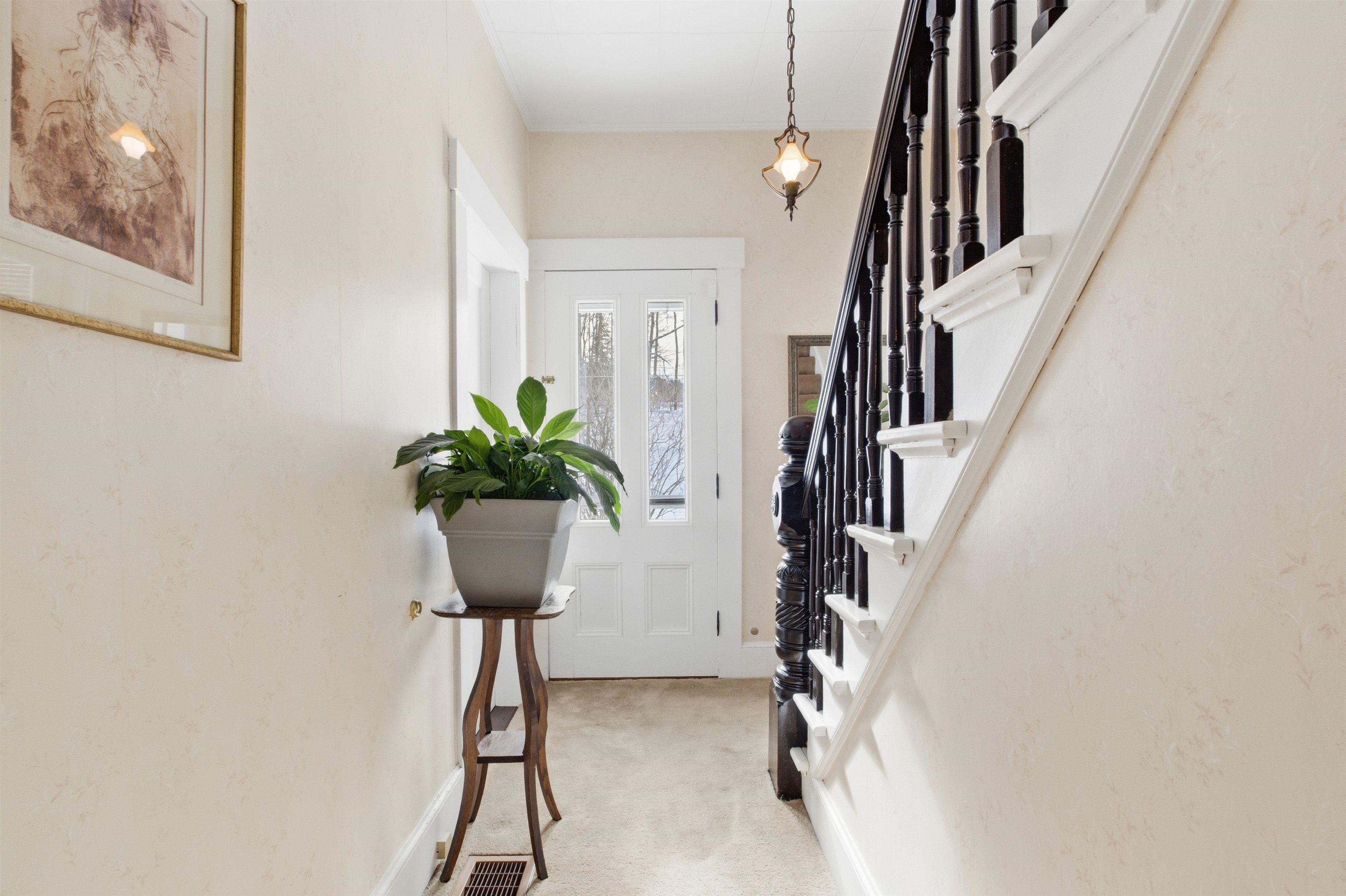 Discover the epitome of timeless Vermont charm in this exquisitely preserved 1890 New Englander, located at 165 Pleasant Street. Crafted by renowned master builder Ray Tewksbury, this rare gem is one of only 22 local examples of his exceptional precision workmanship. Nestled on a serene 0. 67-acre lot, the property boasts an effortlessly maintained landscape adorned with fruit trees, majestic maples, vibrant flowering trees, lush flowering shrubs, and colorful annuals. Upon entering, you'll be captivated by the seamless blend of historic character and thoughtful modernizations, creating a warm and inviting atmosphere. The interior features impressive high ceilings, hardwood floors throughout and exquisite built-in shelving. The spacious kitchen is equipped with a practical electric cooktop, ample built-ins, cabinets, and pantry space. The home comes partially furnished, maintaining a “grandmacore” aesthetic. The home also features an updated bathroom, ensuring modern comfort and convenience. Additionally, the mudroom provides a practical space for daily life, complete with additional refrigeration and freezer space. The enclosed porch, currently serving as a radiant sunroom, bathes the space in natural light and offers a versatile area for relaxation or entertainment. The upper level provides four generously proportioned rooms, including three designated bedrooms, featuring 2 cedar closets, allowing for flexible configuration to suit your unique needs. A detached one-car garage with a heated and air-conditioned workspace provides an ideal haven for work, hobbies, projects, or storage. The garage is also equipped with a drain, adding to its functionality. The impressive granite block basement features an authentic root cellar, as well as space for storage and laundry. With its unique blend of historic charm, modern functionality, and natural beauty, this extraordinary property presents a rare opportunity to own a truly one-of-a-kind treasure.