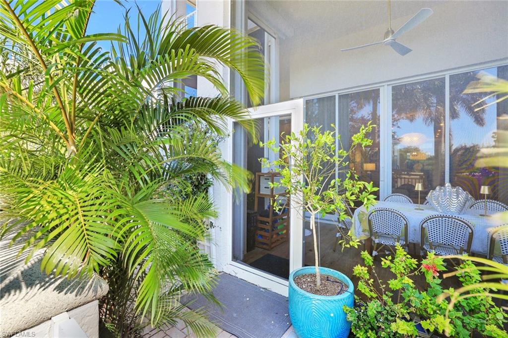 Thoughtfully remodeled, the interior reflects timeless elegance, seamlessly blending modern finishes with sophisticated style. Designed for true Florida indoor-outdoor living, the home features 10-foot ceilings, floor-to-ceiling sliding glass doors, a private garden patio recently remodeled, and a screened lanai that invite natural light and lush surroundings indoors.