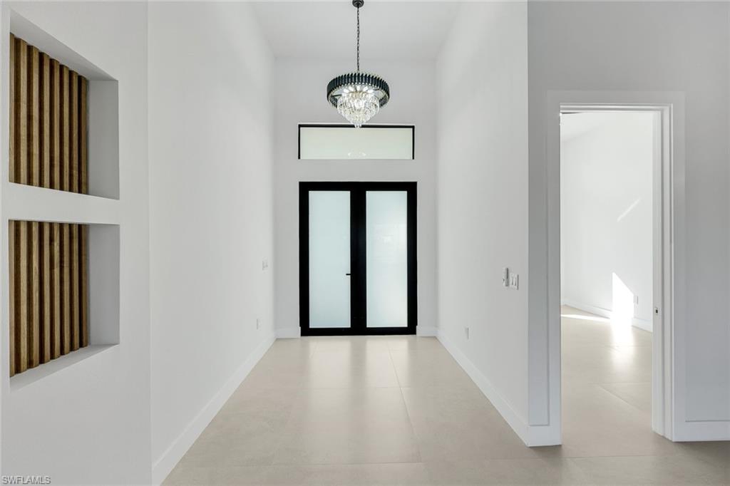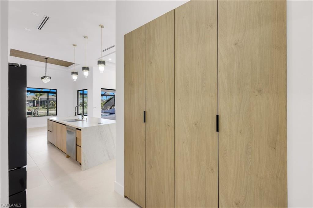 Welcome to this modern waterfront luxury home that features 4BED, 3BATH residence with a 3 car garage and over 2, 200sqft of refined living space, ideally located in one of Cape Coral’s most desirable waterfront neighborhoods. Designed for comfort, efficiency, and style, the home features soaring 13 foot ceilings, 40x40 thick Spanish matte tile flooring throughout, and a durable tile roof, zebra blinds through out the home all complemented by abundant natural light and expansive water views of a 125-foot-wide canal with seawall and concrete built in sitting area overlooking waterfront views perfect for entertaining and bbqs. The open concept layout centers around a chef’s kitchen equipped with Samsung’s newest suite of smart appliances, built-in microwave/oven combo, and Wi-Fi connectivity, home prewired ready to install security cameras. Outdoor living shines on the expansive lanai with a fully equipped Florida kitchen and dual grill setups overlooking a private 15x30 heated saltwater pool, perfect for year round enjoyment. Seamless elegant inspired bathrooms features smart toilets, a fully automated sprinkler system, and an EcoSmart tankless water heater. All city water and sewer assessments are paid in full, adding significant value, and the home’s prime location offers peaceful waterfront living just minutes from shopping, dining, and everyday conveniences making this thoughtfully designed property ideal as a full time residence or luxury vacation retreat.