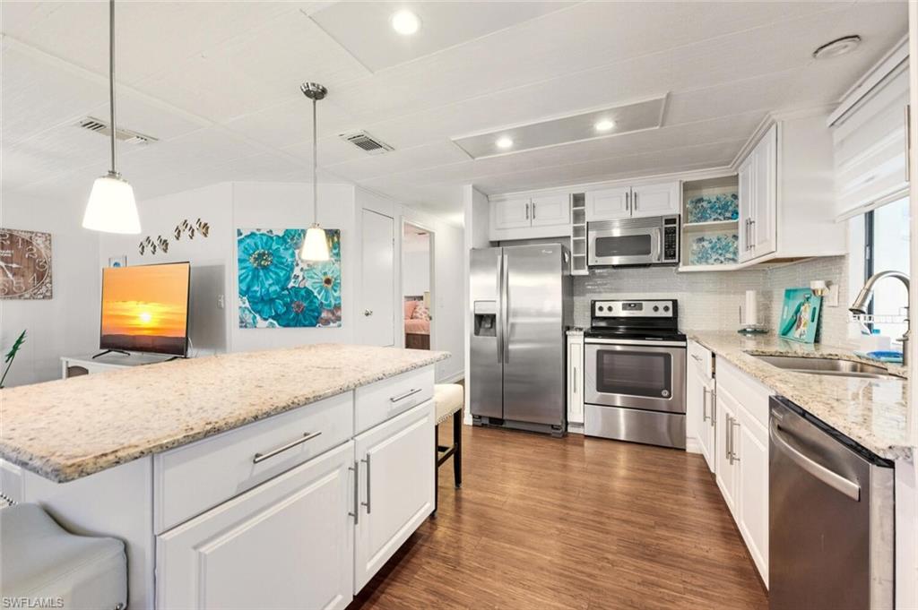 This polished home has updates throughout, a screened-in lanai, and is being sold FURNISHED with lovely decor. The kitchen is the centerpiece of the home. Updates include a stylish tile backsplash, tasteful granite countertops, stainless steel appliances, a pantry for extra storage, and an island where guests love to congregate. The Master Bedroom has three different closets with one a walk-in. The Master BA has dual sinks. The Guest BA has an updated vanity and fixtures. Both bathrooms feature new showers. There is newer laminate flooring and 3/4” plywood subflooring in the main living area. Both bedrooms have vinyl flooring and 3/4” subflooring. Extra tie-downs were installed in 2018. There is a well to cut down on lawn irrigation and a new hot tub. This home is move-in ready. Riviera Golf Estates is a laid-back 55+ community where YOU OWN THE LAND. For one of the lowest HOA fees in Naples ($144/mo. -includes basic internet)), there is a newer saltwater pool with lap lanes, tennis/pickleball courts, an exercise room, a billiards room, and a large clubhouse with an active social calendar. This home is your ticket to paradise at an affordable price!