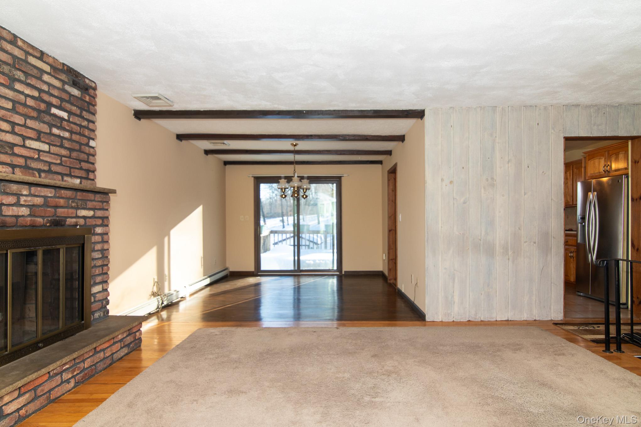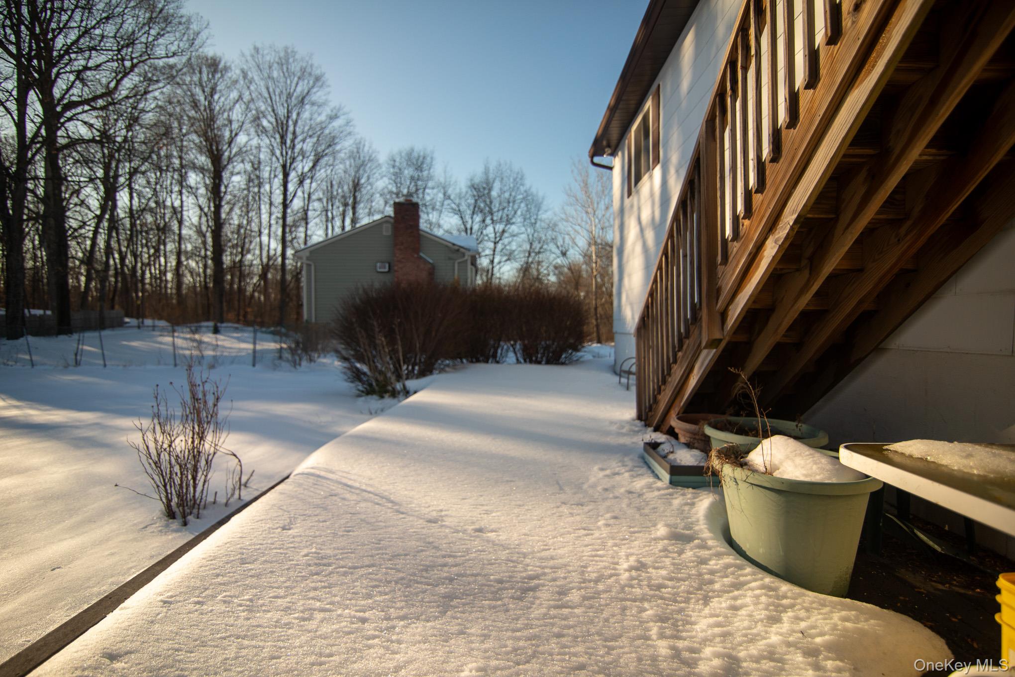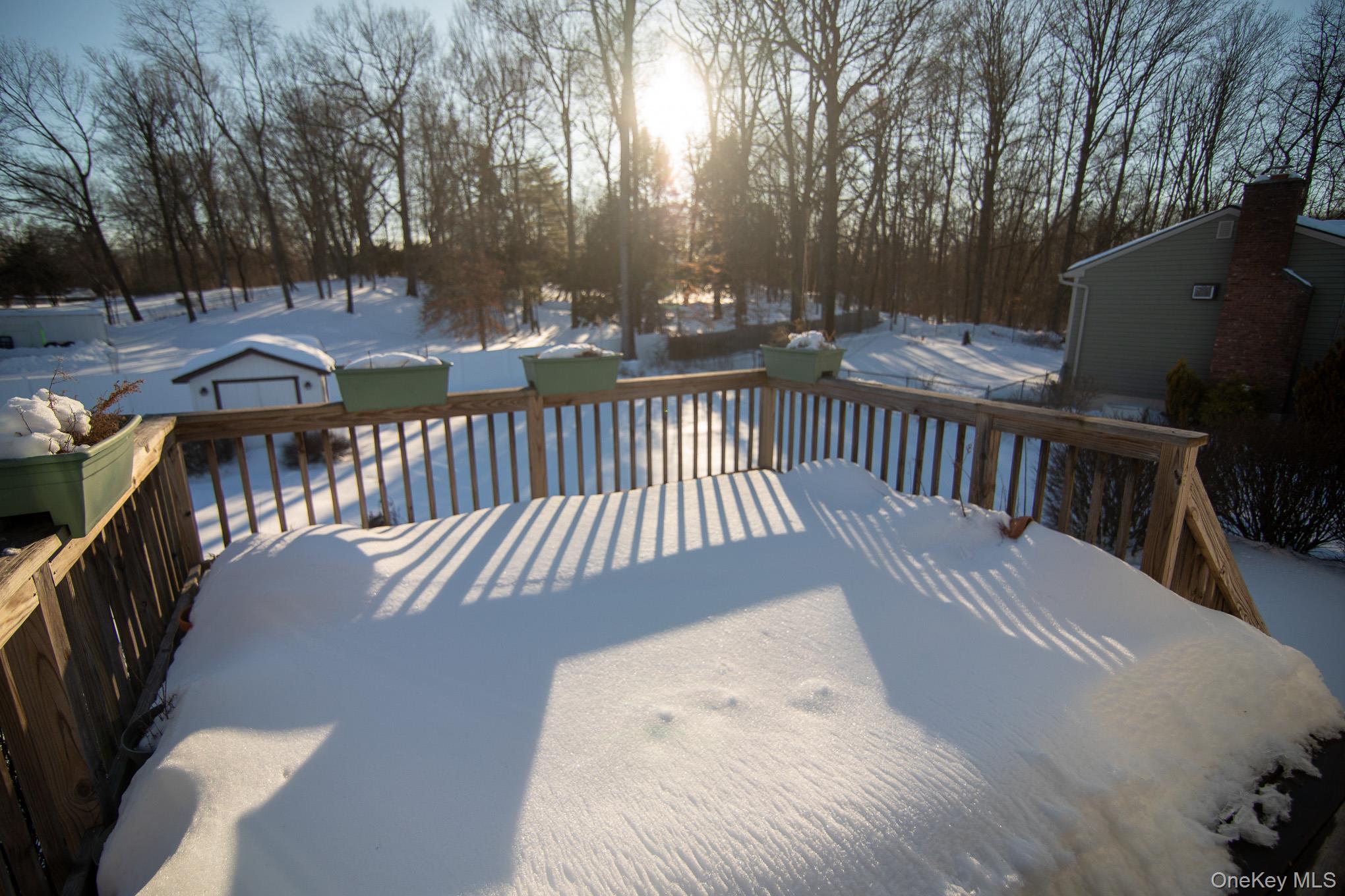 Welcome to this raised ranch, perfectly situated on a quiet cul-de-sac in the heart of the beautiful Hudson Valley. Set on 0. 32 acres, this home offers a level yard and thoughtful indoor-outdoor living. The main level features three bedrooms and a full bath with skylight, a formal living room with a bay window, hardwood floors, and a real wood-burning fireplace. Entertain with ease in the formal dining room with sliders leading to a spacious two-tier deck (12x12 upper level and 12x44 lower level) extends seamlessly into the backyard, creating an ideal space for entertaining or unwinding, perfect for gatherings and summer relaxation. The eat-in kitchen completes the main level layout. The lower level offers exceptional flexibility with a large family room and full bath, an additional room ideal for a home office, bedroom or a den. This walk-out basement features sliders that open directly to the backyard. Laminate flooring and carpeting provide comfort and functionality throughout this level. A one-car garage adds convenience. Additional highlights include central air, municipal water and sewer, a water filtration system, whole-house Generac generator, gutter guards, and an 8x8 storage shed. Located on a lovely cul-de-sac, this home offers comfort, versatility, and peace of mind. Come experience all that the Hudson Valley has to offer and use your creative touch to make this home your own.
