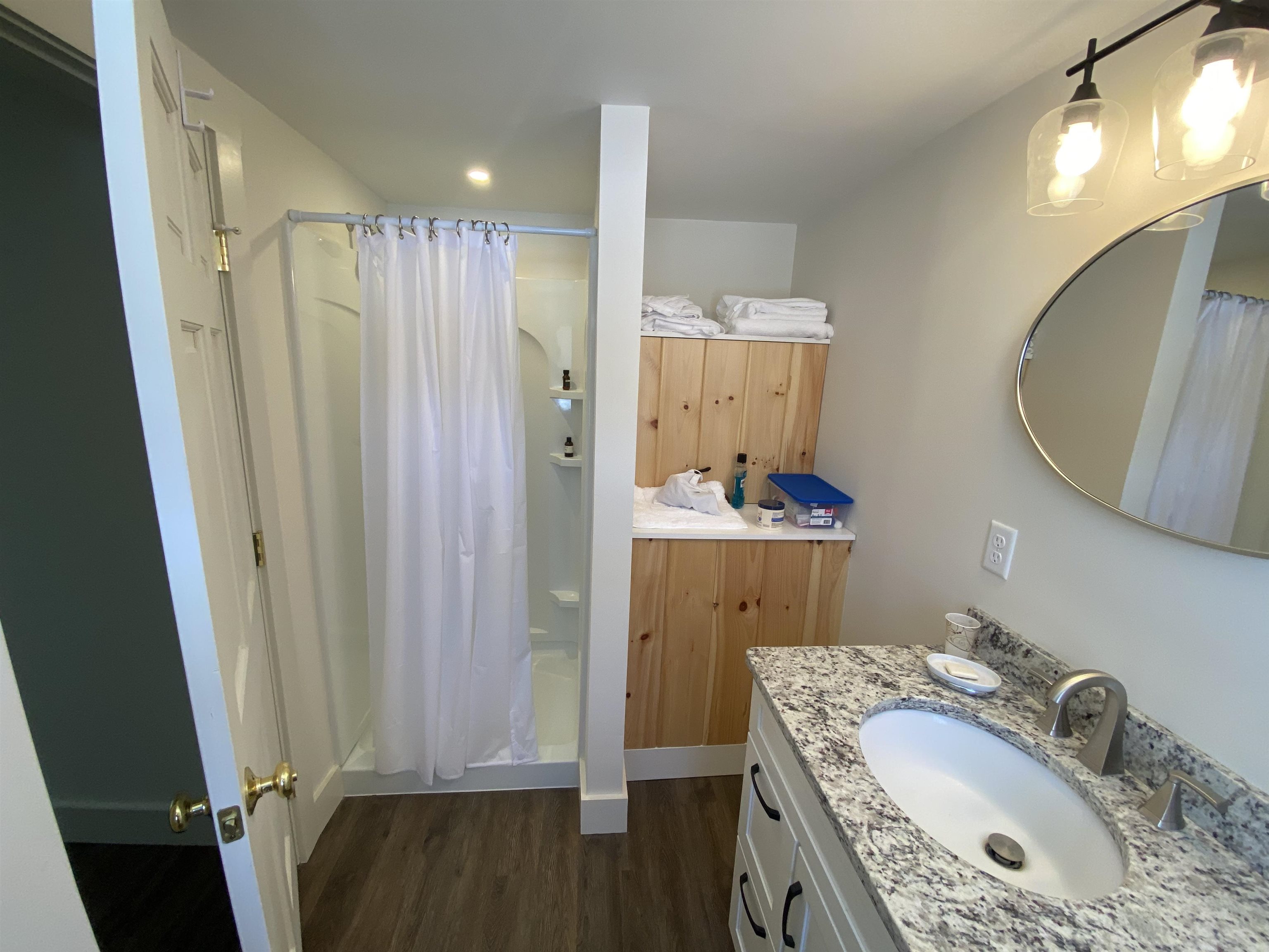 Wolfeboro Monthly Rental: available in March 2026, 1 to 3 month increments and/possibly negotiable longer time periods. Fully furnished and equipped, bright and beautiful, new apartment over a large garage. Includes 1 bay garage below with auto door opener, separate entrance, private laundry, new kitchen with granite countertops, stainless appliances, luxury vinyl plank wood look floors, new bathroom, central ac and spacious rooms. Features field views and is located on a dead end road just 5 minutes to downtown Wolfeboro for shopping, restaurants, businesses and services. includes heat, water and sewer, air conditioning, internet service, private laundry and 1 garage bay. Limit 2 persons 2 vehicles. Tenant responsible for trash. non smoking. Parking in 1 bay garage and 1 parking spot on paved driveway outside. Available March 2026. $2, 400/ month.