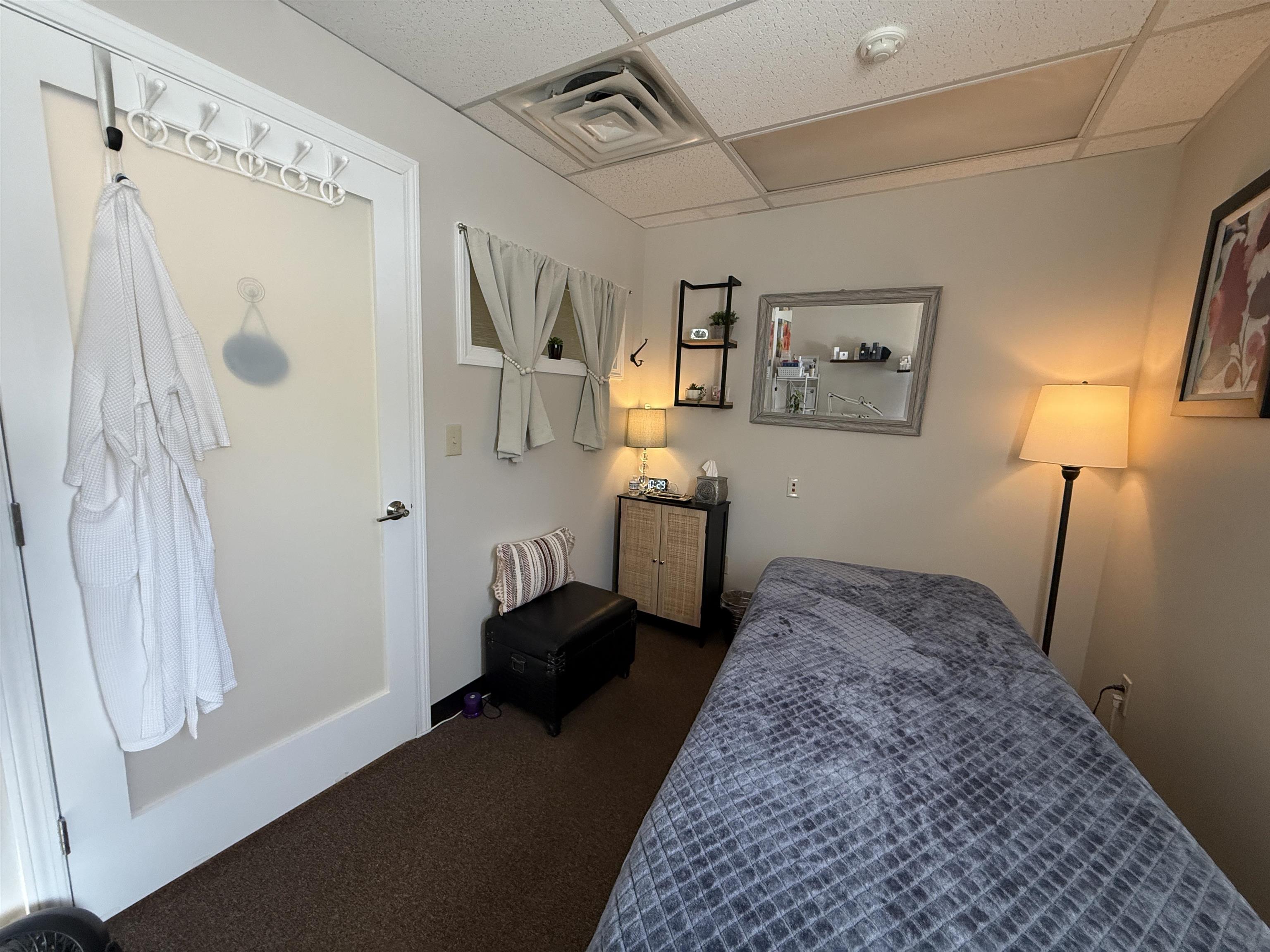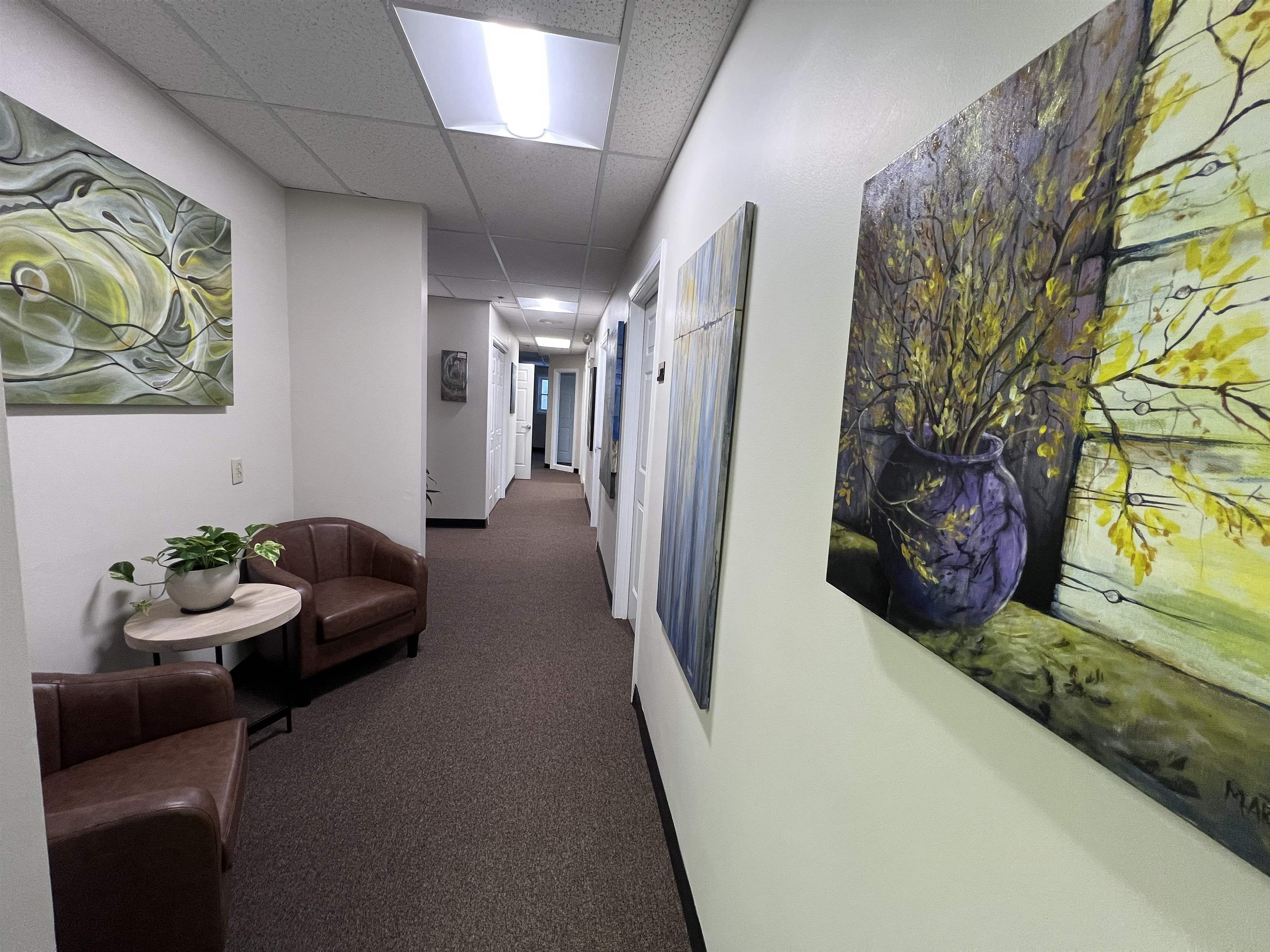 Private one-room office for lease in a professional second-floor office setting. This space is ideal for a small business or individual professional seeking a quiet, comfortable work environment. Rent includes heat, central air, electricity, common bathrooms, and access to a shared kitchen. Plenty of on-site parking. Available April 1st. One year lease minimum. Credit and background checks required. Agent owner. $650 per month.