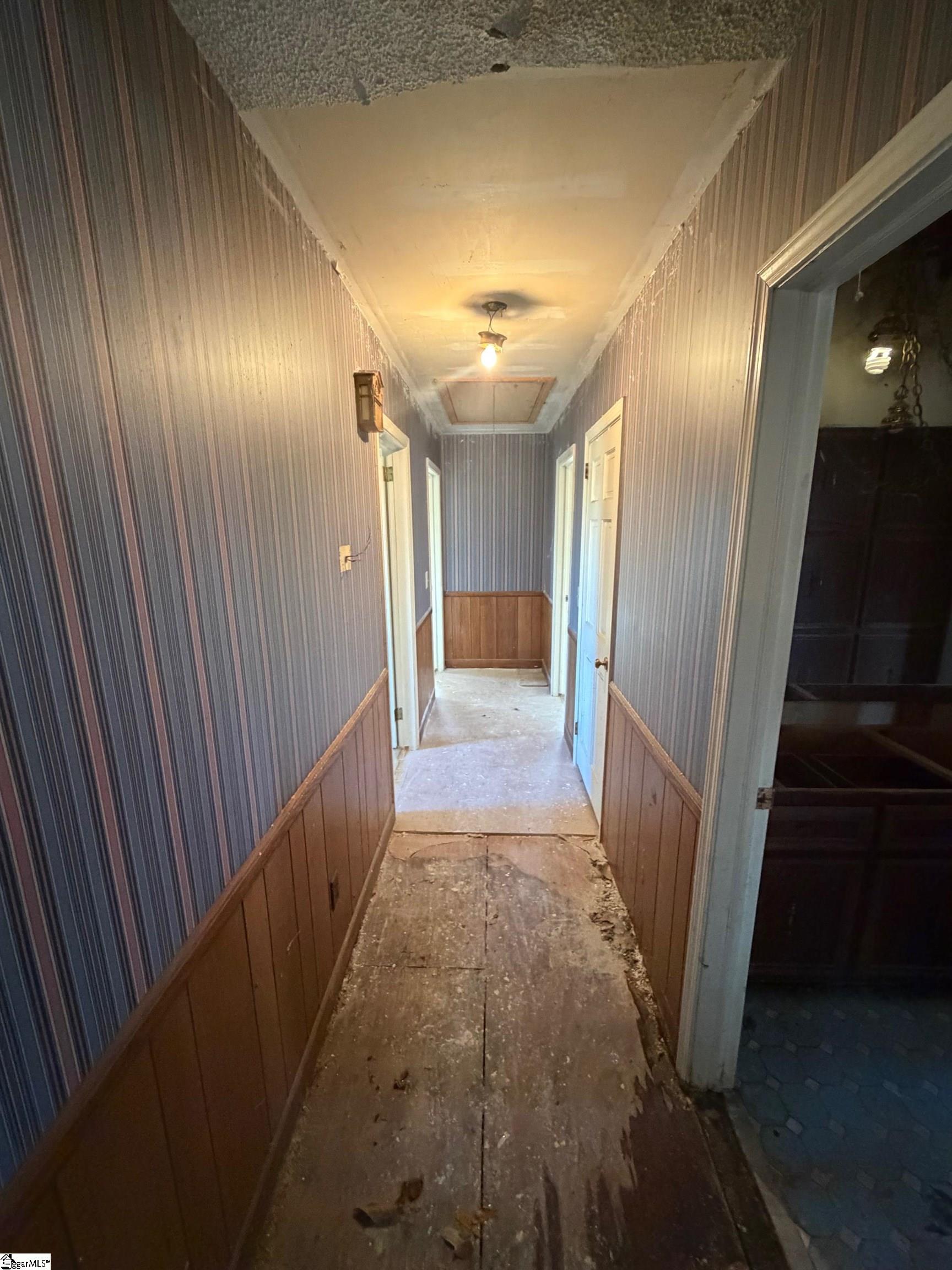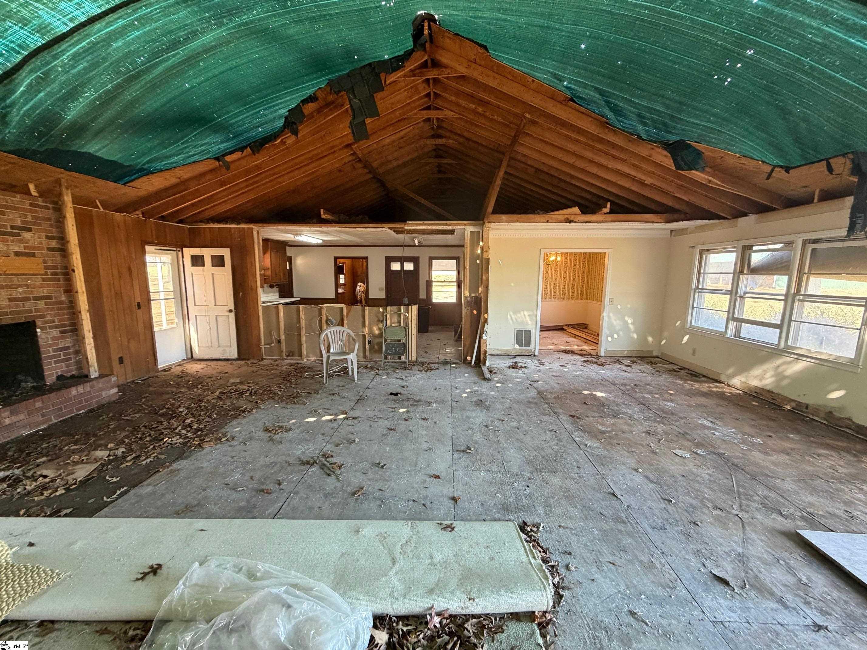 This property has so much to offer, with easy access to Greenville, Simpsonville and Fountain Inn. Plenty of room for your garden and some farm animals, and or just a place to relax away from the hustle and bustle and restrictions of an HOA community. Located approximately five minutes away from Kawonu Golf Club. The property has some of the prettiest pasture that I have ever seen. Existing home on the property was damaged during Helene. Brick home has been condemned by Greenville County as not habitable at this time. Seller has had a structural engineer look at the home to determine what needs to be done to re-build the structure, etc. Seller has a quote to re-build the roof, front porch, etc. It is our understanding that the engineer will sign off/write a letter to Greenville County to aid in pulling a permit with the county to re-build. Most of the damage was to the middle section of the home. The two car garage, kitchen, laundry room and bedrooms do not appear to have sustained much damage. Well and septic are in place. Please note the existing driveway and the barns/exterior buildings do not go with the property. DO NOT ENTER THE HOME WITHOUT THE LISTING AGENT PRESENT.