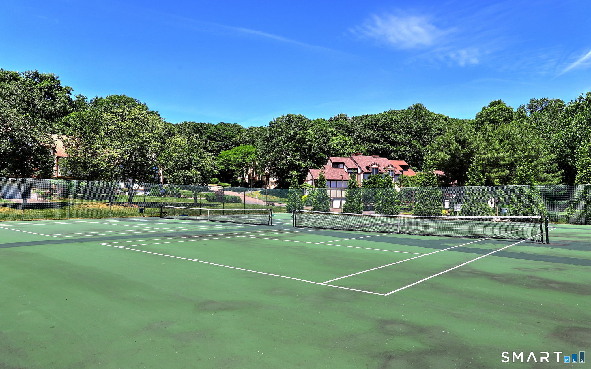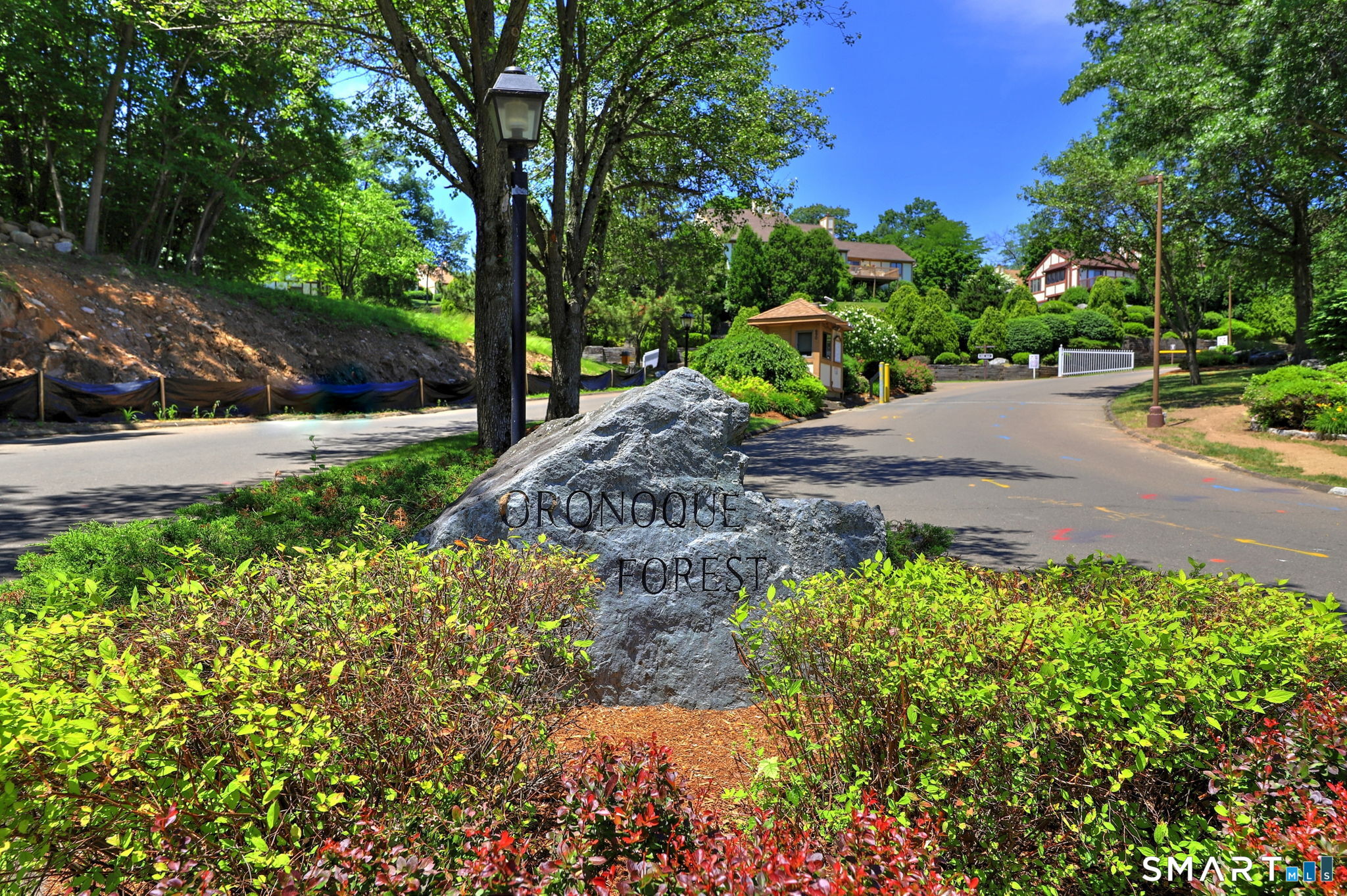 Sought after Oronoque Forest Complex. Exceptional townhouse in a private, wooded location, offers three levels of comfortable and versatile living. This move in Turnbury style unit has an open concept floor plan boasting soaring cathedral ceilings and a dramatic fireplace focal wall. The main level includes expansive living room with sliders to private deck providing both natural light and privacy. The dining room has vaulted ceiling, and the remodeled eat-in kitchen has granite counters, stainless steel appliances and sliders to an additional deck. Also, on the main level is a spacious den or home office if work from home is needed, a wet bar and the primary bedroom suite with a full bath and walk in closet. The upper level features an interior loft overlooking the main living area which makes a great office or TV space. Two additional spacious bedrooms, and another full bath complete the upper level. The lower level offers a comfortable family or media room providing additional living or entertainment space, along with full bath. There is ample storage space, a laundry room & two car garage with deep driveway. A truly special home, combining style, space and functionality. Newer gas water heater, newer appliances, HVAC controls updated to include Nest Thermostats. Complex has parklike grounds, pool, tennis, pickleball, pond & clubhouse. Next to Hopkins School. Minutes to Yale, colleges, hospitals, train station, beach, and commuting. (video doorbell