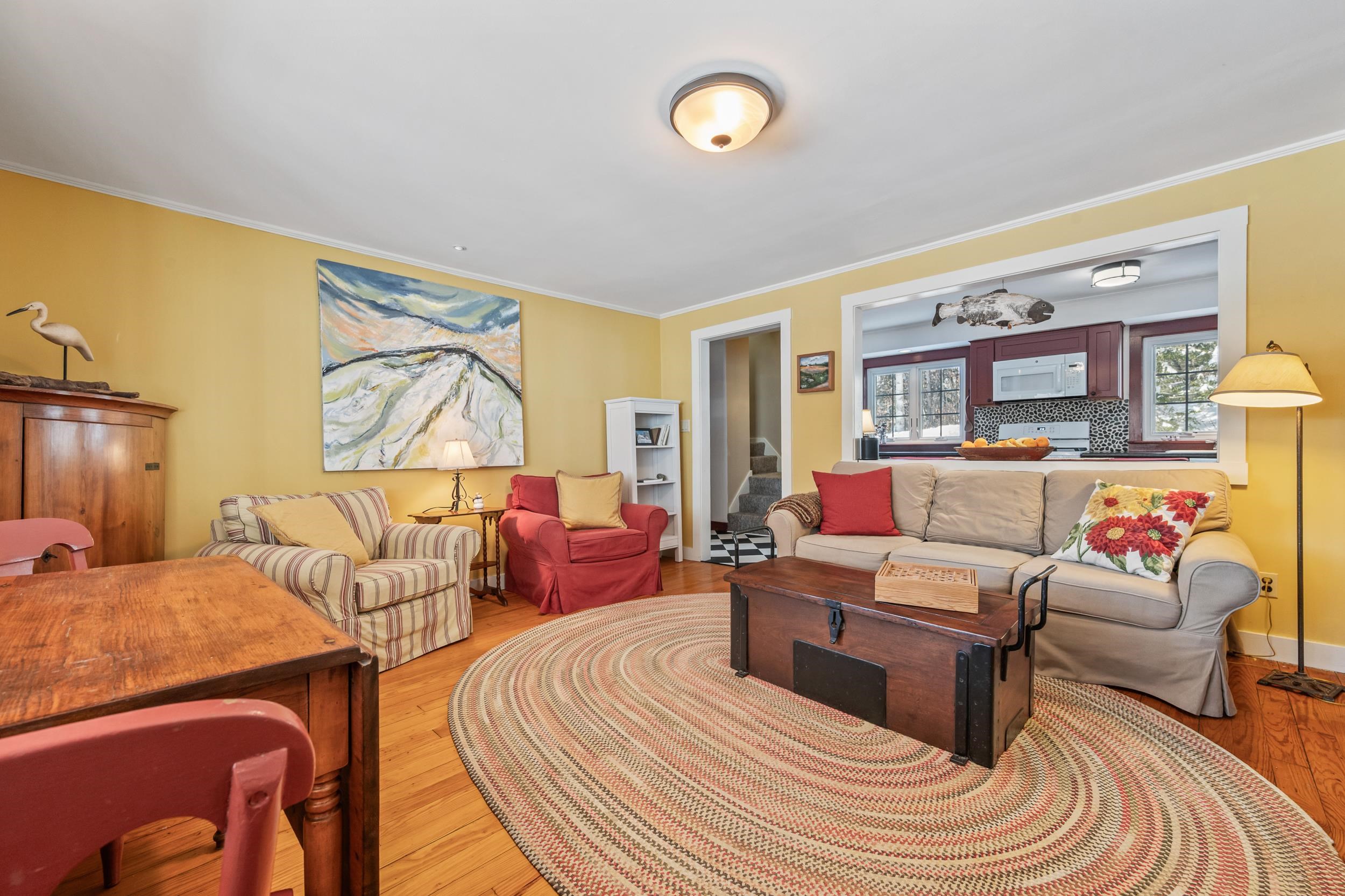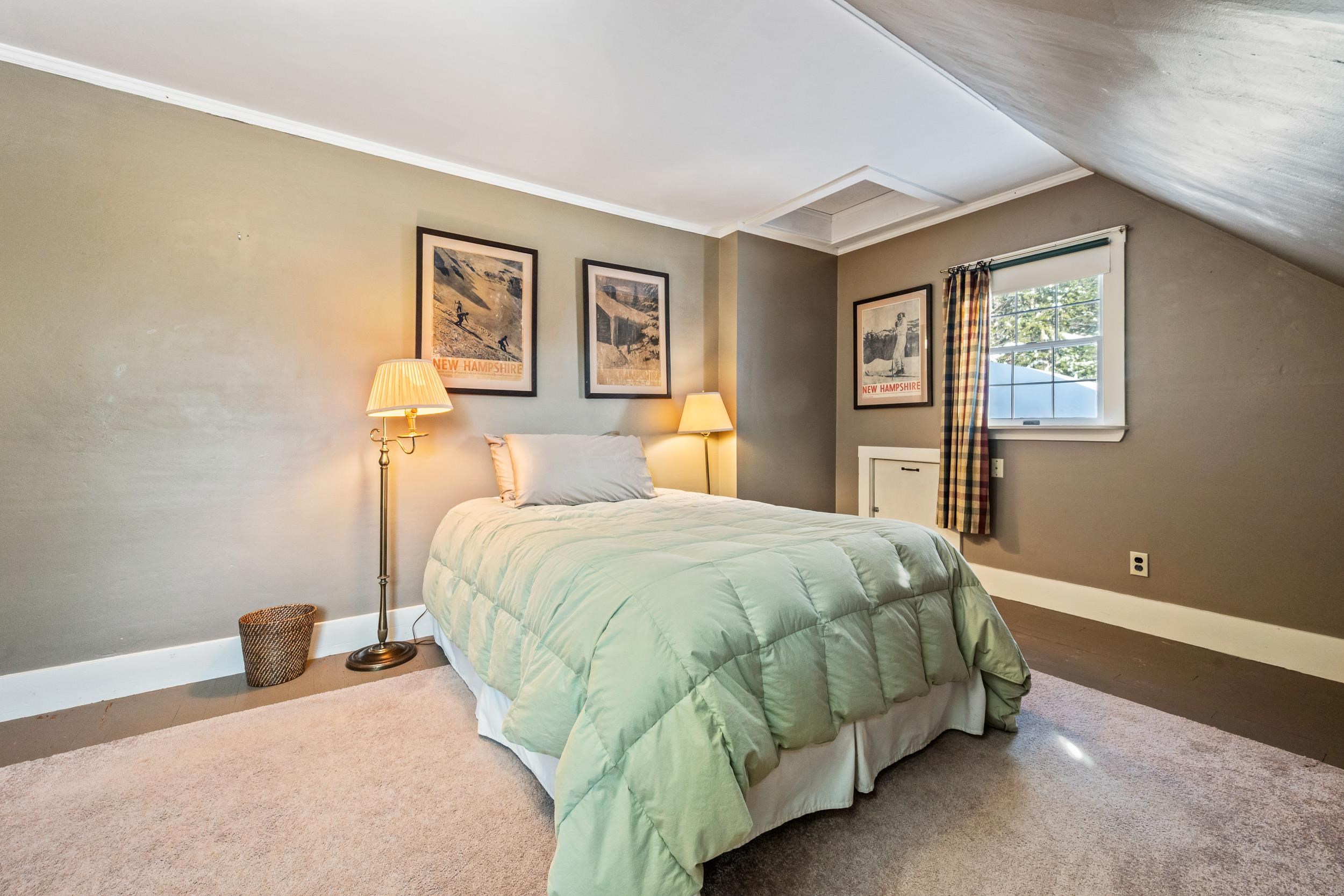 Sunny hilltop Bartlett home with views overlooking a town park, pond and Cranmore. This fully renovated, sun-filled home offers space and warmth. The primary suite is conveniently located on the main level with bright southern exposure, complemented by three additional bedrooms upstairs. Spend Winter evenings by the wood-burning fireplace, enjoy a quiet afternoon nap in the sun room, relish the summer breezes on the screened porch, or challenge friends in the game room. Walk out the door to hike Mt. Surprise, Mt. Bartlett & Kearsarge North, or mountain bike the extensive local trail network. With 3, 000 square feet of living area, a detached two-car garage plus workshop, and efficient, thoughtful upgrades throughout, this home is ideally located in low-tax Bartlett, just five minutes to North Conway Village.