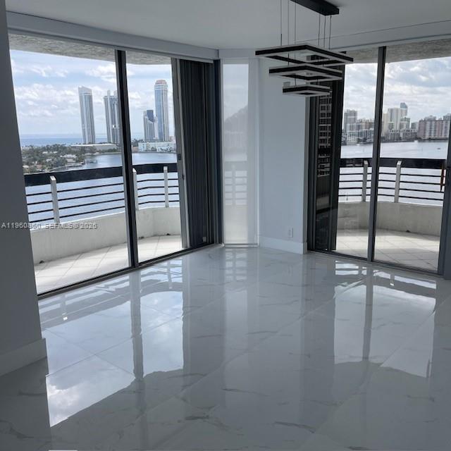 Most sought-after line in Mystic 500. One of only 2 per floor. Full 3 bedr. 3 bath, completely renovated in 2024. New kitchen, new bathrooms, new porcelain floors, lighting galore, electric shades, the work. Laundry room, hurricane shutters. Amazing water views all around. Ocean bay and marina. Amenities include 24h front desk and valet, gym, Jacuzzi, swimming pool overlooking the bay in the sun the whole day, sauna, exercise classes, party room. Gated community, boasting restaurant, mini market, hair salon, massage therapy, various tennis courts, pickleball, basketball, kids' playground. Walk around the golf circle, 5 min from Aventura mall, aventura square, the waterways and various restaurants. Courtesy bus. Available in April. Call listing agent for showings.