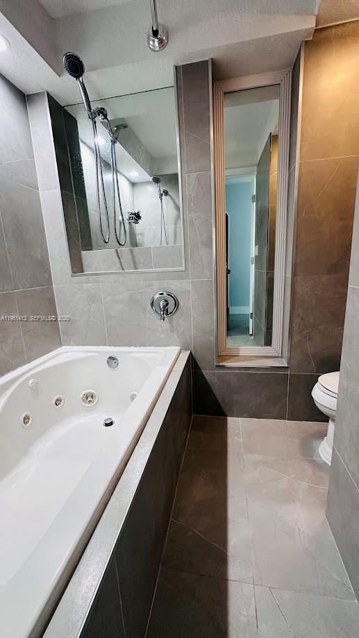 The spacious primary bedroom includes a walk-in closet and a beautifully updated en-suite bathroom featuring a Jacuzzi tub, a double-sink vanity, and fully tiled walls.