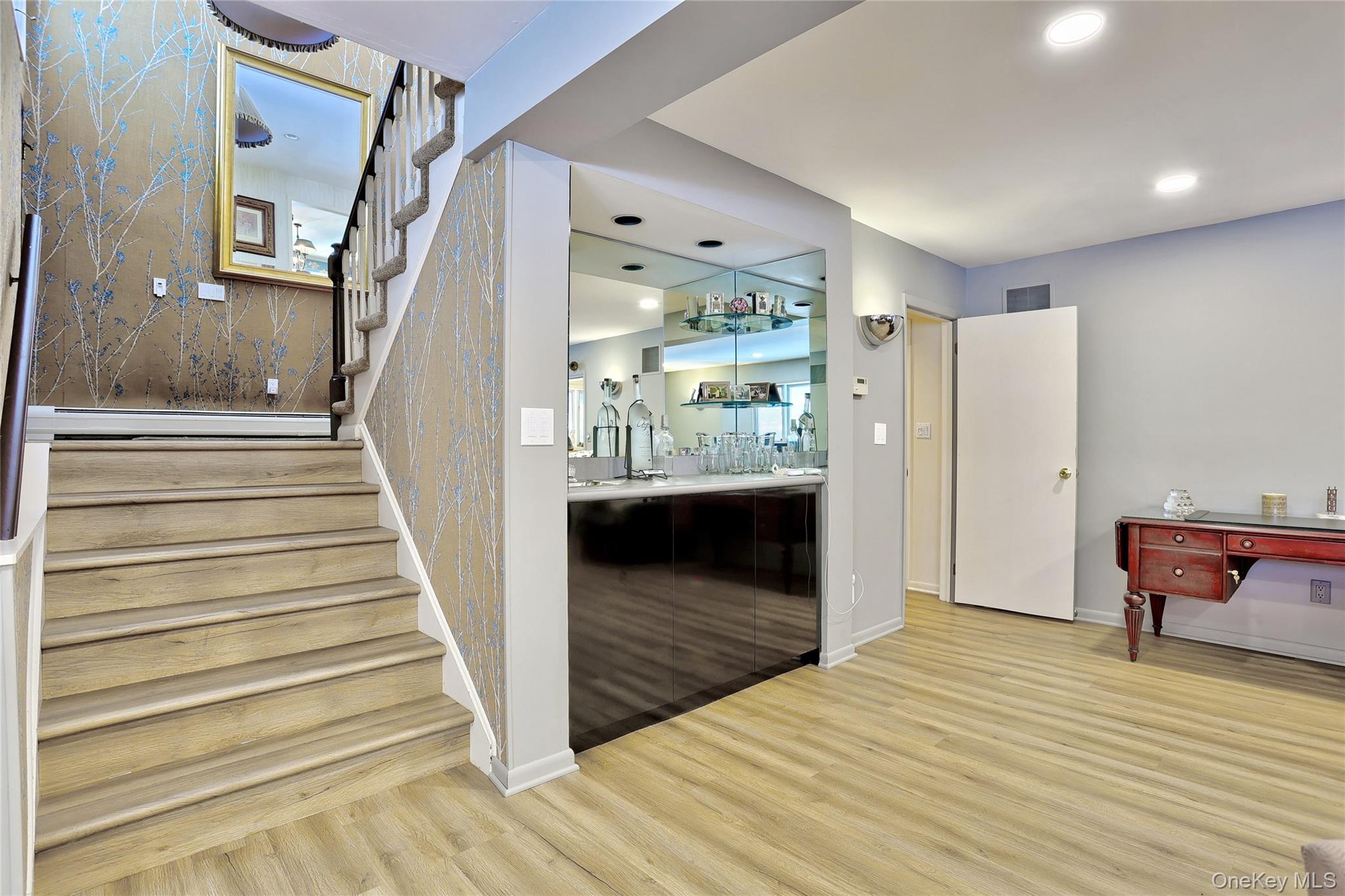 New City: Clean, Spotless, and Beautifully cared for! You will be "wowed" by this custom mansard home in Dellwood Park set on a professionally landscaped property backing up to the golf course. Many new and updated features such as a modern kitchen with a full wall of glass giving it a warm feel, lots of cabinetry, double oven, quartz counters and a tiled floor open to the family room with an electric fireplace. Spacious 1 1/2 story living room with a skylite, hw floors and large windows letting in loads of natural light. All the bedrooms are extra large with plenty of closet space, and the master bedroom has a stunning tiled bathroom with stone, spa finishes, multiple jets and shower heads, a large tub and a walk in closet. The lower level boasts a masonry gas fireplace with genuine stone, large windows, and studio that may be used as another bedroom beside the 2 other bedrooms on the lower level with a separate entrance to the yard with a paver patio and gardens in the summer. The exterior has modern siding, a paver driveway, many annuals a trex deck with plenty of room for entertainment overlooking a gorgeous backyard looking at no one. Besides a 2 car garage, there is a workshop and an additional room which is great for an office, storage, or a hobby room. Make this your new home!