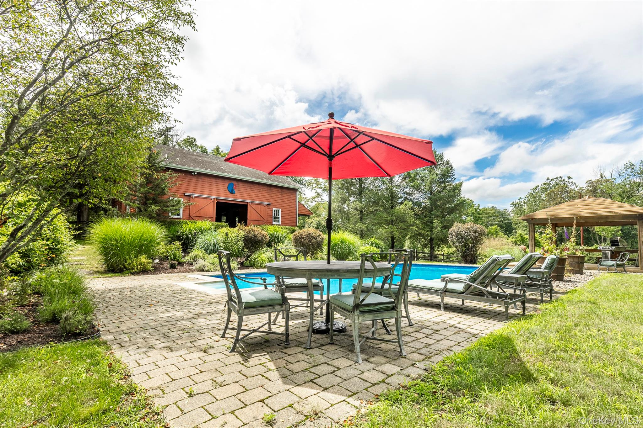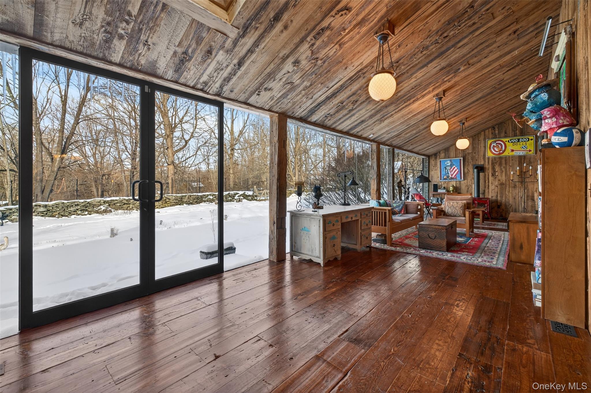 Tucked behind a quiet country approach, two meticulously restored 19th-century barns have been reimagined into a refined luxury residence and companion pool house that feel timeless in character and elevated in execution. Inside the main residence, soaring vaulted ceilings, original hand-hewn beams, and wide-plank floors establish a sense of warmth and permanence, while expansive walls of glass invite natural light and create a seamless connection to the surrounding landscape. At the heart of the home, a beautifully appointed country kitchen anchored by a wood-burning fireplace is designed for both slow mornings and elegant entertaining. A dramatic great room and adjoining music room provide generous gathering spaces, while three bedrooms offer private, hotel-level comfort for guests. Outdoors, a heated in-ground pool is set among stone terraces and anchored by a fully outfitted luxury pool house with kitchen, bedroom, and bath, ideal for hosting, unwinding, or extended stays. The setting offers exceptional privacy while remaining effortlessly connected. Located less than 75 miles from New York City and just 10 minutes from the center of Millbrook, the property delivers the best of Hudson Valley living. World-class wineries, scenic hiking trails, equestrian estates, and farm-to-table dining are moments away, creating a lifestyle defined by balance, where weekend escape meets full-time retreat. This is not a conversion. It is a destination. A rare offering where historic architecture, modern luxury, and the rhythms of country life converge, all within easy reach of the city.