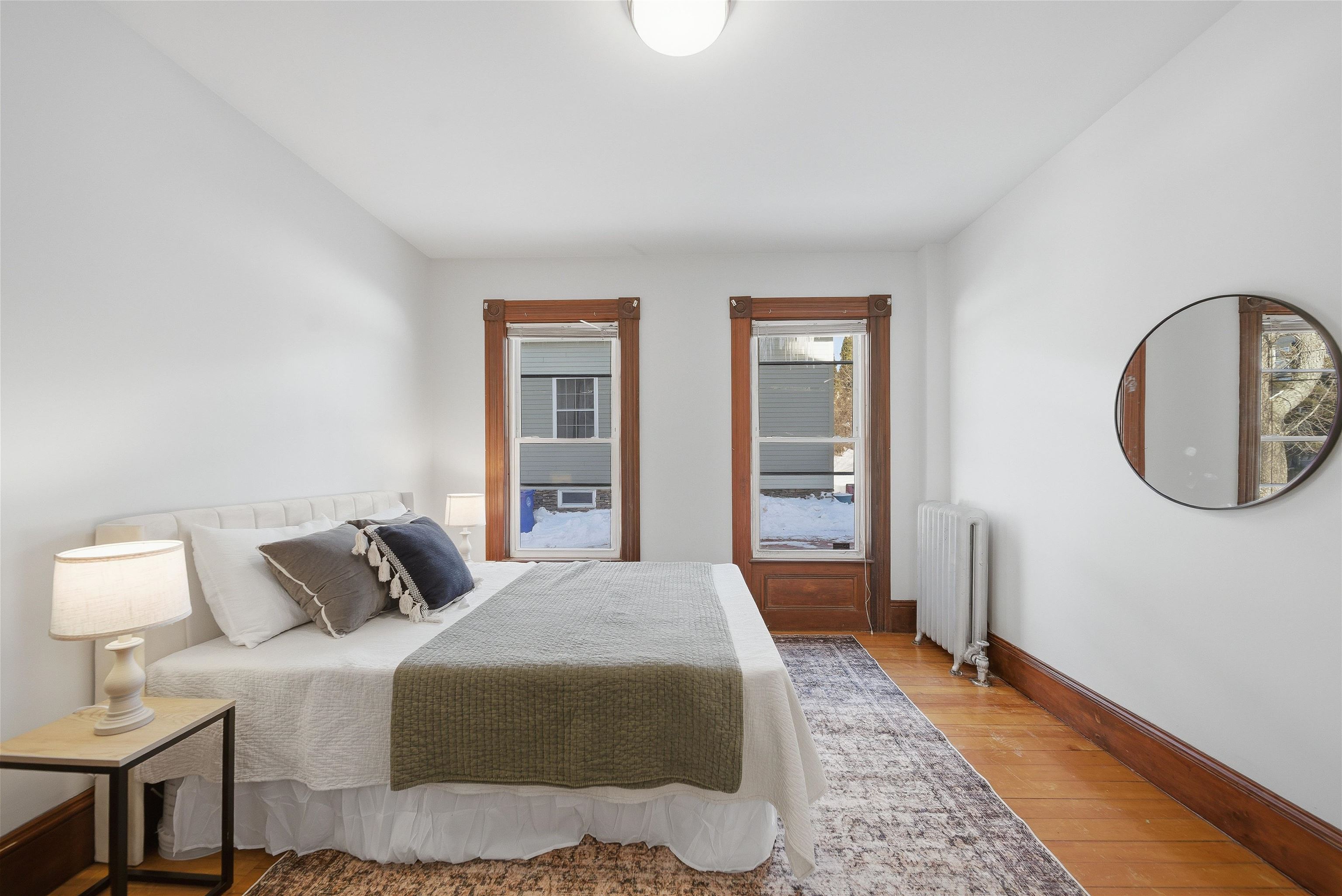 This is a quintessential North-end Manchester New Hampshire duplex. High ceilings, large windows, and fresh, bright paint open up the space, making this feel like your home, not just your unit. Unpainted original trim outline every window and doorway, reminding you that you are the latest person to own this home, but not the first. Kitchens and bathrooms have been gut renovated tastefully, being careful not to clash with the original wood features which are abundant in this property. The first floor unit is vacant and staged beautifully to help provide a vision for you, while the upstairs unit is leased out to a tenant who has never been late on rent and keeps their unit in pristine condition. From your front door, you are a 15 minute walk to the trails at Livingston Park and a 10 minute walk to the Currier Art Museum. An in-person visit is necessary to feel everything that 253 Walnut St has to offer. Either attend an open house, or better yet contact your favorite realtor to schedule a showing today.
