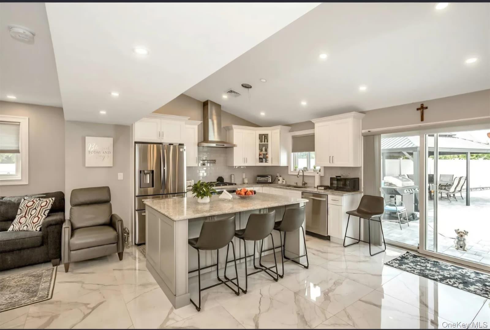 Welcome to 3012 Mandalay Beach Road, a refined coastal residence ideally located in the heart of Wantagh. This beautifully updated hi-ranch seamlessly blends elegance, comfort, and modern design. Offering four generously sized bedrooms and four full bathrooms, the home showcases heated floors, marble, and hardwood flooring throughout, creating a sophisticated and inviting atmosphere. The thoughtfully designed kitchen is perfect for elevated entertaining and family gatherings, featuring sleek stainless steel appliances and ample space to host with ease. The outdoor retreat is equally impressive, boasting a private in-ground pool, ideal for luxurious summer living. Just steps from the beach, this exceptional property also offers convenient access to shopping, dining, and all local amenities. A rare opportunity to own a beautifully appointed home in a premier location — this residence should not be missed.