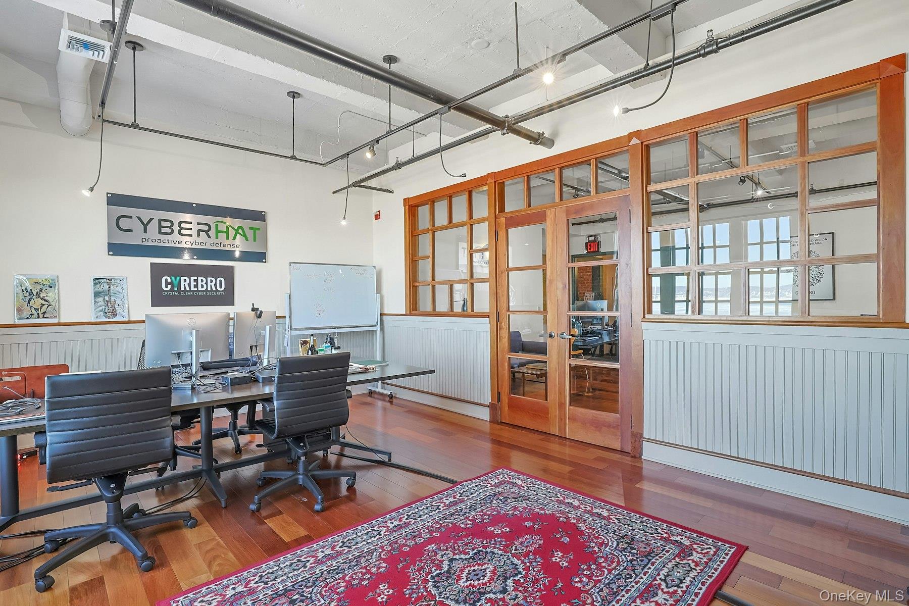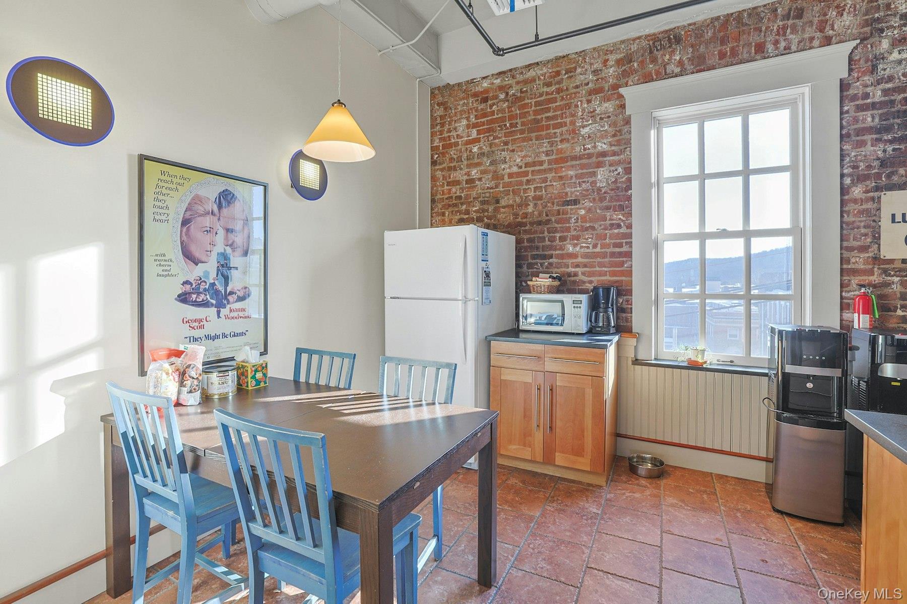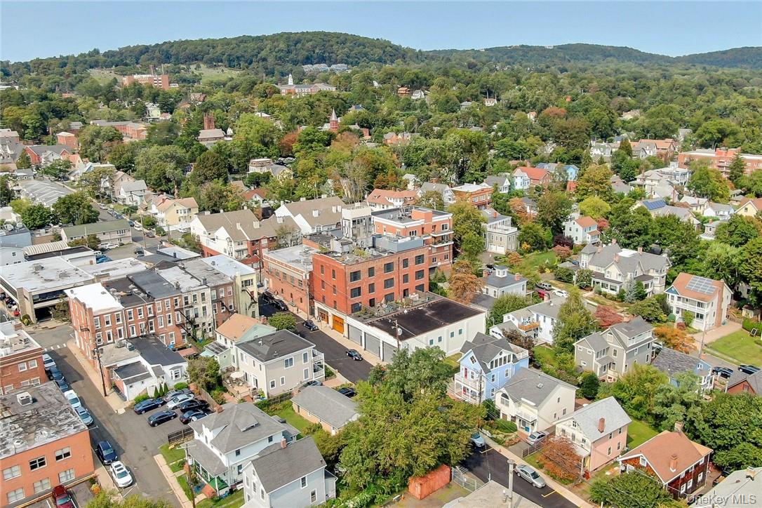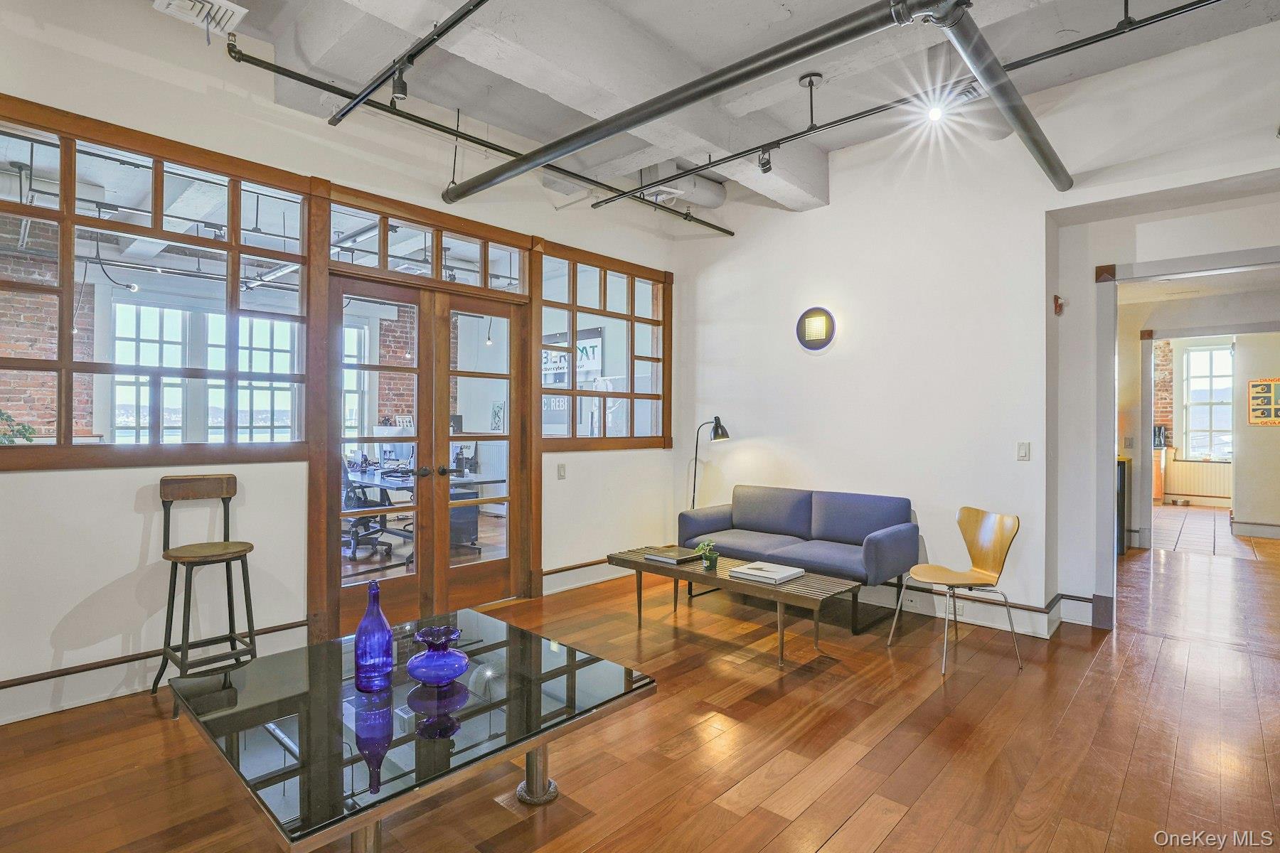 Extraordinary six-room office suite perched on the top floor of the historic Nyack Express Building in the heart of downtown Nyack, offering breathtaking, wide-open views of the Hudson River. Tenant has access to roof top deck too. This sun-filled space—originally a moving and storage building—was completely rehabilitated in the early 2000s and now boasts a refined industrial aesthetic with exposed brick walls, 12-foot concrete ceilings, true divided-light Marvin windows, and warm wood floors throughout. Feels more like an Amon Resort than an office rental. A luxury rental for a tenant looking to make a statement for its brand or one who loves style. The suite features a welcoming reception area (which can also function as an office), four large river-facing rooms, plus an additional room ideal for an office, conference room, or studio. Tenants enjoy access to a chef’s kitchen equipped with a professional-grade Garland stove, as well as a rooftop deck overlooking the Hudson—perfect for breaks or informal meetings. Ideally located just 1/2 block to the Hudson River, off North Broadway, two blocks from Main Street, and steps from the Runcible Spoon Cafe. A truly inspiring alternative to working from home.