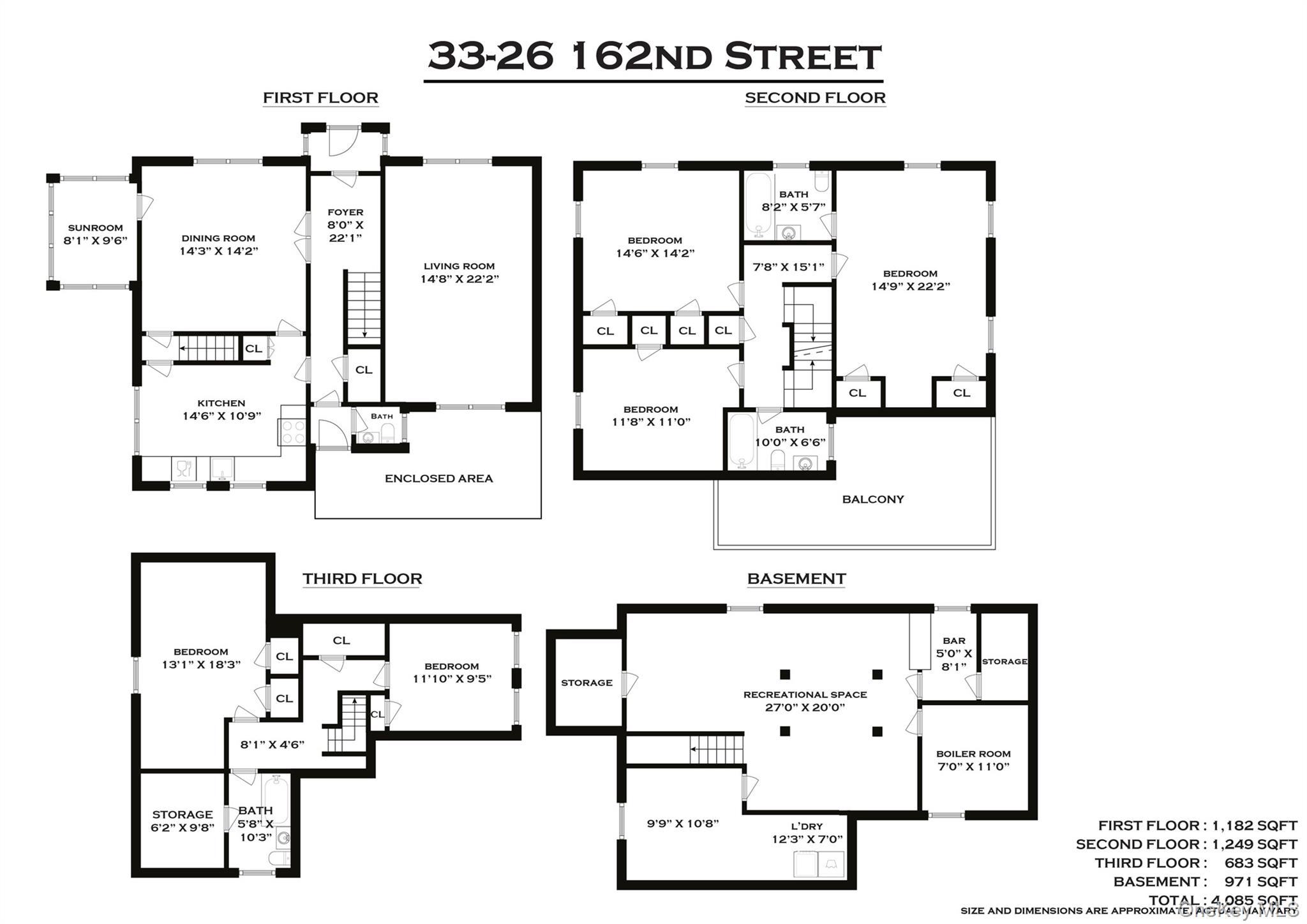 Located in a prime North Flushing neighborhood, this stately one-family detached home at 33-26 162nd Street presents a rare opportunity for those seeking grand scale and unlimited potential. The residence is situated on a massive 8, 000-square-foot lot (80x100) and offers approximately 2, 912 square feet of total interior space across four finished levels. The surrounding community is known for its suburban tranquility while remaining close to the vibrant dining, shopping, and transit options of downtown Flushing. Residents enjoy easy access to the LIRR, local parks, highly-regarded schools, and a variety of neighborhood conveniences that make this a highly sought-after enclave in Queens. The main level of this sprawling home begins with an expansive 22-foot foyer that leads into a massive living room and a formal dining room perfectly suited for large-scale entertaining. A sun-drenched sunroom provides a peaceful retreat, while the large eat-in kitchen and a convenient full bathroom complete this floor. On the second level, you will find three generous bedrooms, including a primary suite with a private balcony, and a large full bathroom. The finished third level adds incredible versatility with two additional bedrooms and another full bathroom, including one exceptionally large bedroom that is ideal for a second primary suite or a quiet home office. Further enhancing the home's value is a fully finished basement featuring a large recreational space with a built-in bar, a dedicated laundry area, movie projector and significant storage. Outside, the oversized property provides an enormous backyard with endless possibilities for professional landscaping or future expansion. New owners will also enjoy the wide private driveway, rooftop solar panels, detached garage and a brand new boiler. This impressive home combines the luxury of space with a premier location in one of Queens' most established residential communities.