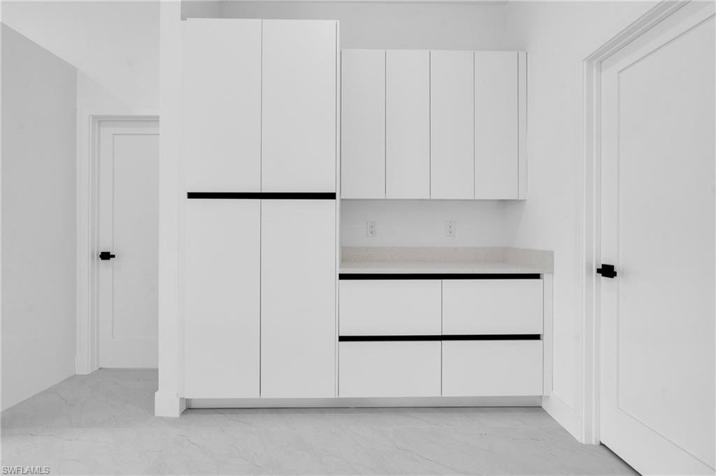 Corner lot opportunity – priced to sell fast! This brand-new construction in Lehigh Acres offers 3 bedrooms + den, 2 bathrooms, with 1, 630 sq ft under air and 2, 230 total construction sq ft. Designed with modern elegance, featuring porcelain flooring throughout, quartz countertops, and sleek gola-style handles in the kitchen and bathrooms. Enjoy a stunning double-height ceiling that enhances natural light and creates an open, airy feel. The lanai is prepped with installation ready for an outdoor kitchen—perfect for entertaining. Situated on a desirable corner lot with extra space, ideal to park your truck, RV, or boat. Don’t miss this move-in ready home with contemporary finishes and exceptional value! *Pictures are from the same model but in different location, new pictures coming soon!*