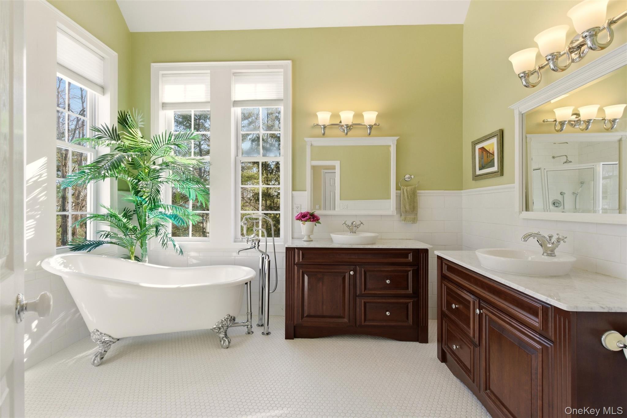 Located at the end of a quiet cul-de-sac in Strathmore Park, this pristine and immaculate Colonial offers turnkey living in the heart of Dix Hills. Thoughtfully and meticulously updated, the home features 4 bedrooms and 5 baths, highlighted by a newly finished, sleek eat-in kitchen that opens seamlessly to the breakfast room and family room with gas fireplace & sliders to a spacious back deck—perfect for everyday living and entertaining. The oversized primary suite offers privacy and a spa like bath. Three additional bedrooms, two full baths and the laundry room complete the second floor. Additional highlights include gas heat, central air, 9-foot ceilings on the main level, sewer (yes—sewer!), underground electric, an oversized two-car garage, and a full basement with abundant storage. Set on a stunning . 78-acre country-club property backing 35 acres of protected land, the home also enjoys access to Strathmore Park amenities (fee) including pool, tennis, pickleball, and snack bar, all within the Half Hollow Hills School