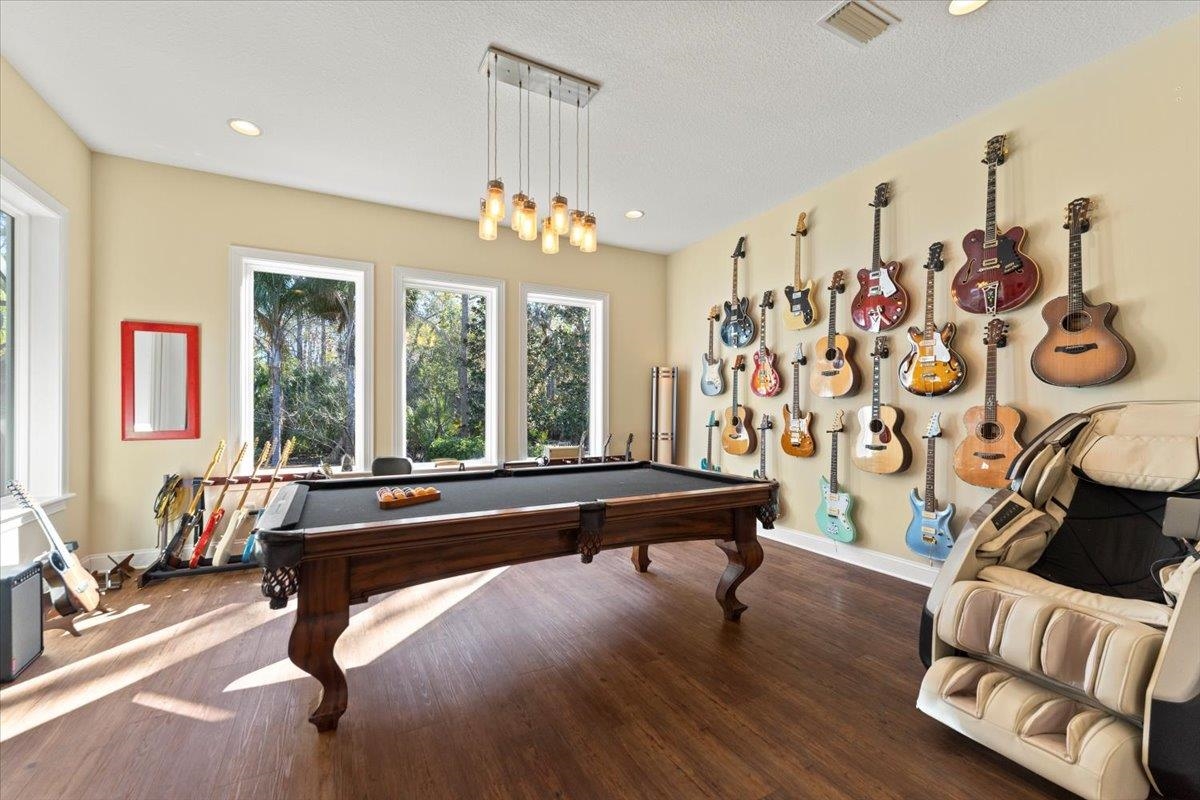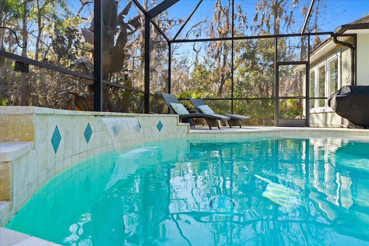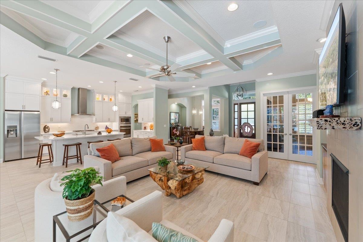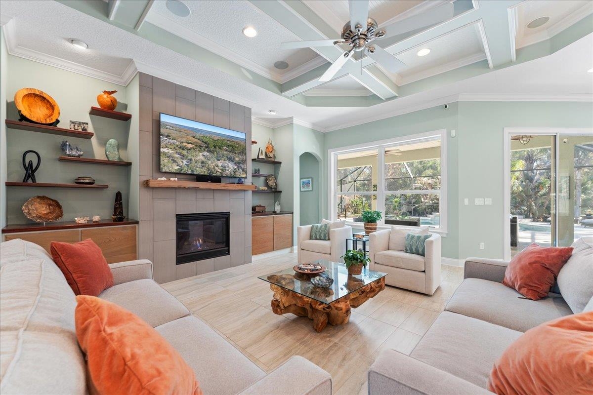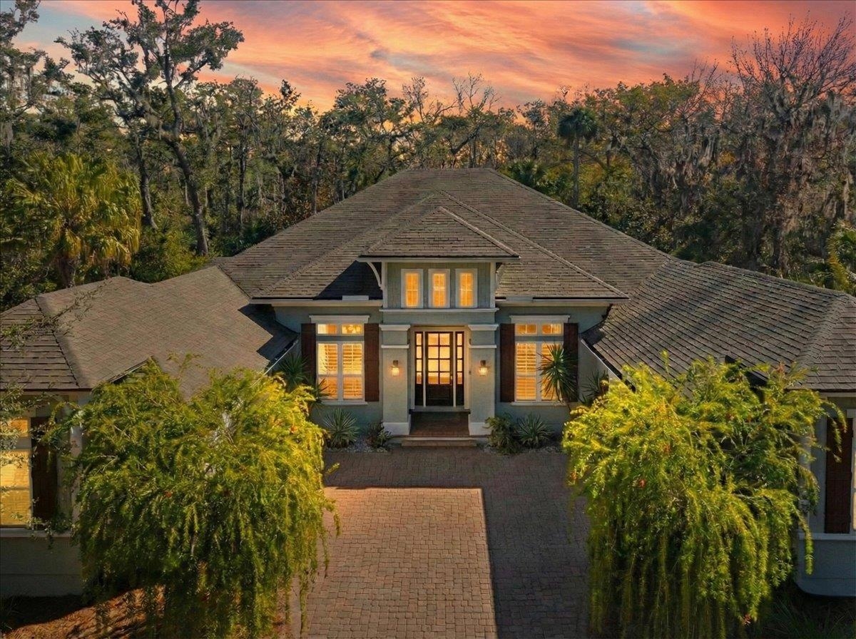 Stunning Riverside Coastal elevation home by Dostie Homes complete with four car garage by double garages on each side. Magnificent screened pool and just under acre private lot on the east intracoastal / marsh side . Hickory Hill Drive is a sought after street and this homes location is only a short walk to the 3/4 mile boardwalk through the scenic wetlands to a fishing pier on the intra coastal waterway. Enjoy all the benefits of Palencia-"The Palencia Club" golf and dining, aquatic centre 2 pools and splash pad, fitness & wellness centres, tennis, pickleball, basketball court, parks, trails and more. New Elementary School in the community plus Publix and many shops and restaurants. This 4 bedroom 3 1/2 bath home with open floor plan features a gourmet kitchen open to a coffered ceiling living room, formal dining room, separate home office and an amazing music room. The back 30 X 46 screen lanai with waterfall pool and spectacular landscaping creating your own private nature preserve.