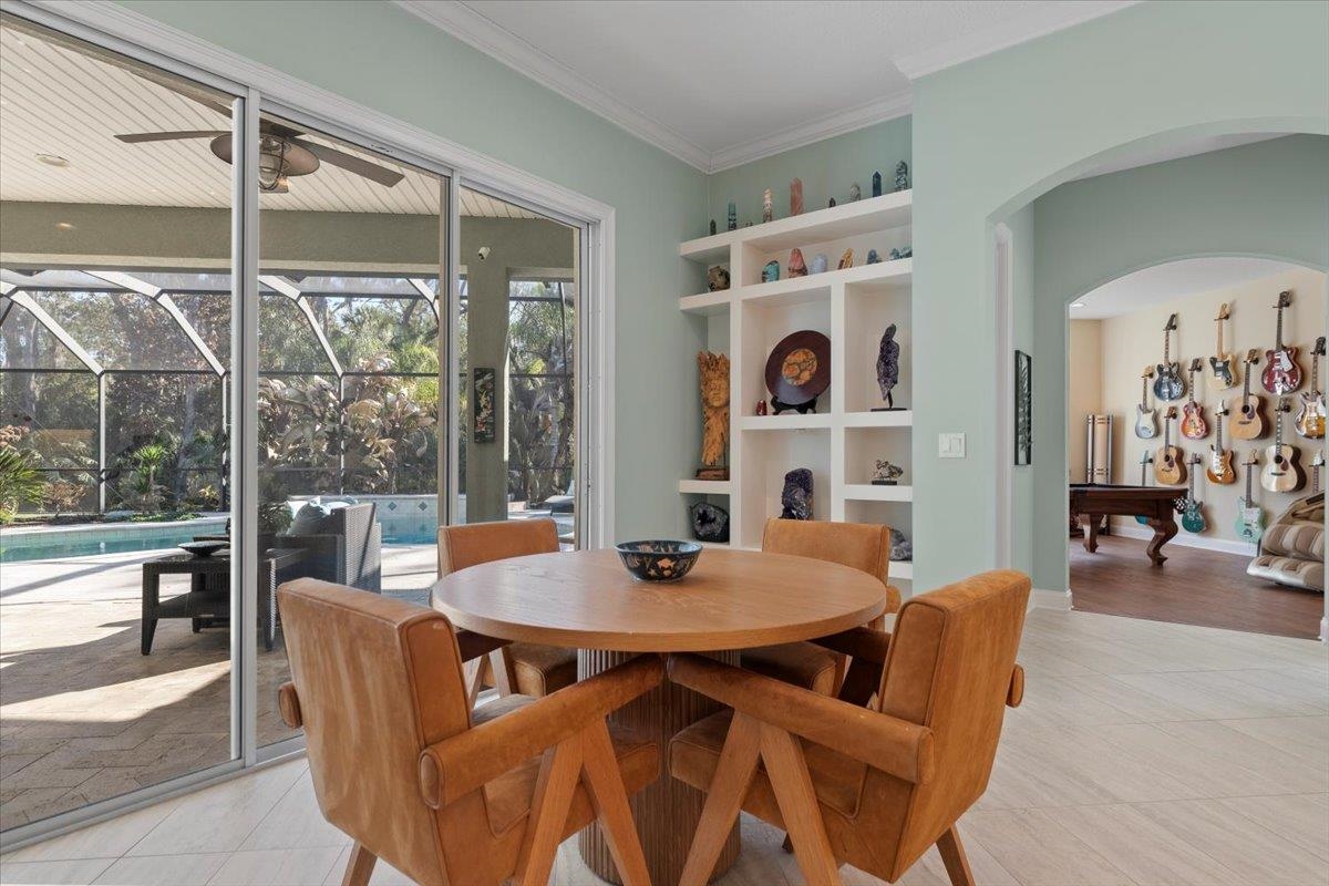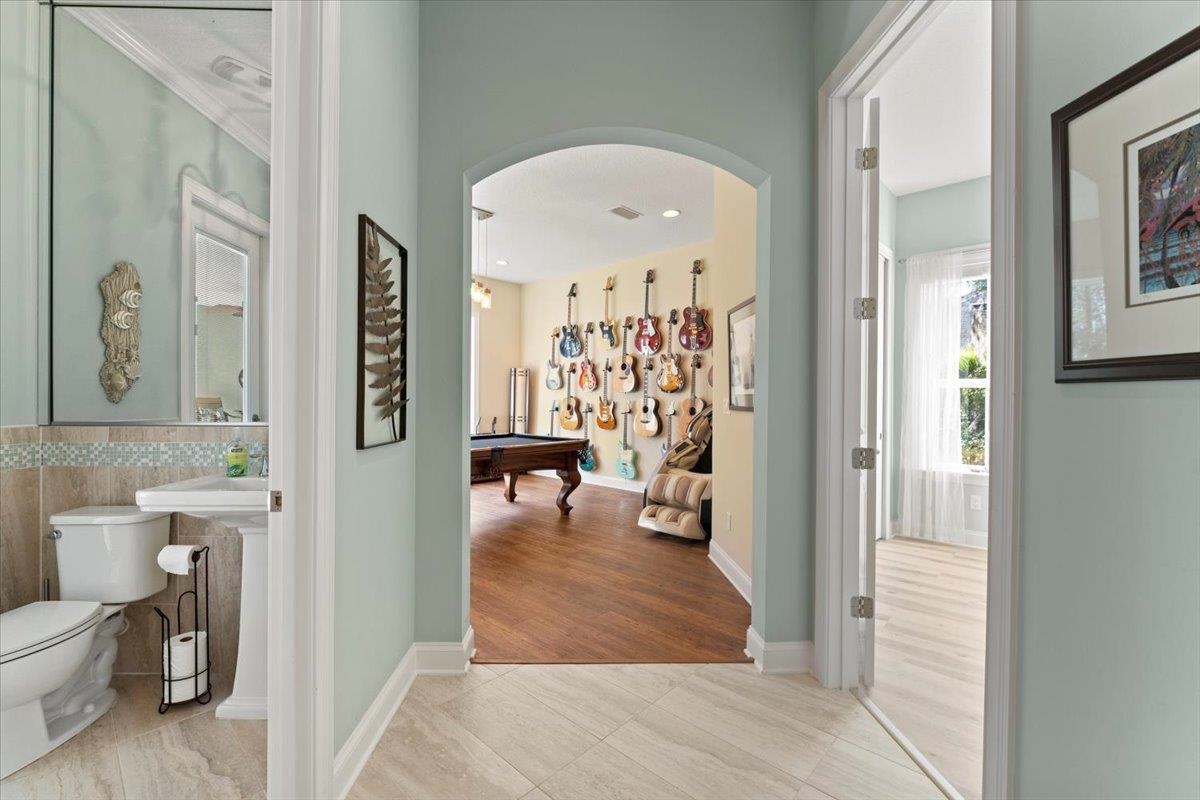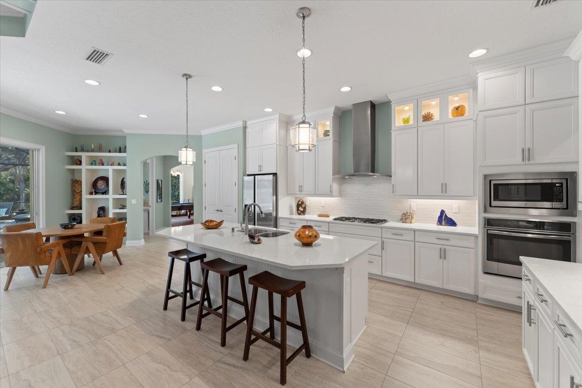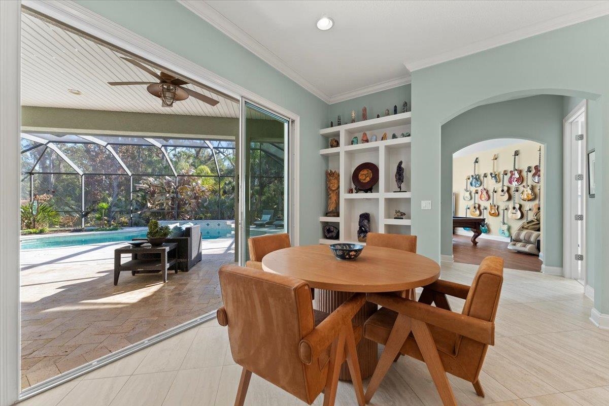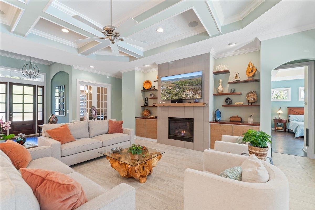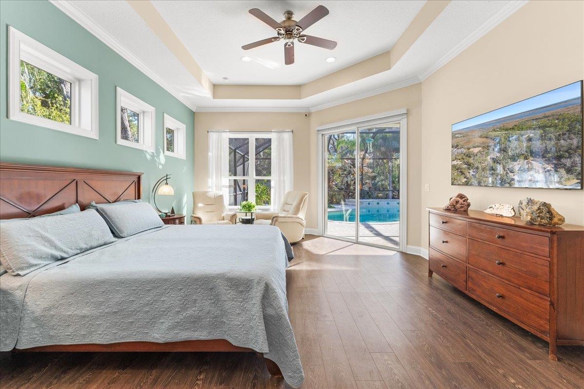 Stunning Riverside Coastal elevation home by Dostie Homes complete with four car garage by double garages on each side. Magnificent screened pool and just under acre private lot on the east intracoastal / marsh side . Hickory Hill Drive is a sought after street and this homes location is only a short walk to the 3/4 mile boardwalk through the scenic wetlands to a fishing pier on the intra coastal waterway. Enjoy all the benefits of Palencia-"The Palencia Club" golf and dining, aquatic centre 2 pools and splash pad, fitness & wellness centres, tennis, pickleball, basketball court, parks, trails and more. New Elementary School in the community plus Publix and many shops and restaurants. This 4 bedroom 3 1/2 bath home with open floor plan features a gourmet kitchen open to a coffered ceiling living room, formal dining room, separate home office and an amazing music room. The back 30 X 46 screen lanai with waterfall pool and spectacular landscaping creating your own private nature preserve.