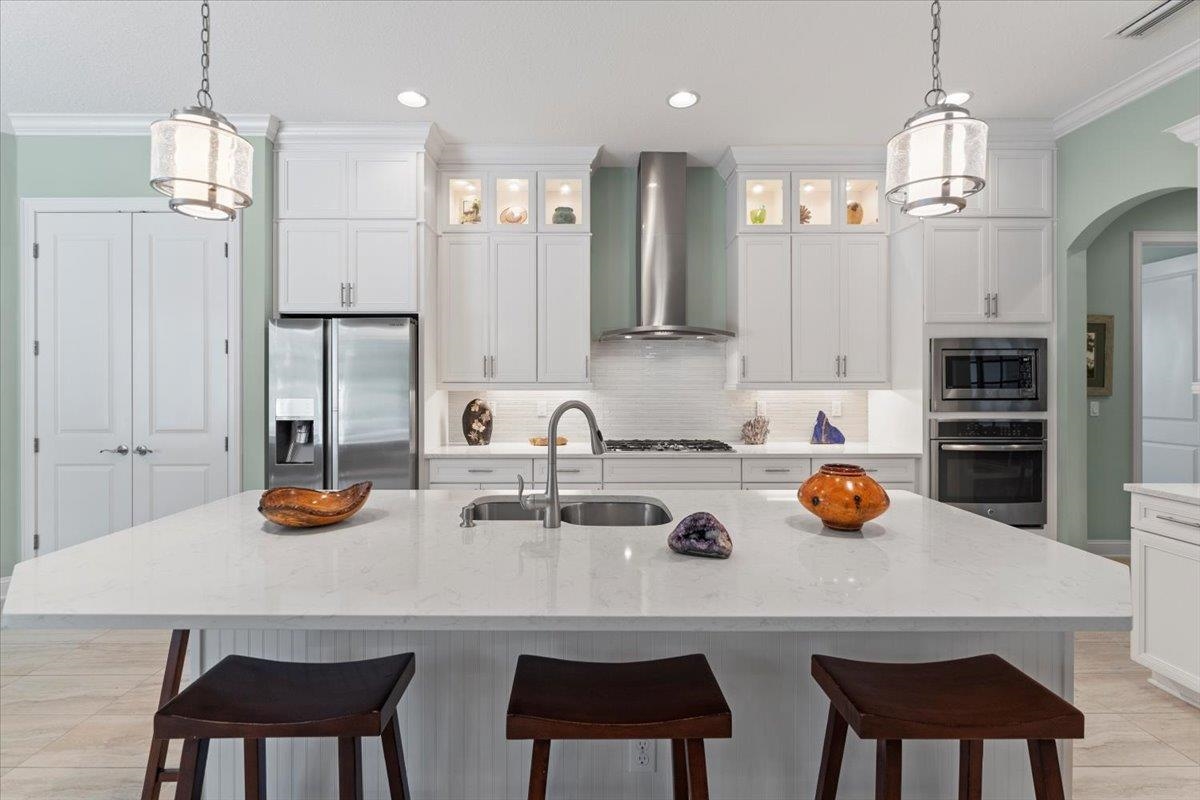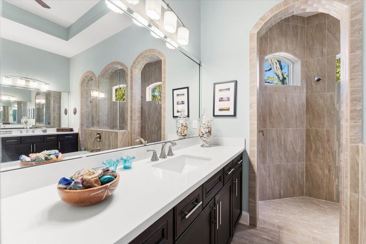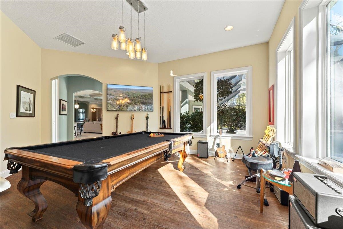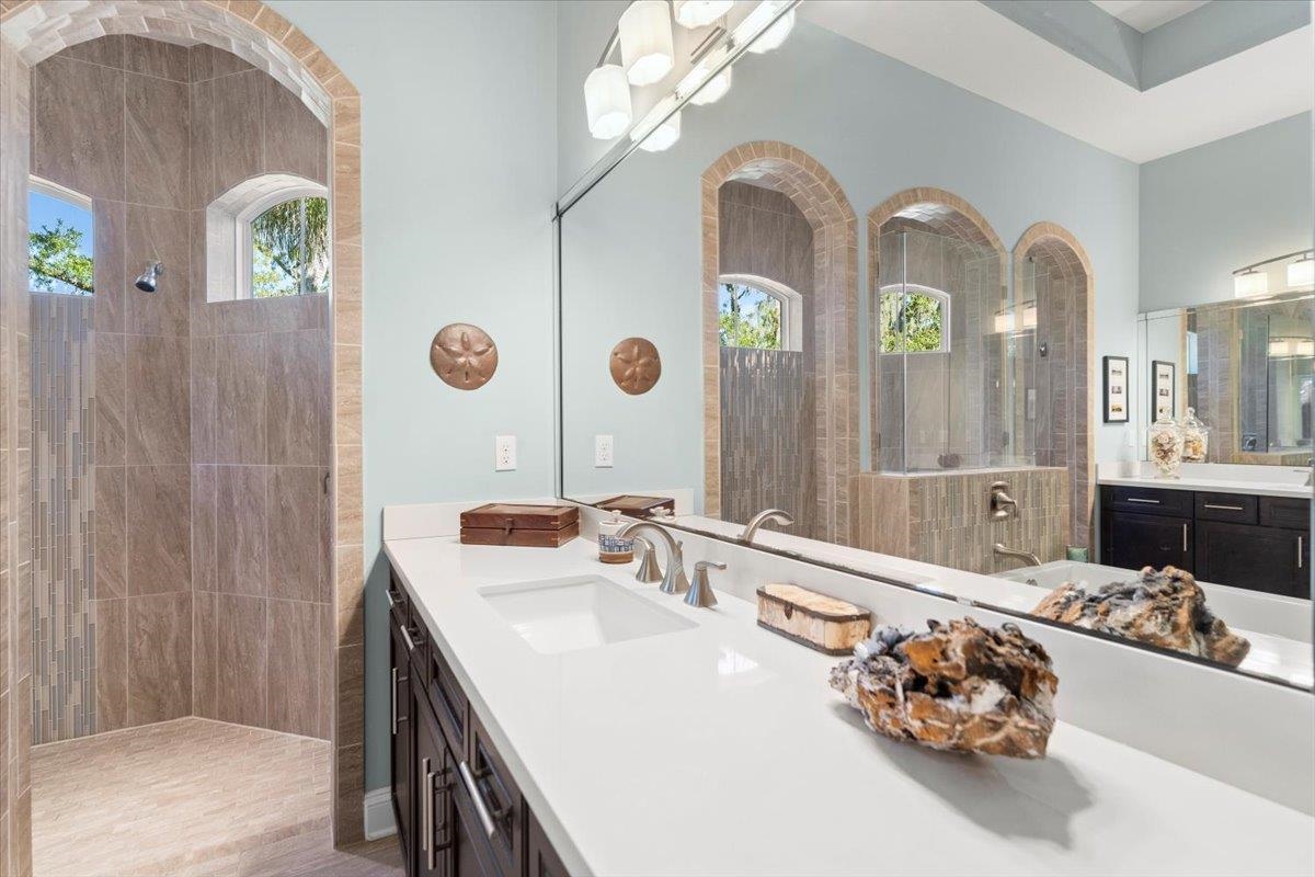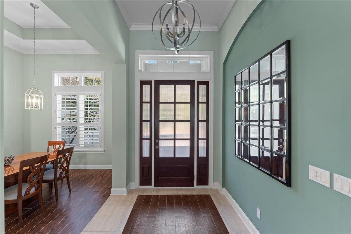 Stunning Riverside Coastal elevation home by Dostie Homes complete with four car garage by double garages on each side. Magnificent screened pool and just under acre private lot on the east intracoastal / marsh side . Hickory Hill Drive is a sought after street and this homes location is only a short walk to the 3/4 mile boardwalk through the scenic wetlands to a fishing pier on the intra coastal waterway. Enjoy all the benefits of Palencia-"The Palencia Club" golf and dining, aquatic centre 2 pools and splash pad, fitness & wellness centres, tennis, pickleball, basketball court, parks, trails and more. New Elementary School in the community plus Publix and many shops and restaurants. This 4 bedroom 3 1/2 bath home with open floor plan features a gourmet kitchen open to a coffered ceiling living room, formal dining room, separate home office and an amazing music room. The back 30 X 46 screen lanai with waterfall pool and spectacular landscaping creating your own private nature preserve.