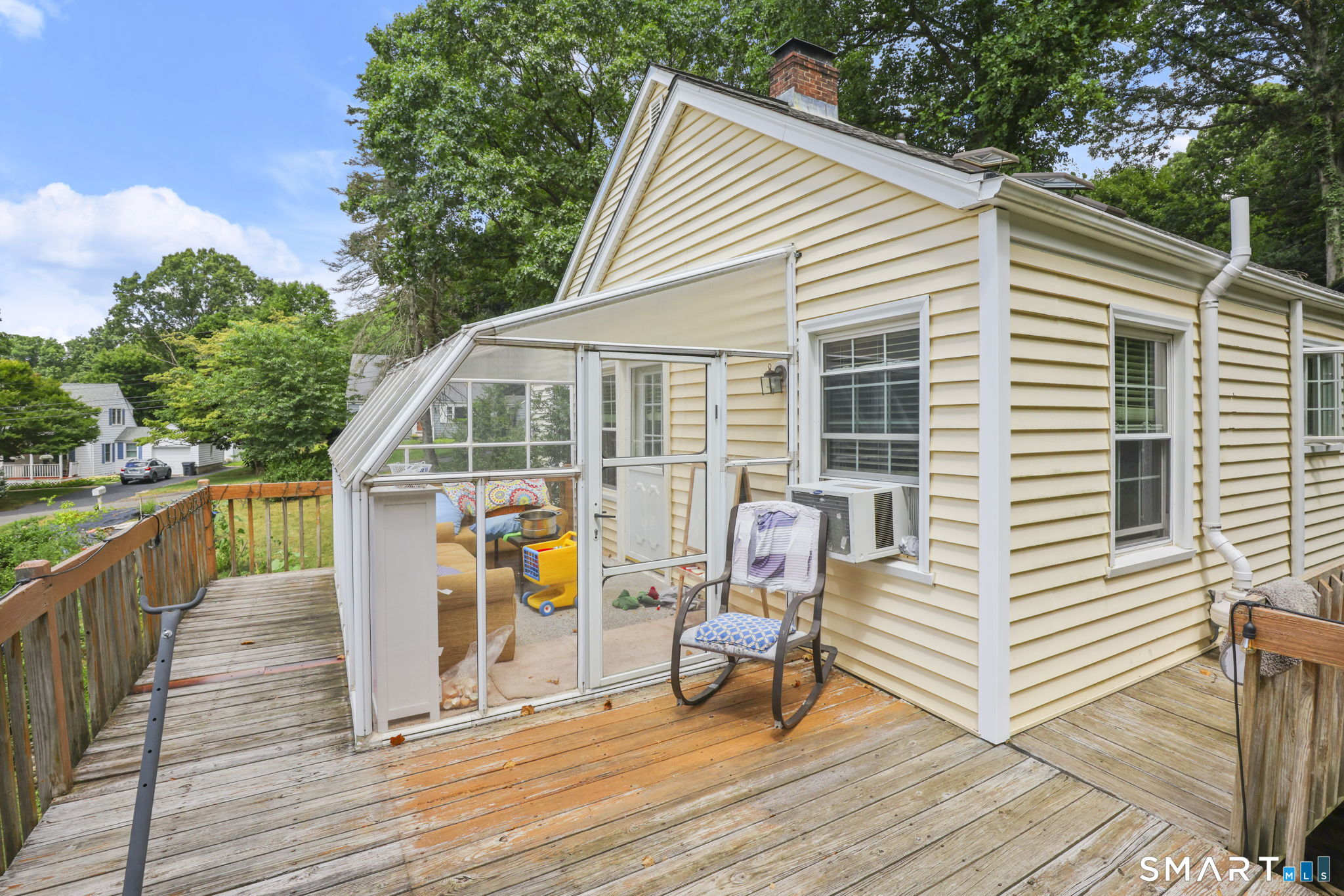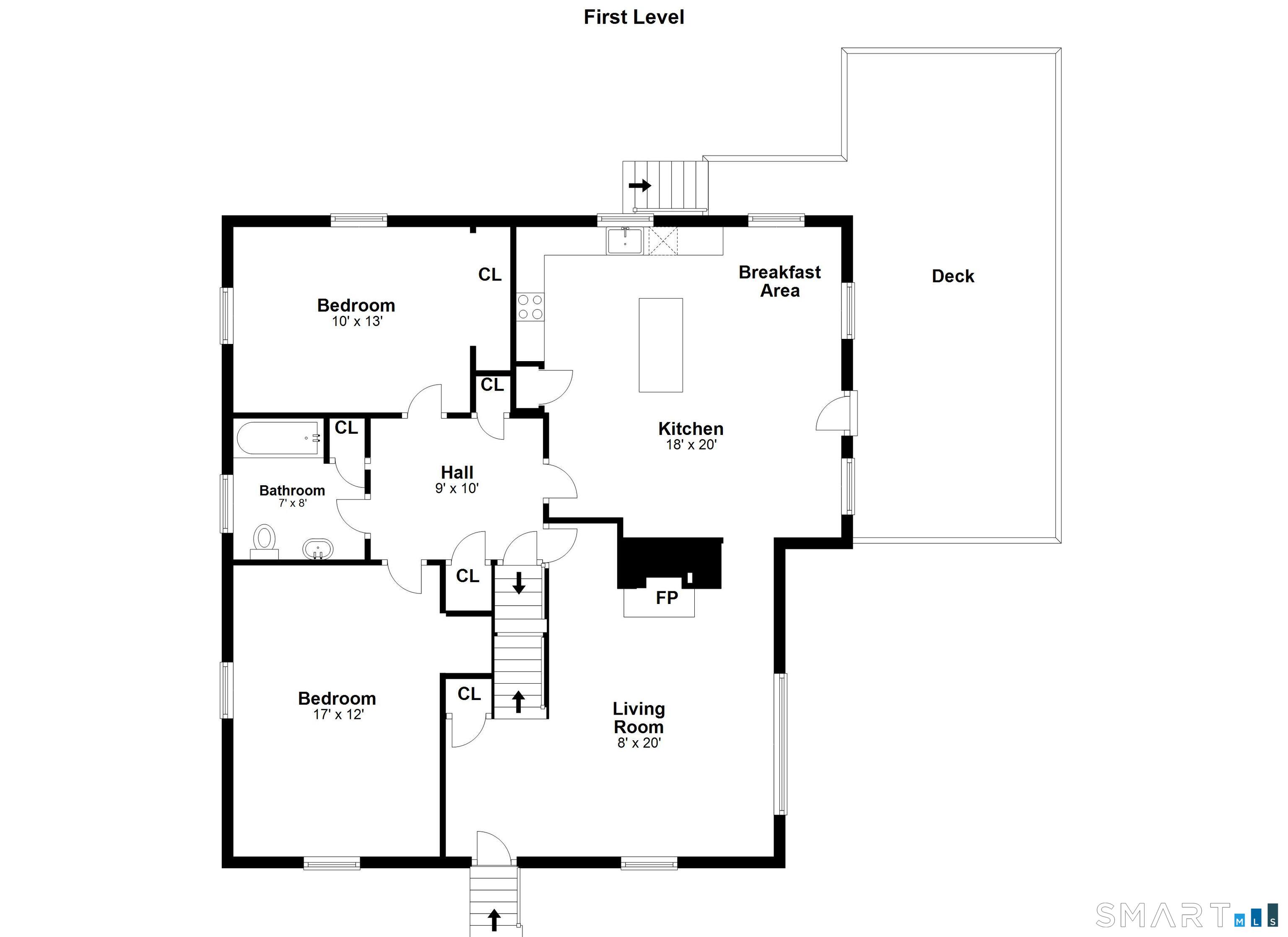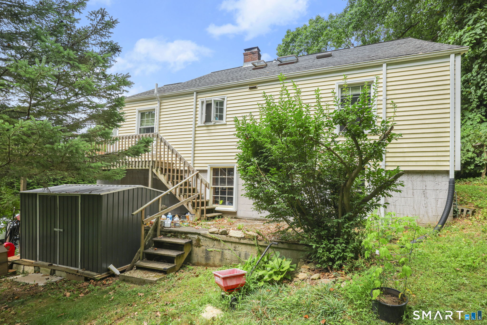 3-4 bedroom Cape located on a quiet Nichols cul-de-sac! This charming and spacious home offers a bright, open floor plan ideal for everyday living and entertaining. The exceptionally large eat-in kitchen, renovated approximately 8 years ago, features white shaker cabinetry, Caesarstone countertops, stainless steel appliances, tile flooring, a center island with seating, and a generous dining area. Because of the oversized kitchen, the formal dining room can easily serve as a 4th bedroom or first-floor office and includes a closet. The inviting living room offers hardwood floors, a cozy wood-burning fireplace, and a large picture window overlooking the private yard. The main level also includes two well-sized bedrooms and a full bath. Upstairs you'll find two additional bedrooms with wall to wall carpeting and a second full bath. Enjoy outdoor living on the large deck overlooking the . 49-acre level lot-perfect for relaxing or entertaining. Additional highlights include vinyl siding, newer windows, architectural roof, newer driveway and brick walkway, partially finished walk-out basement with storage, and a private setting. Conveniently located close to schools, parks, Pinewood Lake, shopping, restaurants, and major highways.