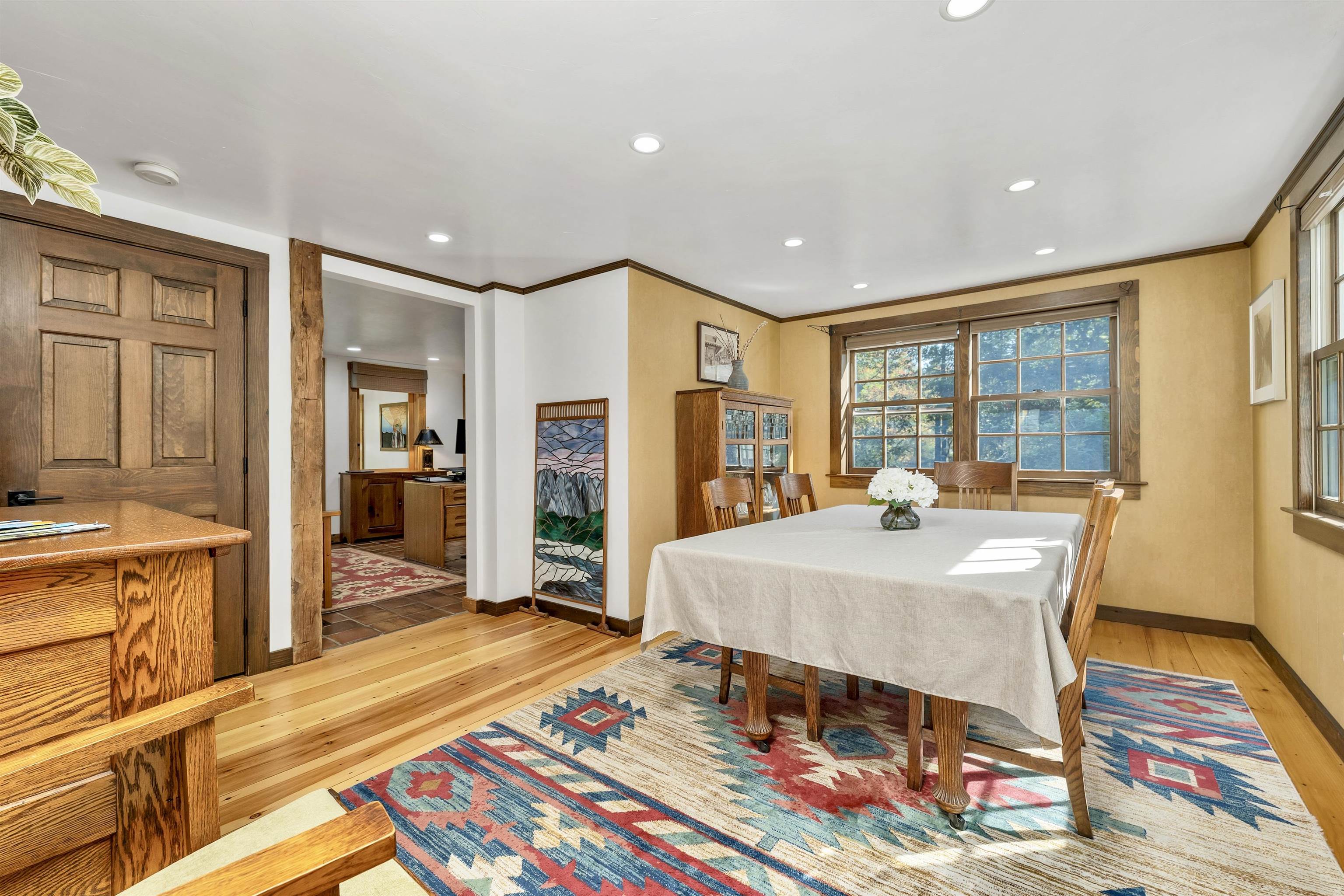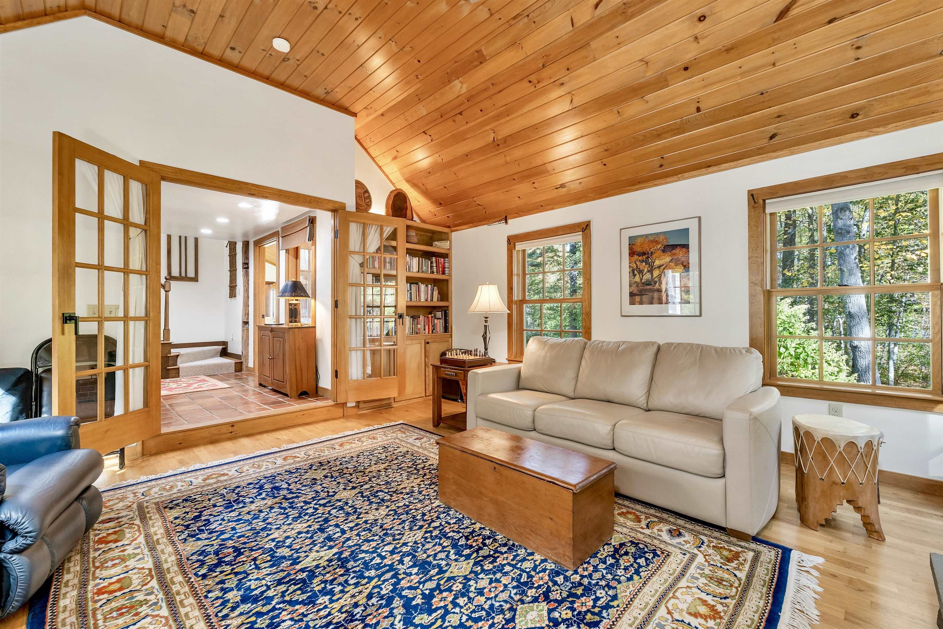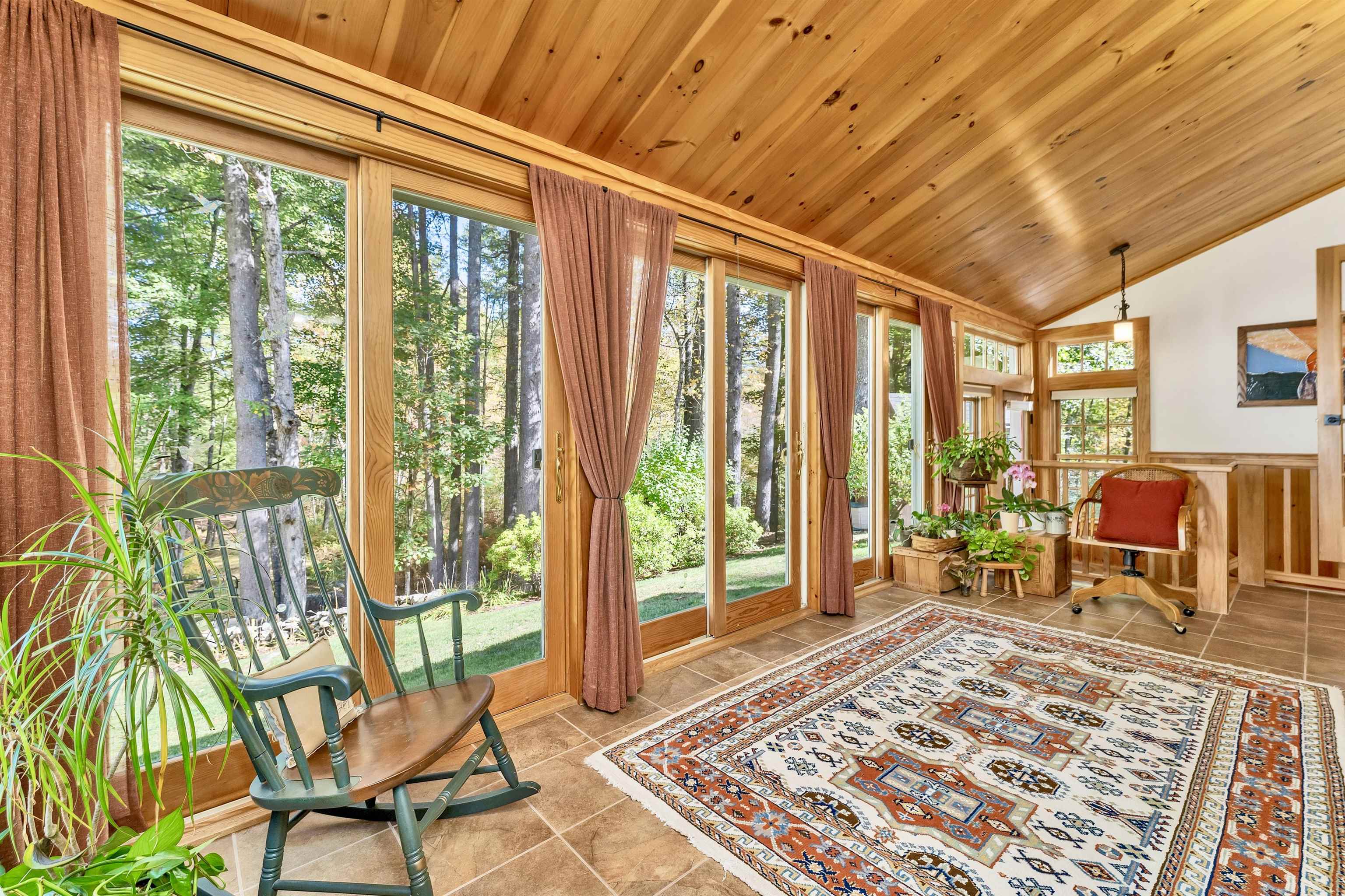 Tucked away on 6. 7 wooded acres in North Wolfeboro, this beautifully maintained 3-bedroom, 3-bath Cape offers privacy, character, and direct access to the Cotton Valley Rail Trail (a 12 mile multi-use rail-trail meandering along lakes, scenic wetlands and beaches). The home features over 2, 300 square feet of living space, highlighted by an inviting granite fireplace in the great room with a cathedral ceiling, a four-season sunroom, wide pine floors, and exposed beams that bring warmth and charm. The open concept kitchen and multiple living areas make it ideal for both everyday comfort and entertaining. A wood stove and radiant heating add cozy efficiency. Outdoor spaces are equally impressive, with stone walls, established landscaping, and a circular paved driveway. A detached two-car garage includes a finished and heated loft offering space for a studio, workshop, or storage. A private trail leads to a fully insulated “cabin in the woods, ” complete with windows and a wood stove—perfect as a retreat or creative workspace. An additional shed provides storage for wood and equipment. With approximately ¼ mile of frontage on the multi-use rail trail, you can step outside to walk, bike, ski, or snowmobile right from your property. Located just minutes from downtown Wolfeboro, Lake Winnipesaukee, and local schools, this home blends comfort and recreation in one of New Hampshire’s most sought-after towns.