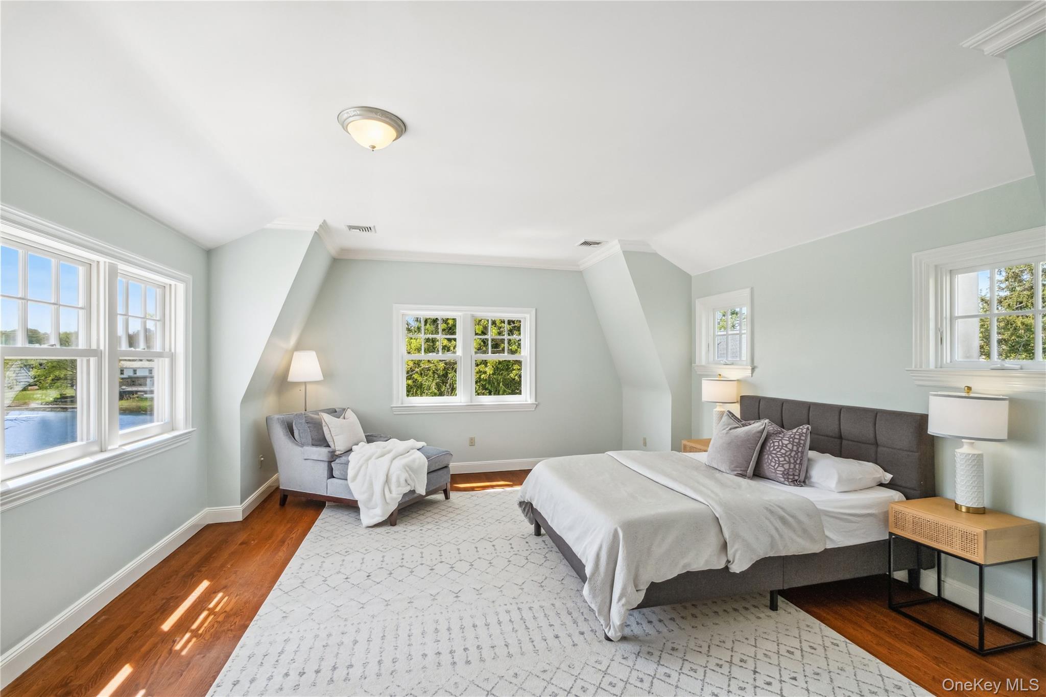Introducing one of Larchmont Manor’s most private and exclusive properties with 0. 73 acres of prime waterfront on Premium River. Beautifully tucked away on prestigious Pryer Lane this architecturally stunning Dutch Colonial is nestled high atop a sweeping level backyard with direct access to kayaking, fishing, and paddle-boarding. It’s a world of its own with breathtaking water views, spectacular sunsets, and total serenity – all just a short stroll to Manor Park and beach, Flint and Willow Parks, playgrounds and more, Village restaurants, shops and Metro-North. This spectacular Stoll & Stoll-designed like-new construction over 6, 700SF is thoughtfully oriented with multiple rooms opening through French doors to a fabulous entertainer’s patio. Inside is sunlit and bright with high ceilings and a smart flow that perfectly balances privacy and connection. At the heart of the home is a Great Room that incorporates an exquisite chef’s kitchen with sleek island, 2 homework stations, wet-bar area, and a family room with cozy fireplace. There’s a chic dining room with a 2-sided fireplace opening to the formal living room, a spacious office with built-ins, 2 powder rooms, a large laundry and a fitted mudroom with private entrance plus access to the attached 2-car garage. Upstairs offers 5 large bedrooms, 3 of which are ensuite and 2 that share a hall bath. The primary is pure bliss with 2 walk-in-closets and an adjoining second office/study commanding water views. This floor also boasts a spacious, bonus area (additional 487sf) over the garage! The walkout lower-level offers approx. 1, 500sf of living space - with a ground level guest bedroom, an updated full bathroom plus a super sized playroom with gym area with French doors to a covered patio and so much storage! A rare offering in coveted, seaside Larchmont Manor!