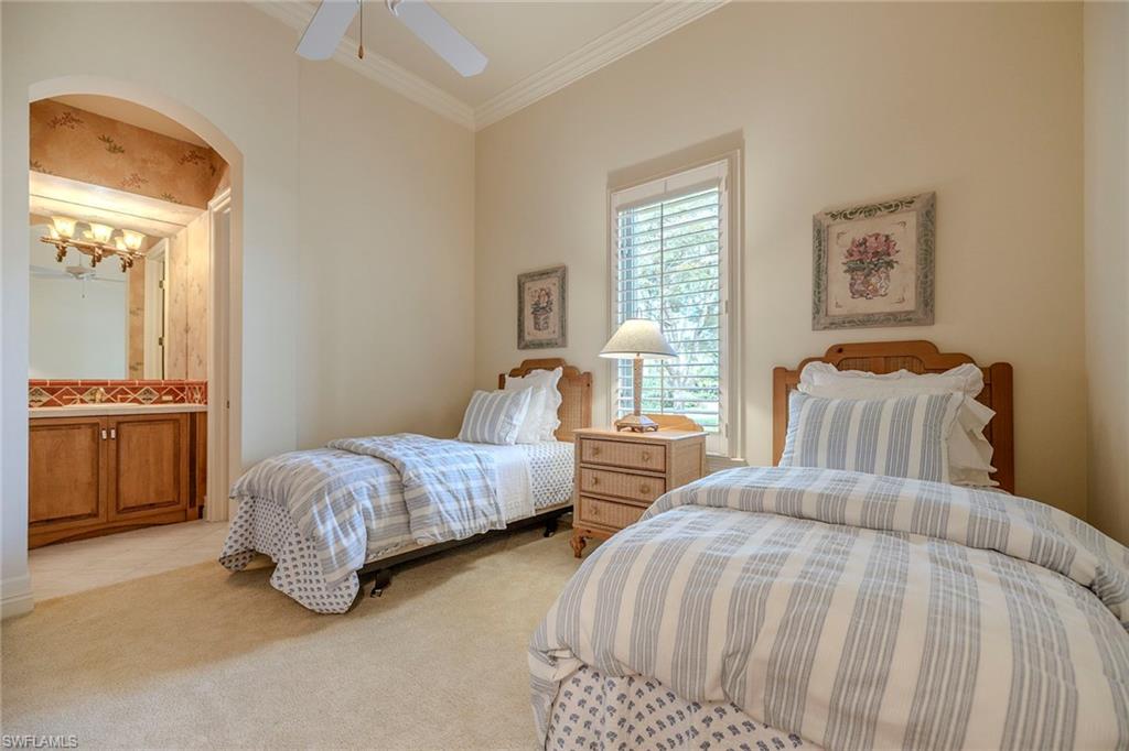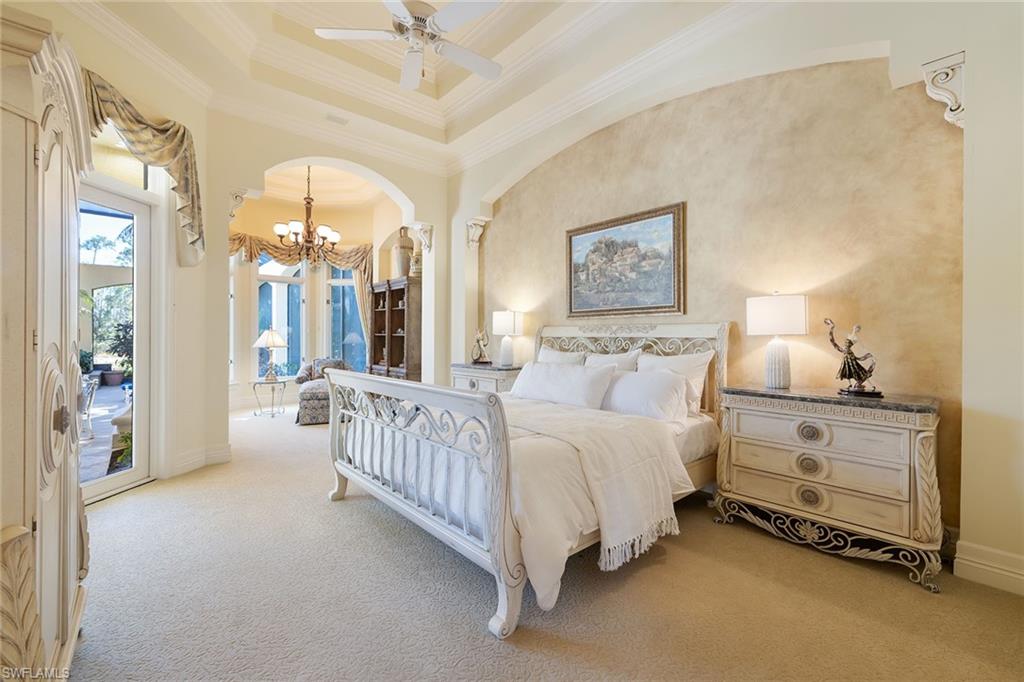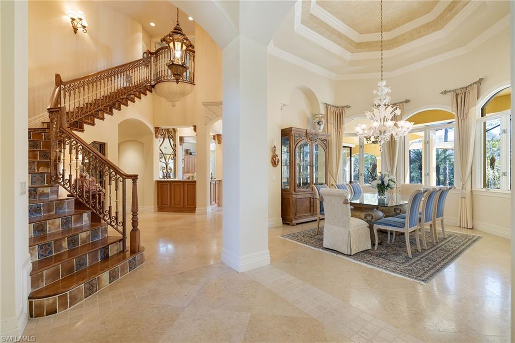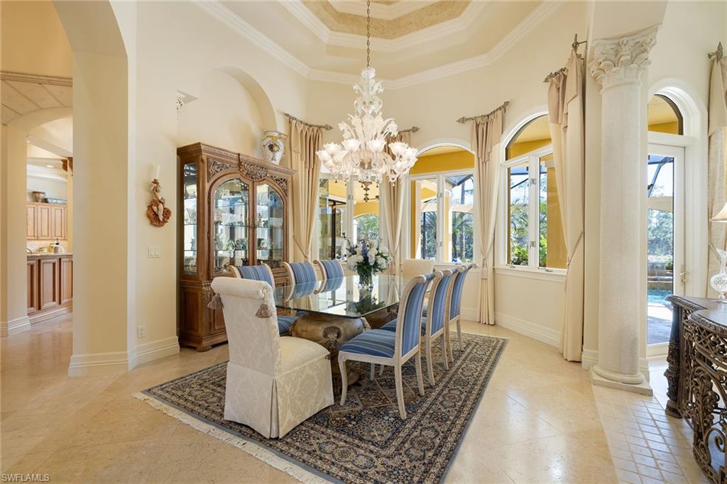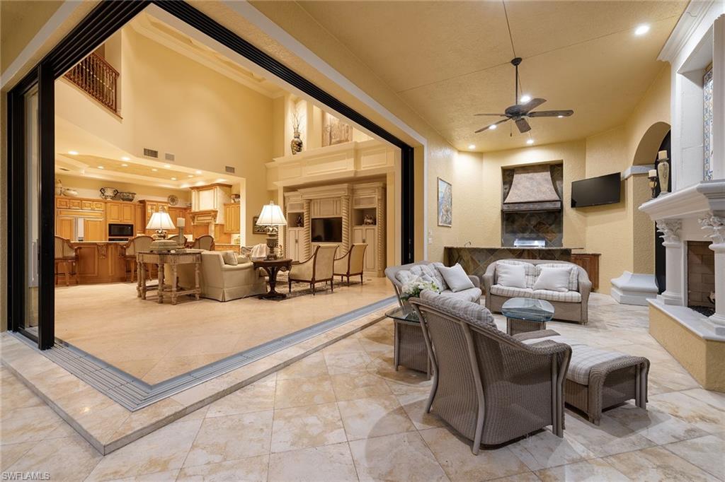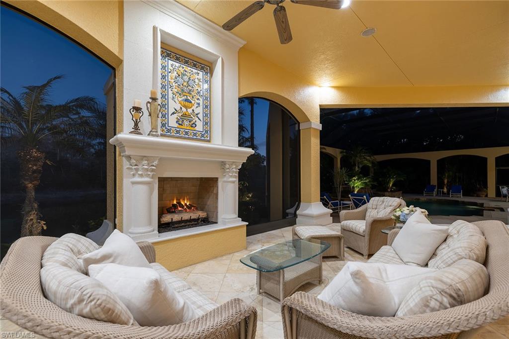 Set against sweeping southeastern views of water and preserve, this distinguished estate residence is thoughtfully designed for a life of elevated comfort and gracious entertaining. From the moment of arrival, the arched stained-wood entry door and transom windows introduce a sense of scale and architectural intention, while abundant natural light defines the home’s inviting interiors. Inside, stone floors and refined millwork guide you through expansive living spaces accented by coffered, tray and cove ceilings. Walls of glass, including zero-corner sliding doors and mitered windows, frame the landscape beyond, creating a seamless dialogue between indoor and outdoor living. Multiple fireplaces lend warmth and intimacy throughout the home, while custom built-ins add function and elegance. The kitchen serves as heart of the home, blending timeless finishes with professional-grade appliances, including a 48-inch paneled Sub-Zero refrigerator, gas cooktop, wall oven and custom hood. A generous island, walk-in pantry and thoughtfully designed wet bars on both levels ensure effortless entertaining, whether hosting intimate gatherings or larger celebrations. The primary suite offers a serene private retreat, complete with dual custom closets, a gracious sitting area with bay window, and a spa-inspired bath featuring multiple shower experiences, a soaking tub, bidet and tranquil fountain detail. Each additional bedroom is en suite, providing comfort and privacy for family and guests alike. Outdoor living is elevated to a resort experience, with a fireplace, outdoor kitchen, and a beautifully designed pool and spa featuring a gas heater, saltwater system and swim-up bar. A second-story balcony offers an additional vantage point from which to enjoy the surrounding views, while comprehensive storm protection provides peace of mind. A rare opportunity to experience architectural distinction, privacy and refined Florida living at its finest. In the prestigious Mediterra community, this exceptional residence offers access to world-class amenities and an uncompromising lifestyle in one of Naples sought-after settings. Enjoy your toes in the sand and golden sunsets at Mediterra's fully renovated private Beach Club along the Gulf. Imagine arriving to have your car valet-parked, and lounge chairs and umbrellas waiting for your arrival or set up upon your request. With 10, 000 square feet of space, the upper level offers indoor and alfresco dining, a full bar, swimming pool along with lockers and dressing areas for changing. Spend the day and enjoy dinner while watching the sunset. Coming soon, the new Sports and Lifestyle Center. In the award-winning community of Mediterra, where you can have it all with 36 holes of Tom Fazio championship golf, Har-Tru tennis courts, pickleball, bocce and a private beach club!