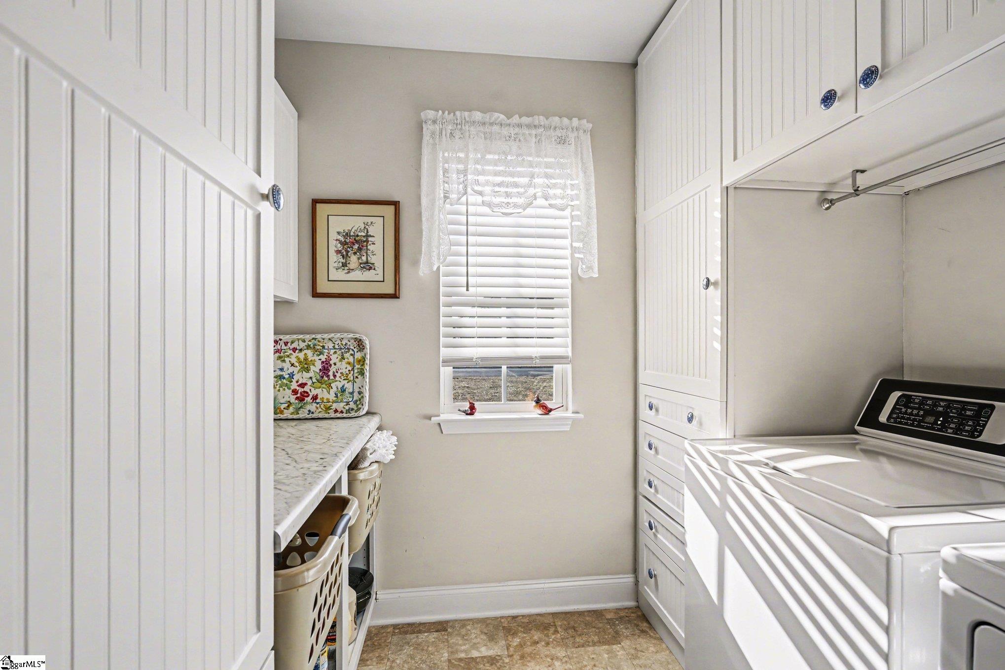 Built in 2017, this single-level home was designed for comfort, style, and easy living. Step inside to a bright open floor plan with a spacious living room, high ceilings, and engineered laminate (hardwood-look) flooring throughout (tile bathroom and vinyl laundry room flooring are the exceptions). The kitchen shines with a large island with sink, a new Bosch dishwasher (so quiet!) and the handiest specialty cabinet to house your KitchenAid mixer. A convection oven will help make your baked goods extra special, and a large, conveniently located pantry will help keep you organized. The laundry room steals the show with more built in storage (KraftMaid cabinetry) than you could dream possible. This room is deceptively sized and totally functional, as well as beautiful. The split-bedroom layout keeps the primary suite private, featuring a large walk-in closet full of custom built-ins, double vanity sinks in the bathroom, walk-in beautifully tiled shower, and sturdy grab-bars in the shower and on both sides of the toilet. The other two bedrooms are generously sized and share a bathroom in between. The home includes a spacious office/den near the front entrance with lots of natural light. Outside, enjoy a large property with 12 mature blueberry bushes, 4 young pecan trees, and a mature persimmon tree. The smaller of the 3-bay garage is wired with 2 extra 110V and 220V circuits. This 0. 94 acre lot contains a line of oak trees along the street, and a 20' flag pole with flag and overhead solar light. A quiet, beautiful neighborhood, and a spacious home that delivers both beauty and comfort.