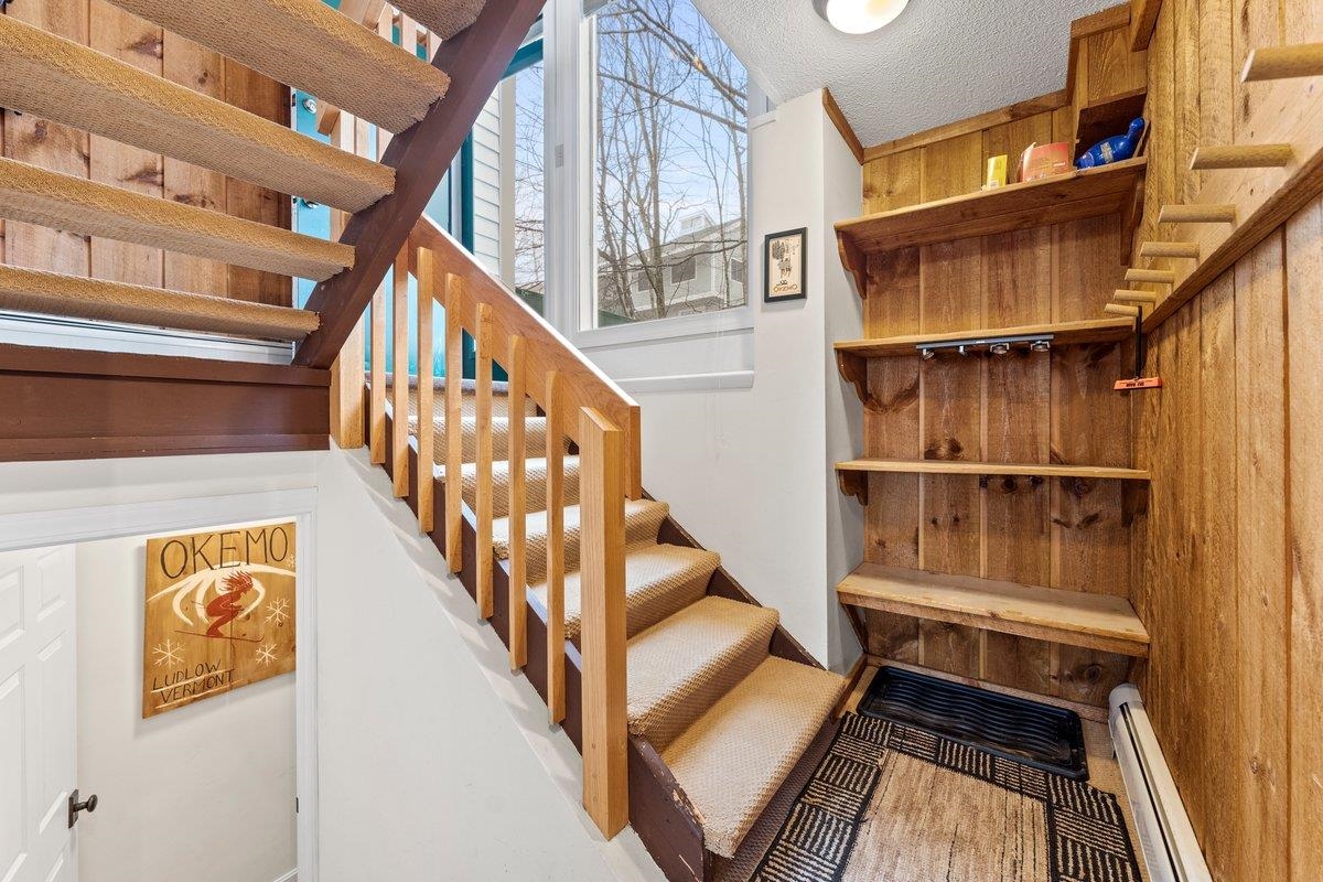 Excellent value priced to sell - Prime location, ski-on, ski-off with direct access to Sachem Trail, with just a few steps from your door, and you'll be on the slopes! This is a bright and sunny condo featuring 3 bedrooms, 2. 5 bathrooms, and a loft. The living and dining area features a cathedral ceiling, a wood-burning fireplace, and a deck offering a long-distance view. Recent updates include kitchen appliances and countertops. Enjoy this end unit with 3 levels of living space with no one living above or below you. Just minutes away from the Fox Run Golf course, a championship 18-hole course. The Okemo Trailside community features a heated swimming pool and two tennis courts for your summertime enjoyment. Guest comments include "could not beat the location for a ski weekend. We were just steps to Sachem Trail. It easily accommodated 2 families, " and "just can't beat skiing home for a quick lunch and hoping right back on the trails!"