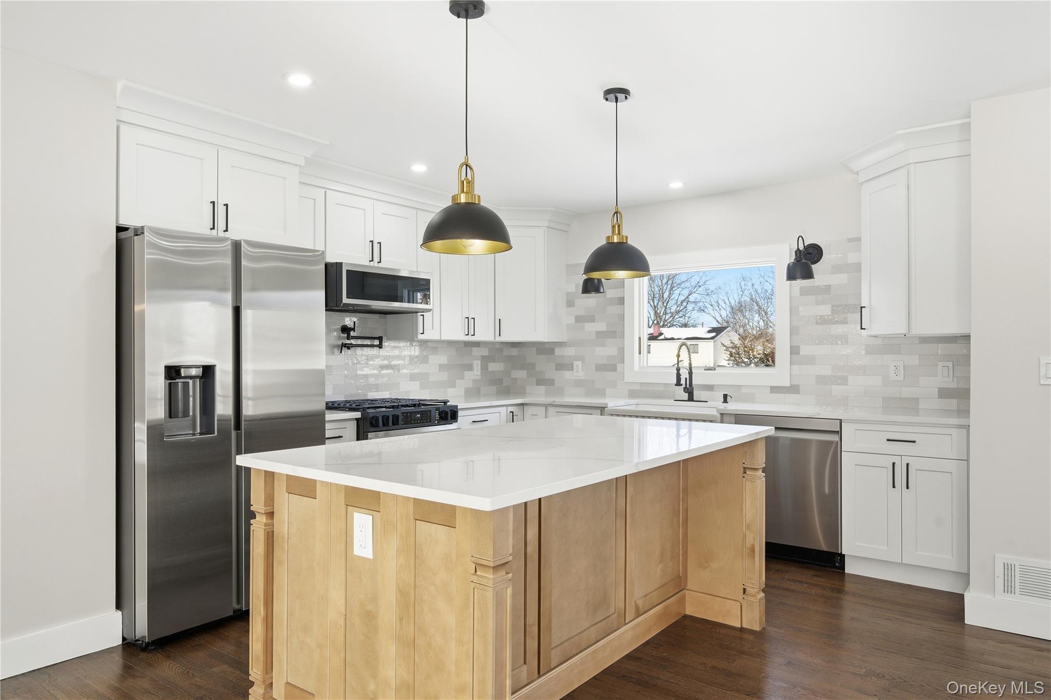 Completely renovated from top to bottom, this stunning 4-bedroom, 2-bath home offers modern living at its finest. The open-concept main level features refinished hardwood floors, a designer kitchen with quartz counters, a large island, and stainless steel appliances. The master bedroom has an en-suite bath, plus two additional bedrooms with updated lighting. A private lower-level guest room offers its own space, alongside a cozy fireplace family room and wet bar. All-new siding, roof, windows, insulation, electrical, plumbing, and driveway. Gas heat and central air ensure year-round comfort. Move right in and enjoy!