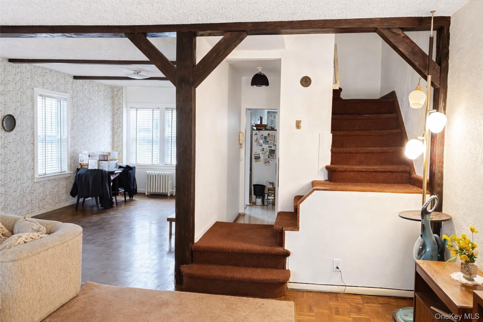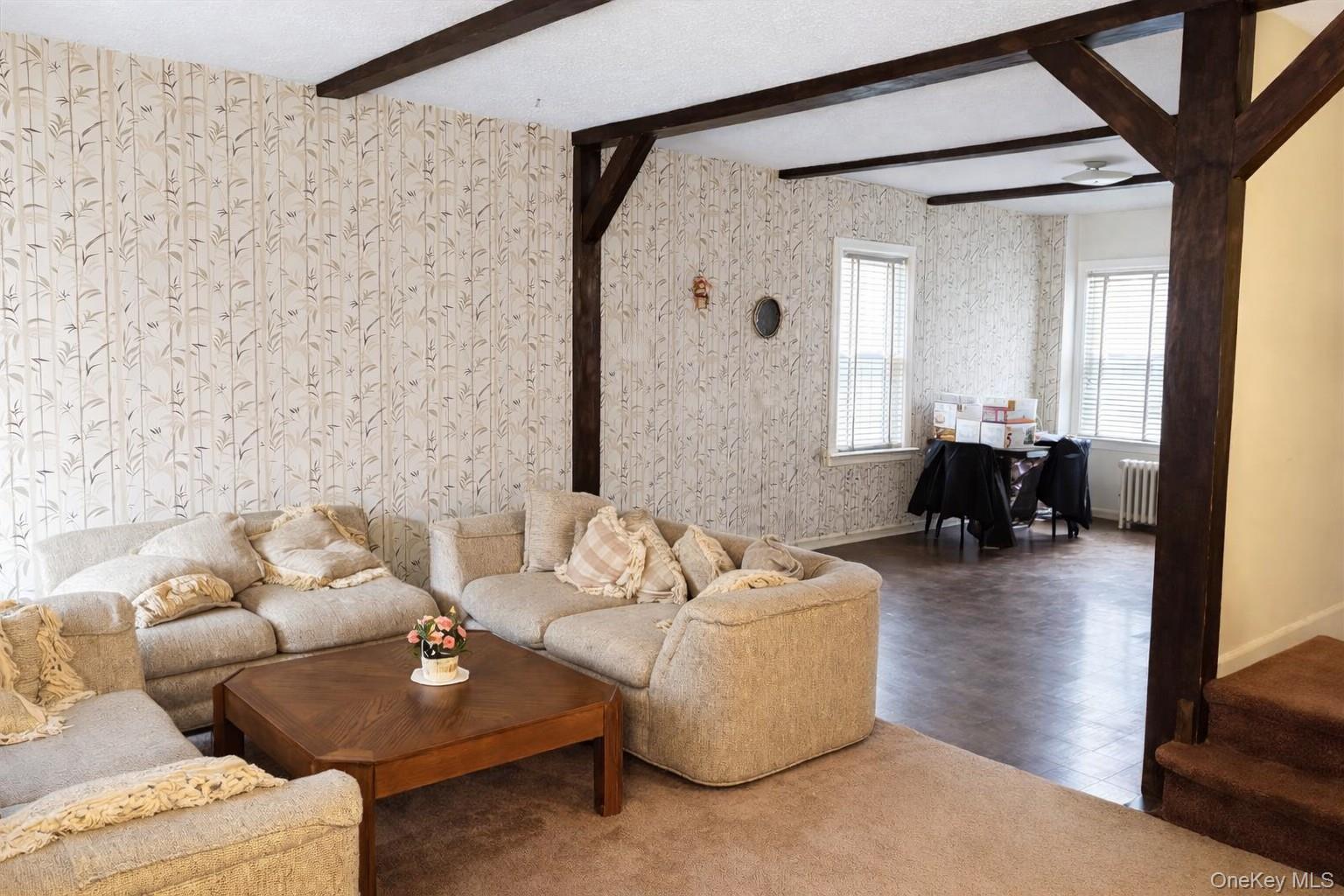 Welcome to this charming one-family semi-detached Tudor in the highly sought-after neighborhood of Rego Park. Full of character and timeless appeal, this home beautifully blends classic architectural details with generous living space. The residence features three spacious bedrooms, 1. 5 bathrooms, a huge living room, a formal dining area, and a well-appointed kitchen. With a building size of 20x47, this home offers an expansive layout that provides comfort, functionality, and flexibility to accommodate all your needs. Tudor-style enthusiasts will fall in love with the many original details throughout, including original hardwood floors, stunning wood beam ceilings, and an eye-catching mid-century fireplace. Every corner of this home reflects craftsmanship and charm. Adding incredible value is the amazing accessory apartment with its own separate entrance—perfect for extended family or guests. A private garage completes this exceptional property. Ideally located in vibrant Rego Park, close to shopping, dining, transportation, and parks, this home offers the perfect combination of space, character, and convenience. A rare opportunity to own a true Tudor gem in one of Queens’ most desirable neighborhoods.