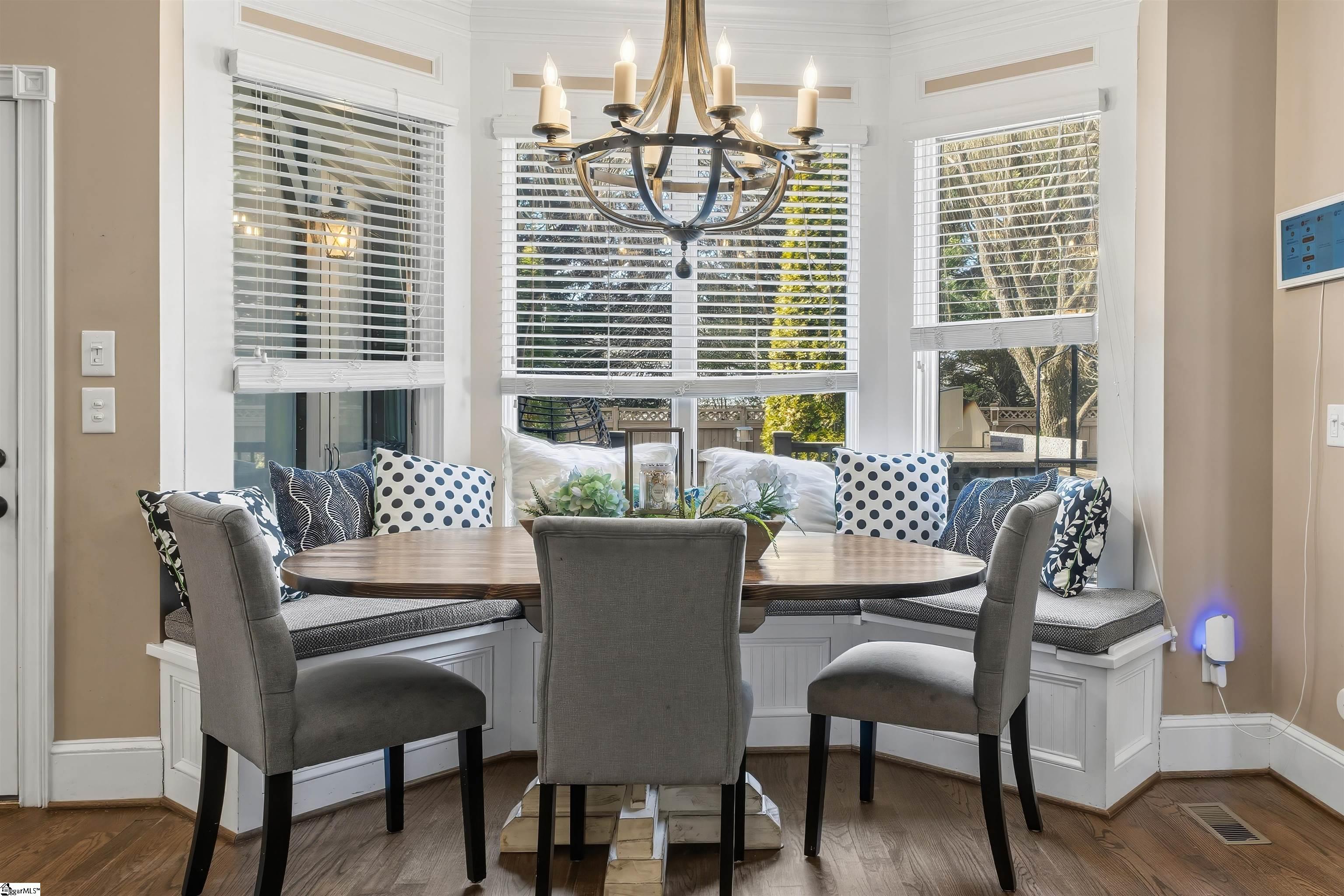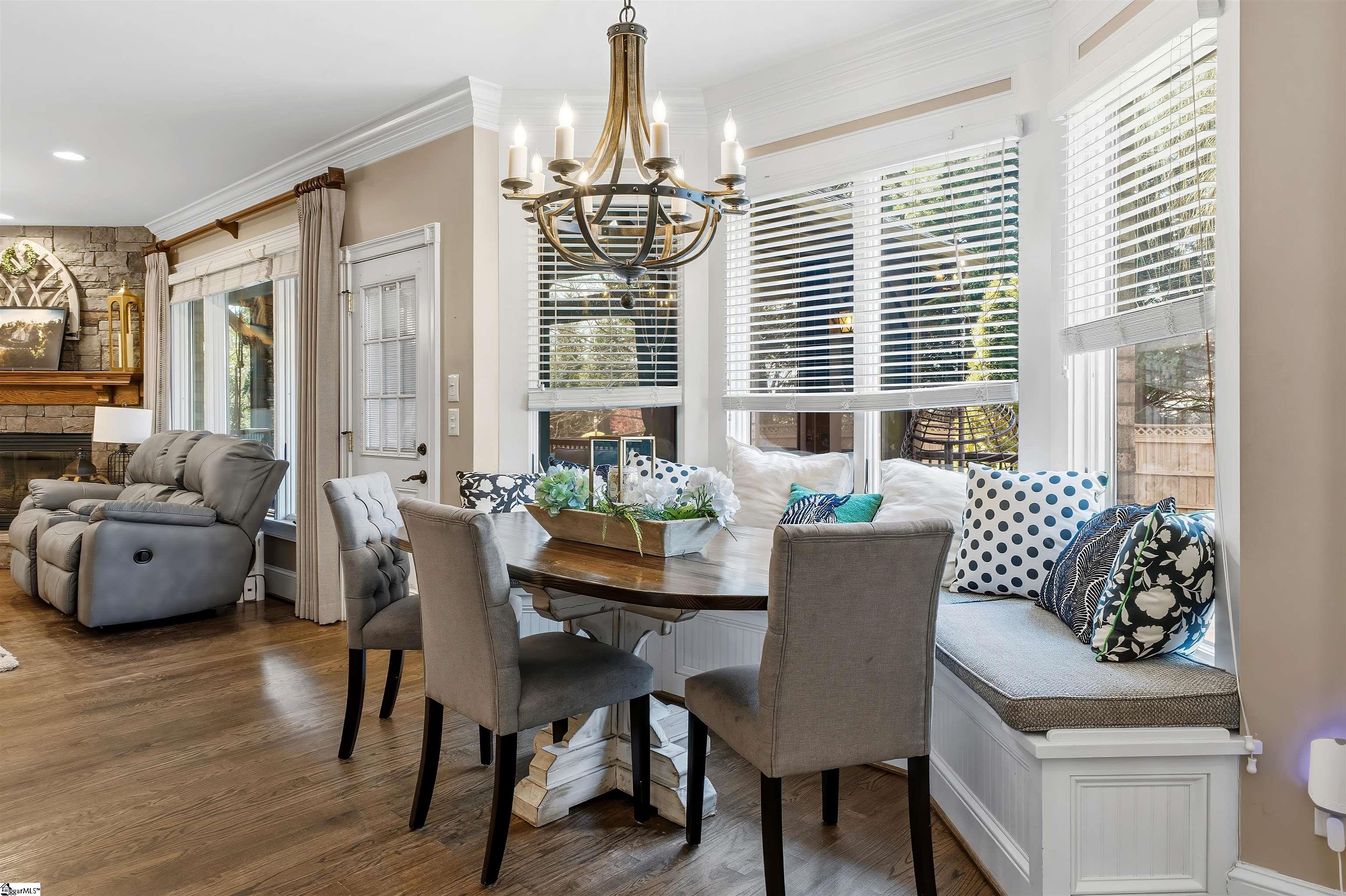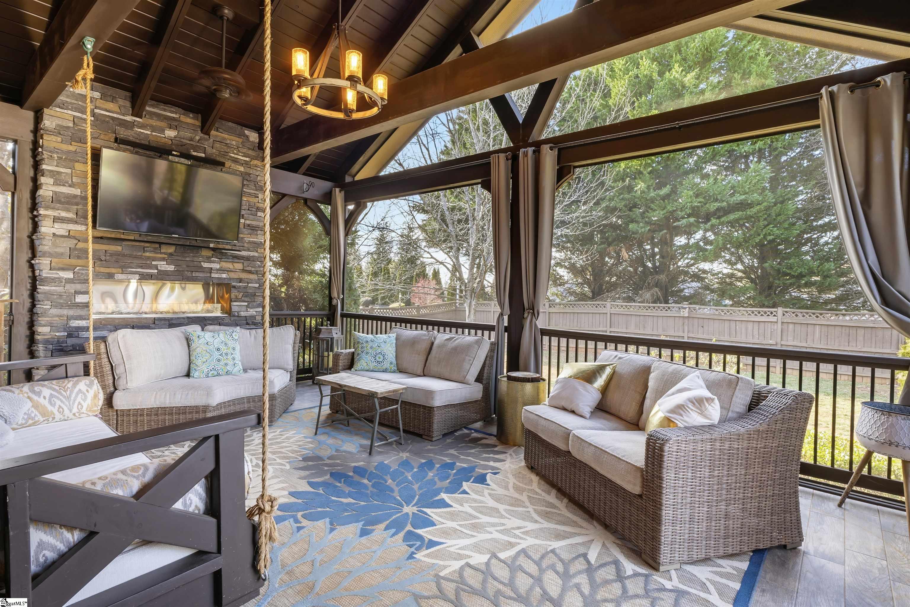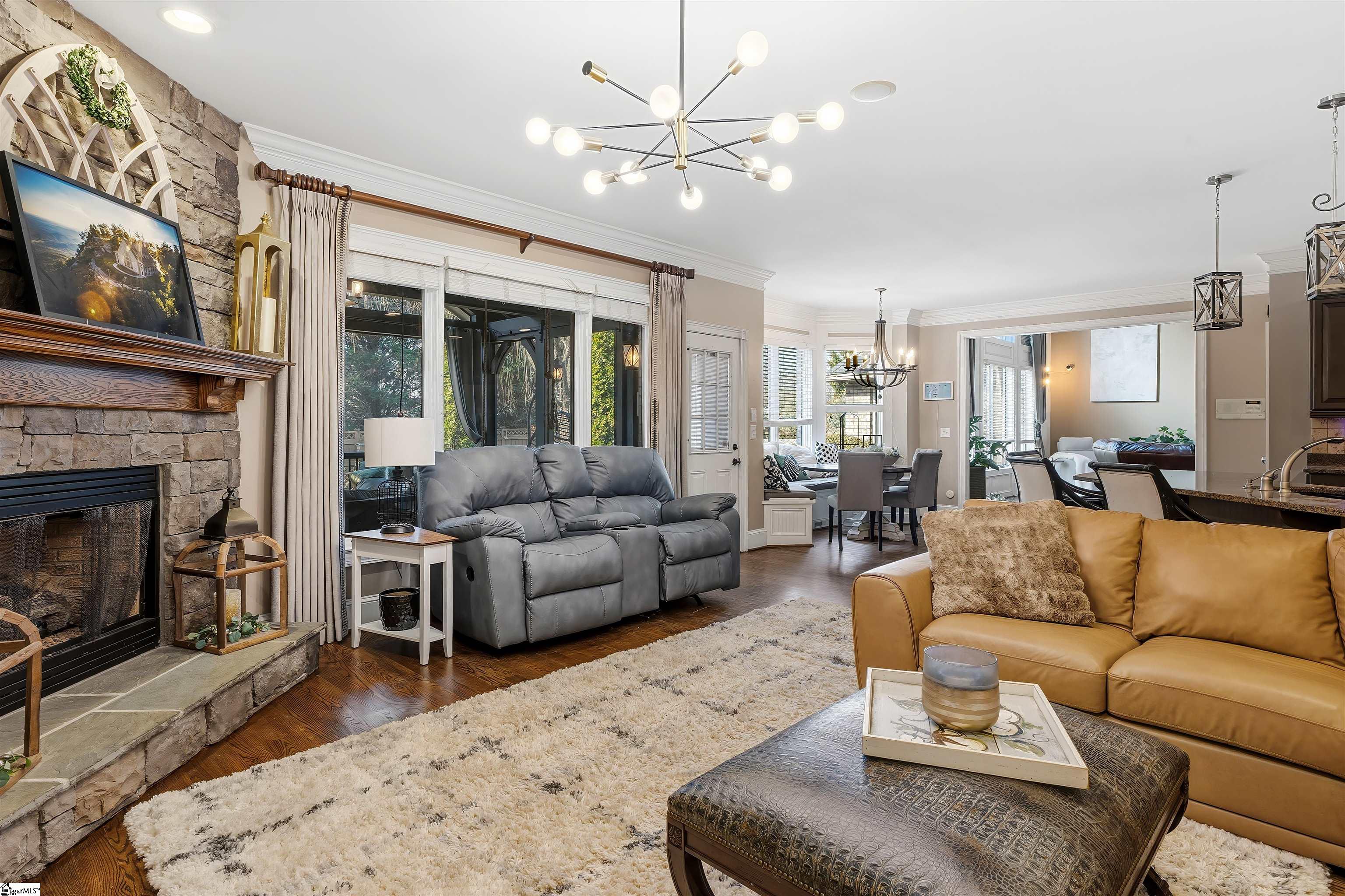 BACK ON THE MARKET DUE TO NO FAULT OF THE SELLER! Welcome to 24 Appian Circle in the prestigious gated community of The Columns at Roper Mountain. This exceptional home blends timeless architecture with thoughtful design and outstanding outdoor living. As you arrive via the circular driveway, you’re welcomed by glowing gas lanterns and a striking stone-and-brick exterior that sets the tone for what’s inside. Step through the front door and immediately notice soaring cathedral ceilings, rich hardwood floors, and abundant natural light filling the grand two-story living room. The open-concept kitchen offers generous workspace, a charming built-in bench seat, and flows seamlessly into the keeping room—creating the ideal setting for both entertaining and everyday living. Just beyond, the spacious dining room provides an elegant space for hosting gatherings. Outdoor living is equally impressive. Enjoy the screened-in porch with a fireplace overlooking the stone patio featuring a built-in natural gas grill with dual-function capabilities. The flat lot is beautifully landscaped and fully enclosed with a six-foot privacy fence, offering a private setting perfect for both lively gatherings and peaceful evenings at home. The main level also includes a private office with French doors and a spacious primary suite complete with a large walk-in closet and well-appointed bath. Upstairs, you’ll find three additional bedrooms and a versatile flex space. The third floor provides even more flexibility—ideal for a bonus room, guest suite, home office, or additional bedroom. Complete with a three-car garage, circular driveway with additional parking pad, new first-floor HVAC system, newer roof, and award winning school district, this home offers space, comfort, and location in one of the Eastside’s most sought-after communities. Schedule your private showing today.
