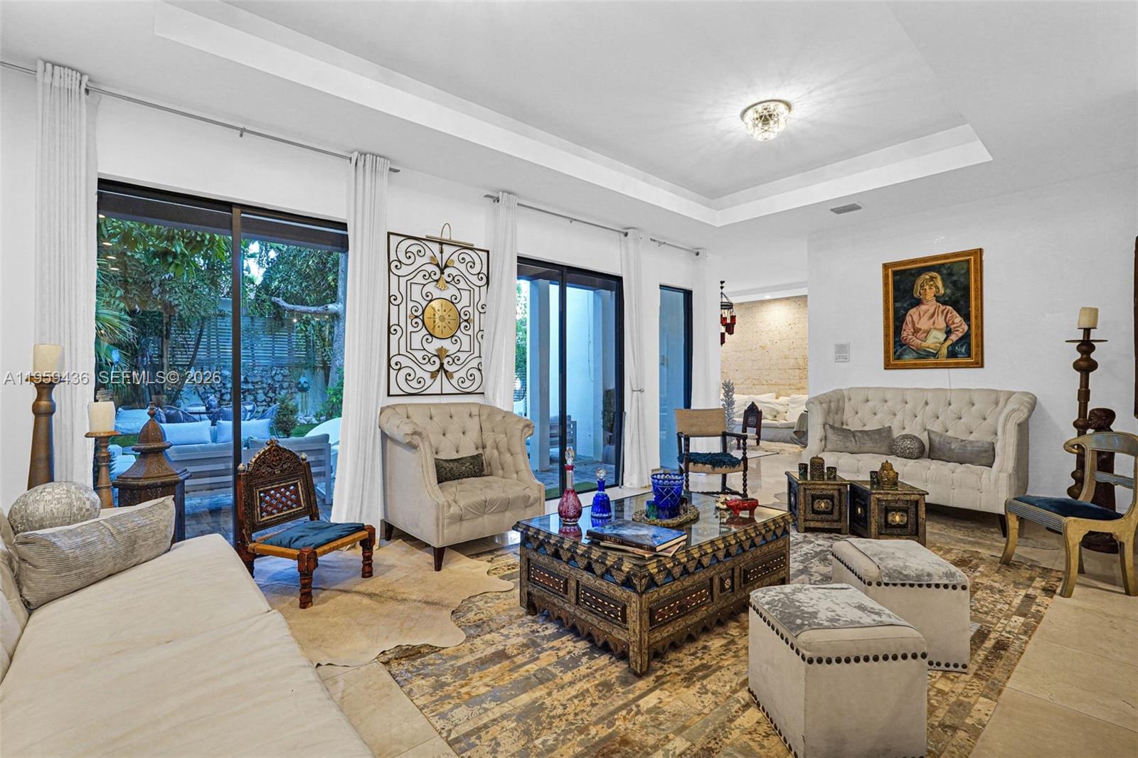 At $744/Sq-Ft, given the 4, 433 total Sq-Ft, as per the Miami Dade's Property Appraiser, this mini-mansion is one of the LOWEST PRICED properties per Sq-Ft in South Coconut Grove. Spectacular & elegant, 20' ceilings. Walking distance to Coco-Walk village, restaurants, shopping and prestigious schools such as Ransom, Carrolton, St. Stephen's, Plymouth, St. Hugh. Stunning beautiful banyan tree canopy adorns the front of the home. Crema Marfil marble floors throughout. Impressive, conversation piece, Indonesian stove hood, new marblelite counter tops, over-sized Sub-Zero refrigerator & freezer(separate units), Wolf gas stove oven & microwave, practically new Viking dishwasher, U-Line ice maker & wine cooler. Very private & secured with gorgeous aluminum gate & wood fence all the way around the property. New pavers, & artificial grass recently installed. Coral rock fountain for a serene backyard & plenty of space for a pool. Sauna. Plenty of parking area that can accommodate 5 cars inside the gate and another 5 on the outside of the front gate. . . . great for entertainment and gatherings!