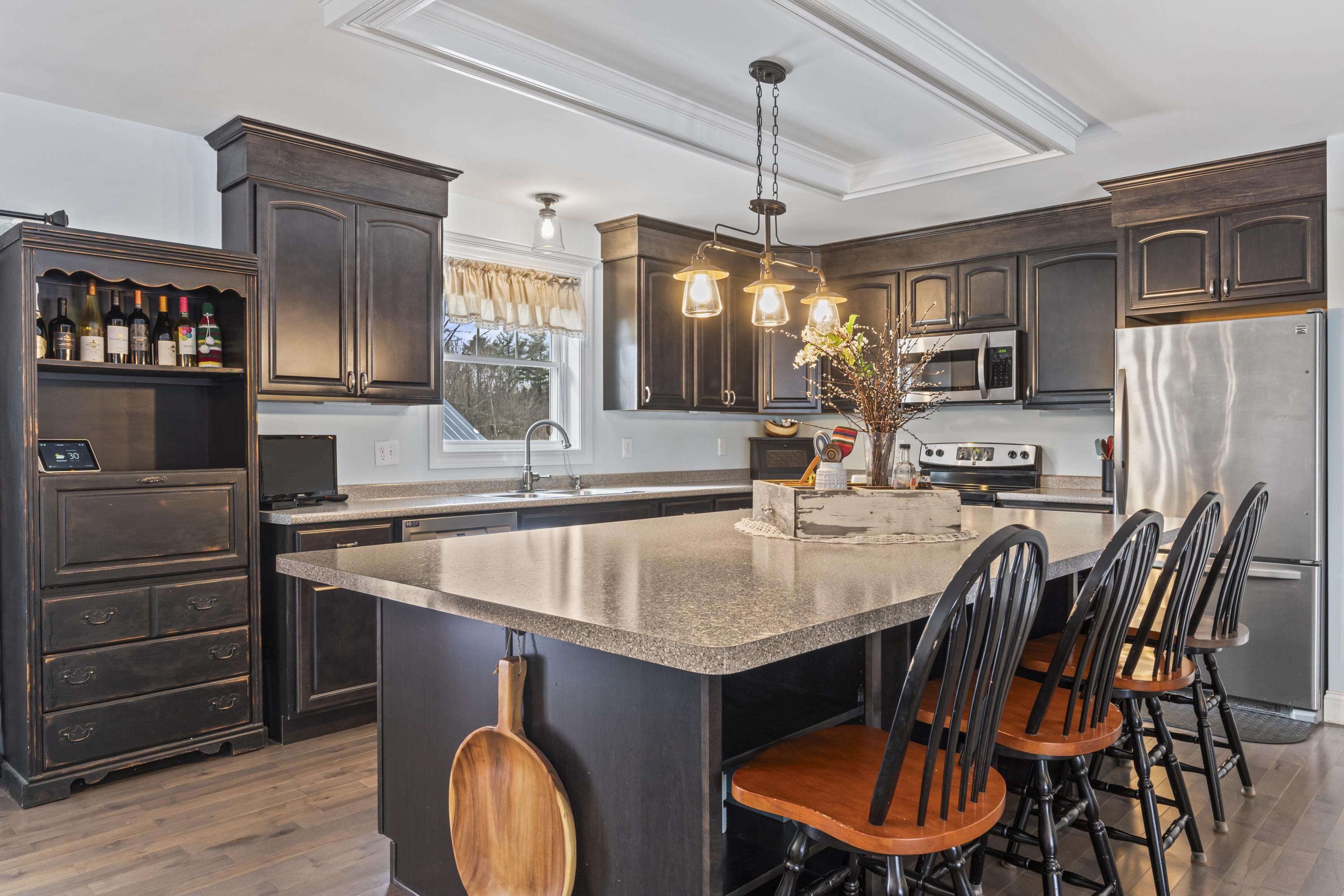 Have you been waiting for a wonderful turn-key home with an attached in-law apartment ALL ON ONE LEVEL?? Located on a private acre plus lot in the sweet town of Rollinsford, minutes to Dover, Somersworth and South Berwick, this impeccably maintained home is brimming with amenities! Custom-designed in 2016, this home offers a dream floorplan. The 9 x 5 island anchors the kitchen with cabinets on one side and shelves on the other, 4 bar stools. A cozy propane fireplace with handsome built-ins can be enjoyed from several vantage points! The massive primary bedroom has room enough for a desk, and boasts a wonderfully appointed bath and walk-in closet. There are 2 more bedrooms and another bath on the 1st floor. For game night, the crowd can gather in the 850 SF finished room with projector, bar and a convenient half bath. There is PLENTY of additional storage room with built-in racks for all your bins. Propane provides heat and AC. An on-demand generator serves both house and apartment, while 32 solar panels keep your electric bills low. When you enter from the garage, the mudroom greets you with a large built-in bench and storage cubbies. The apartment can be accessed from outside or through the 3 garages and has a great kitchen with pantry, open living-dining area, nice bedroom with walk-in closet and a bath with walk-in shower with seat & grab bars and full size laundry. Luxury vinyl plank flooring throughout. Heat & cooling by mini-split as well as back up BB electric heat. Step out onto the enclosed porch overlooking the pool with a large deck and a covered seating area. Enjoy the raised bed garden and family & friends gathering around the firepit. Plenty of paved parking. Large workshop with a 6’ garage door is located under the apartment and provides additional storage and a stove holding 100 lbs of pellets. Properties like this seldom reach the market!!! NOTE: GPS IS WRONG!! House is on Clement Road, not Oldenburg Lane. Seller is related to listing agent.