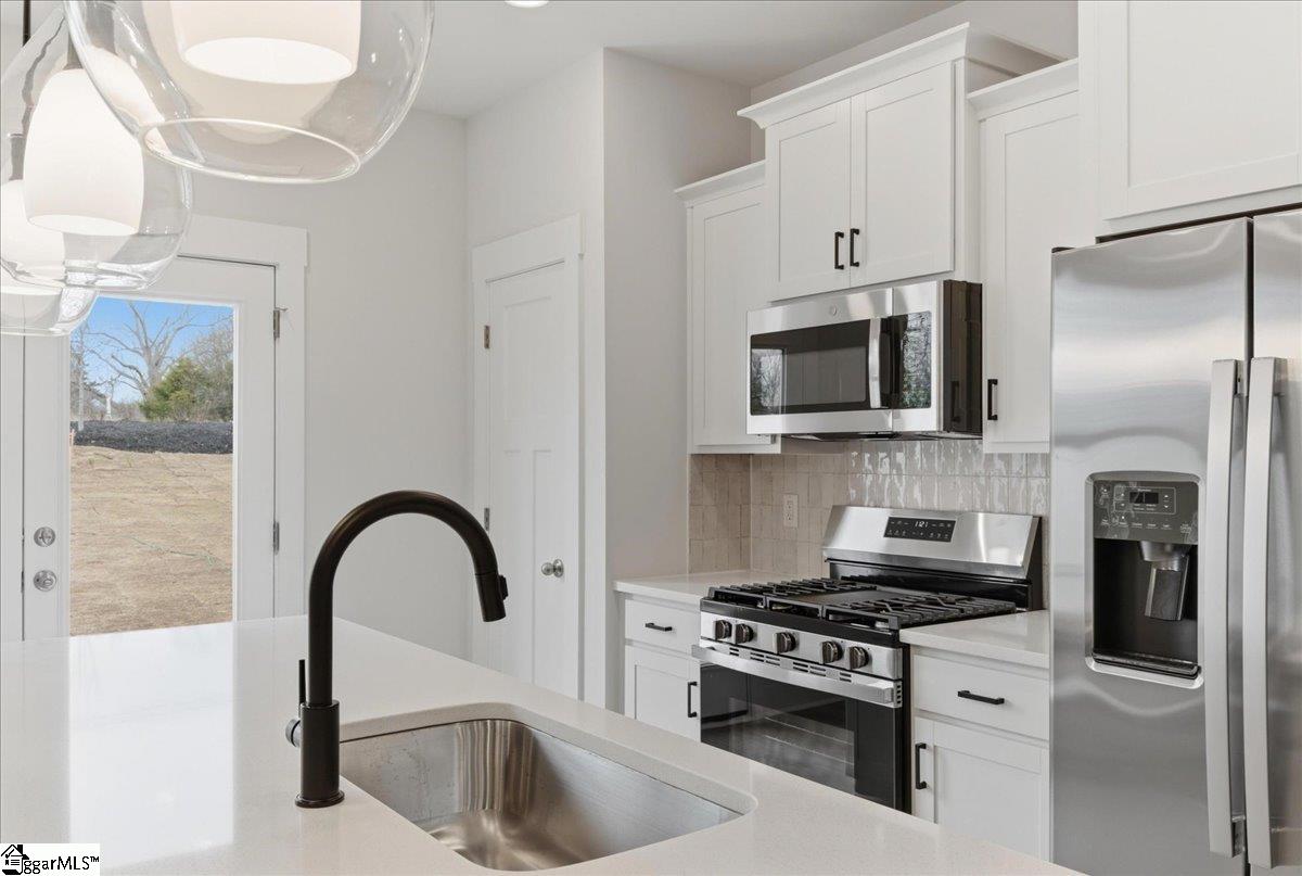 Home is Move in Ready! Welcome to Silo Ridge! The most versatile townhome living off Highway 81, just 5 minutes from I-85 for effortless everyday convenience. SIMPLIFY YOUR MOVE! All homes feature the move-in package boasting a refrigerator, washer, dryer, dishwasher, microwave, in-sink disposal and white faux wood blinds. With 1, 600 sq ft across two levels, this stylish modern home offers a welcoming foyer leading into a light-filled open floor plan. The kitchen centers on a large island and connects seamlessly to the living and dining areas—perfect for entertaining. Features of the kitchen include white cabinetry, Quartz countertops, tiled backsplash, and stainless steel appliances including a gas range/oven and refrigerator! The patio off the kitchen allows for outdoor living and also offers extra storage in the outdoor closet. Upstsairs you will find 3 generous bedrooms and 2 baths, including a luxurious Primary suite with walk-incloset and spa-like bath with double sinks and large step in shower with glass door. Practical touches include upstairs laundry with washer/dryer included, linen storage, and thoughtful split bedroom design. Blinds are also included throughout the home! The 1 car garage and double parking pad give a convenient and versatile combination for car storage and parking. Smart home technology, energy-efficient design, and a dedicated local warranty team ensure long-term comfort and convenience. Discover a lifestyle that blends comfort and convenience. Premier location just off HWY 81, minutes away from shopping, restaurants, and entertainment opportunities. Only 2 miles from the sought after T. L. Hanna High School and less than 15 minutes from Anderson University and the Downtown Anderson area. Easy access to the entire upstate with I-85 under 3 miles away! With low maintenance living and the notable surrounding area Silo Ridge is an exceptional community in a premier location. Come by today for your personal tour and make Silo Ridge your new home!