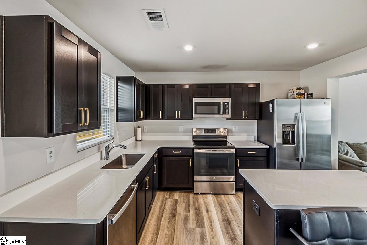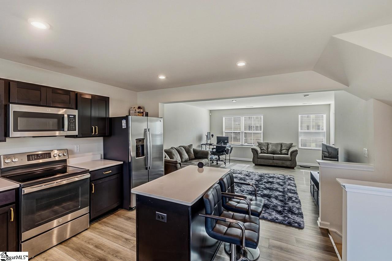 SELLER OFFERING ASSISTANCE with an INTEREST RATE BUY-DOWN for qualified buyers with a preferred lender! Welcome home to this beautifully maintained 3-bedroom, 2. 5-bath townhome offering approximately 1, 500 square feet of thoughtfully designed living space. Built for easy living, this three-level floor plan combines functionality, style, and low-maintenance convenience. The main living level features an open-concept layout with durable luxury flooring, abundant natural light, and a spacious living room that flows seamlessly into the kitchen and dining area. The kitchen is equipped with granite countertops, a center island with bar seating, stainless steel appliances, sleek dark cabinetry, and ample counter space—perfect for entertaining or everyday living. Upstairs, you’ll find a comfortable primary suite with a private bath and walk-in closet. Two additional bedrooms, a full hall bath, and convenient upper-level laundry complete the third floor. The entry-level includes a foyer, an attached one-car garage, and additional storage space—ideal for seasonal items or a hobby space. Enjoy the ease of townhome living with exterior maintenance included, while still having your own driveway and garage. Conveniently located near shopping, dining, and major roadways, this home offers both comfort and accessibility.