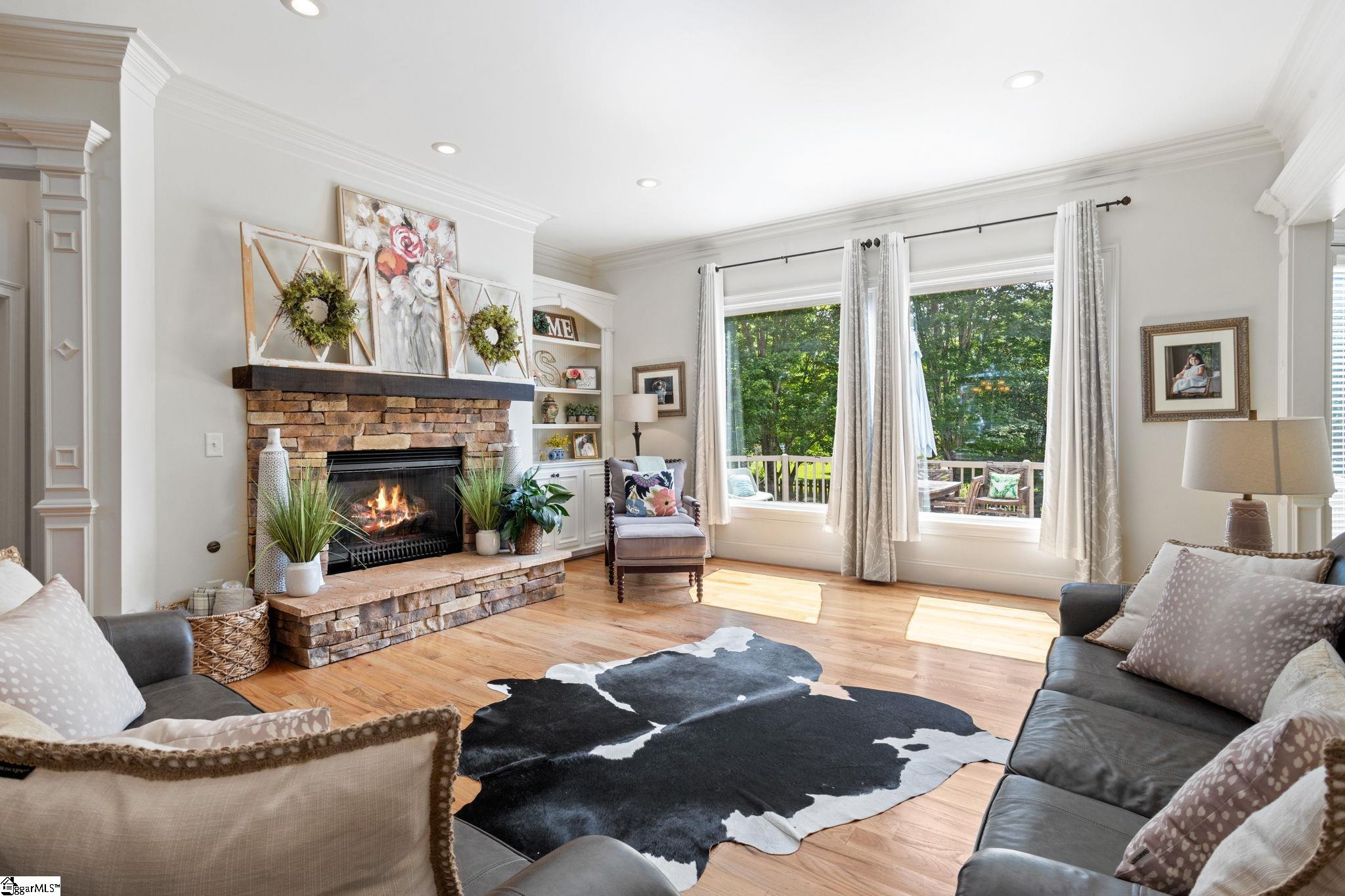 Near the Airport! New Water Heater (2025)! New Deck (2025)! New HVAC (2024)! New Roof (2023)! Experience Refined Living at 1 Riverstone Way, Greer, SC. Nestled in the prestigious Mahaffey Plantation within the sought-after Five Forks area, this splendid residence blends elegance, comfort, and functionality. Step into the impressive two-story foyer and be welcomed by an expansive open floor plan, featuring 10-foot ceilings, gleaming hardwood floors, and custom stone fireplaces. The heart of the home is the gourmet kitchen, complete with granite countertops, a double oven (2024), gas cooktop, and a wraparound bar—perfect for entertaining! Retreat to the first-floor primary suite, where bay windows invite natural light and tranquility. Upstairs, discover spacious bedrooms, a dedicated office (potentially a fifth bedroom - closet framing in place in the walkout attic!), and a bonus room, all designed for modern living. The great room, with cathedral ceilings, offers a stunning space to relax or host guests. Set on a serene 0. 58-acre lot with pastoral views, this home is just minutes from award-winning Oakview Elementary, fine dining, shopping, and GSP International Airport. Agent is owner.