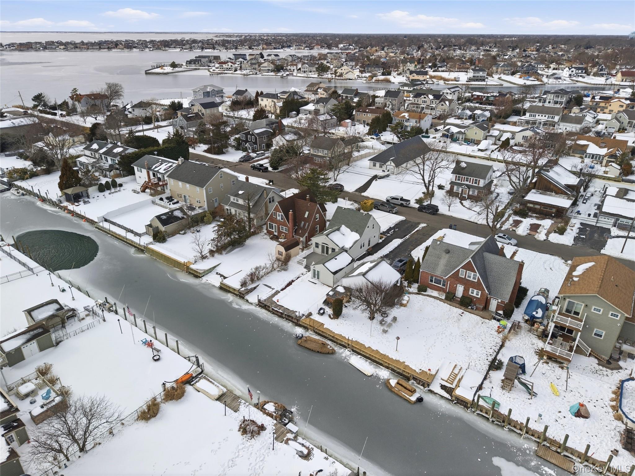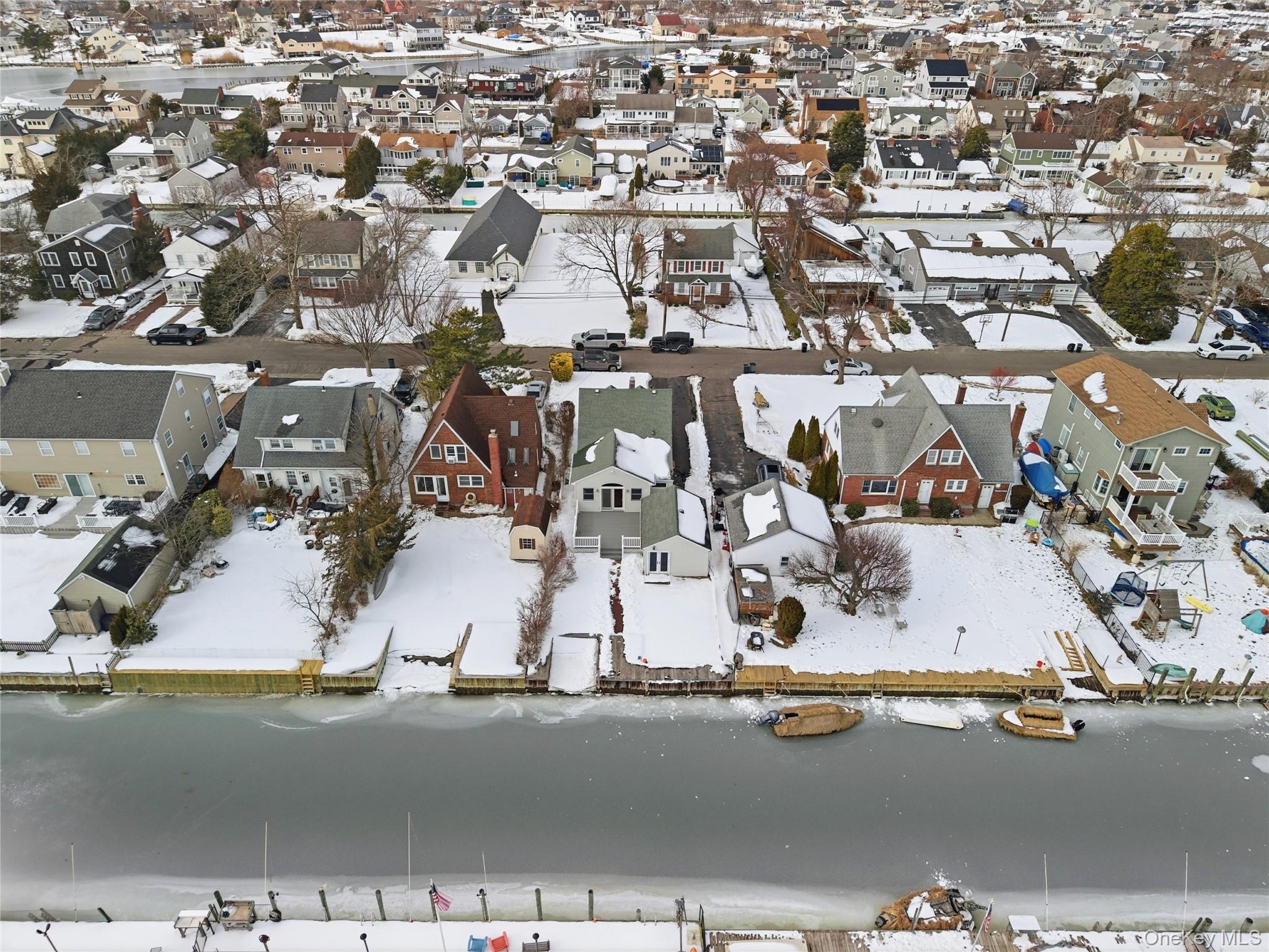 Set along a quiet canal just moments from the open bay, this two bedroom waterfront Cape offers effortless South Shore living in the heart of Amityville Village. Inside, hardwood floors anchor the main living spaces, while the kitchen is in "like new" condition with stainless steel appliances and clean, tailored finishes. A vaulted ceiling den creates architectural volume and natural light, with sliding glass doors opening to a composite Trex deck designed to capture the experience of waterfront living. Step outside and you are waterfront. Your boat is docked in your own backyard, ready for a spontaneous sunset cruise across the Great South Bay. With seconds to open water, the location is ideal for boaters who value quick, easy access. Imagine how easy it can be to take a ride and release the pressures from the day. Additional highlights include a high efficiency boiler for year round comfort and a detached garage offering valuable storage for boating gear, bikes, and seasonal essentials. Beyond the property lines, enjoy everything that defines Amityville Village living: resident only beach access, summer evenings at Fridays on the Greene, charming local shops, waterfront dining, and LIRR convenience. This is not just a home, it is a lifestyle anchored in the friendly bay village.